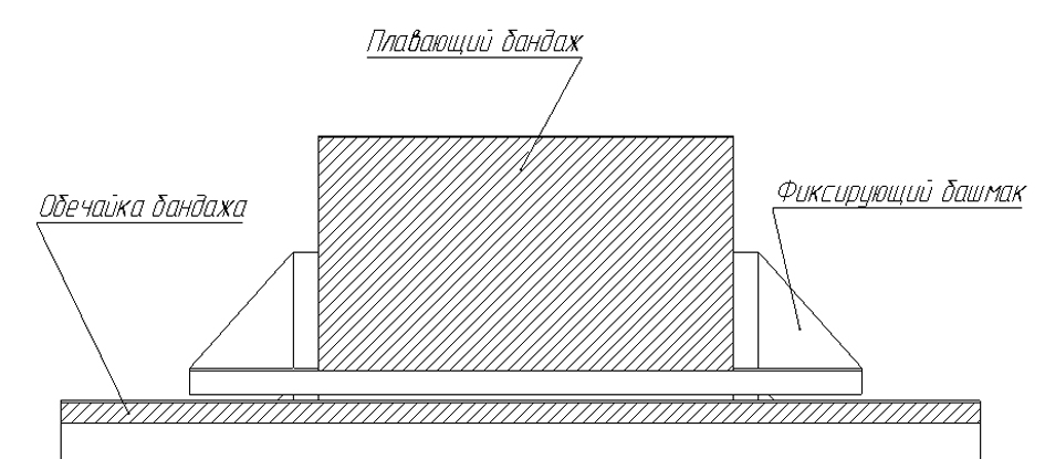 Плавающий бандаж имеет прямоугольную форму в сечении и устанавливается с небольшим зазором на обечайку, благодаря чему он свободно одевается на обечайку печи при монтаже. Чтобы отрегулировать плавающий бандаж в радиальном направлении, относительно обечайки, используют регулировочные пластины. В начале вставляется пластина из толстого металла (башмак), далее между обечайкой и башмаком, также между башмаком и бандажом вставляются регулировочные пластины меньшего диаметра. Пластины после регулировки жестко крепят к обечайки (обычно сваркой). Во избежания осевого смещения бандажа устанавливаются фиксирующие башмаки.
