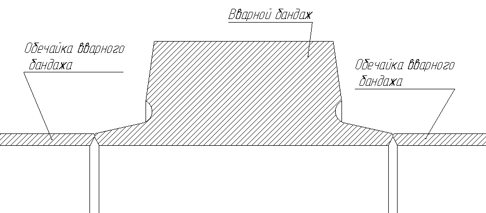 Более модернизированной и надежным опорой печи является вварной бандаж. Формы сечения вварных бандажей различны и сложны, что влияет на их стоимость в большую сторону. Данные бандажи ввариваются между двумя обечайками большей толщины чем основной корпус печи. Такой способ придает большую жесткость и надежность опорной конструкции печи.