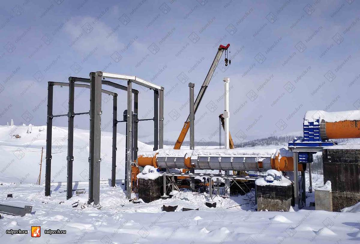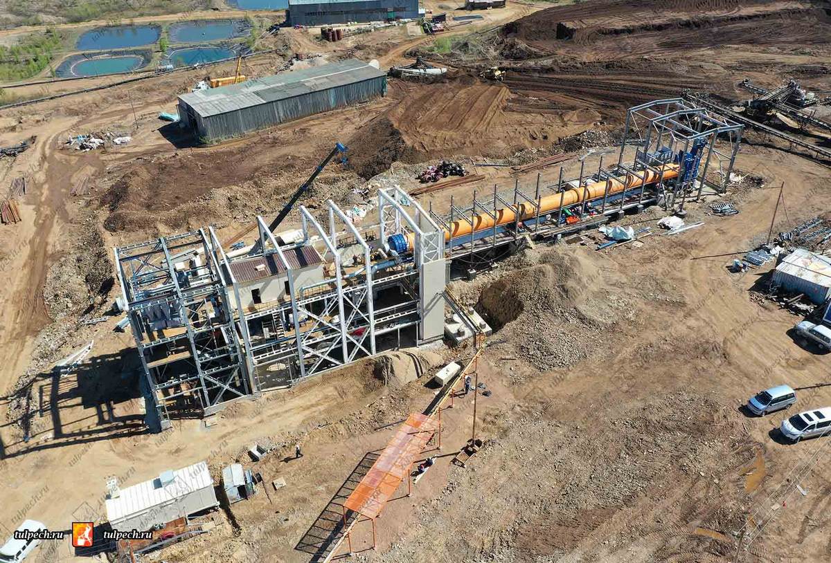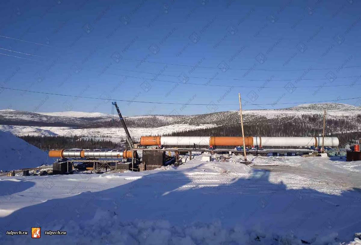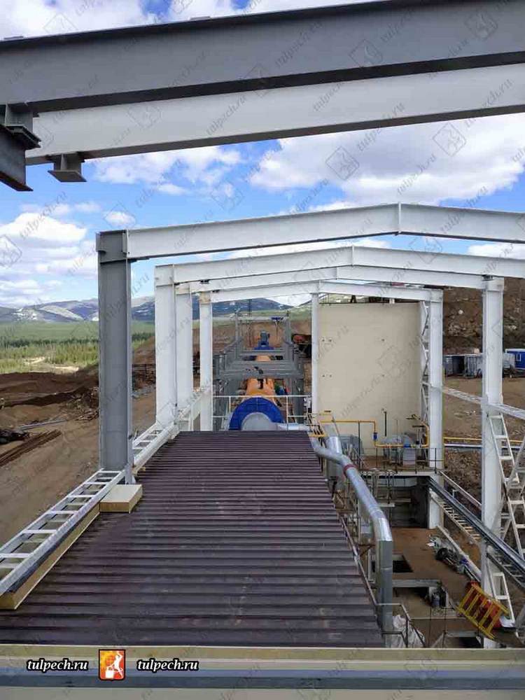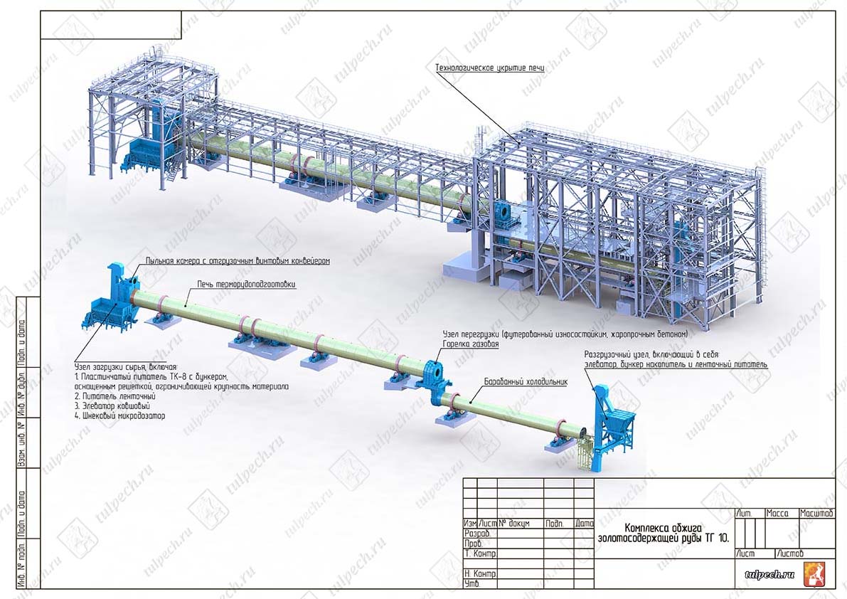 Вашему вниманию представляем технологический узел производства компании «Тульские Машины» для термической подготовки упорной сульфидной золотосодержащей руды на базе обжиговой печи барабанного типа.