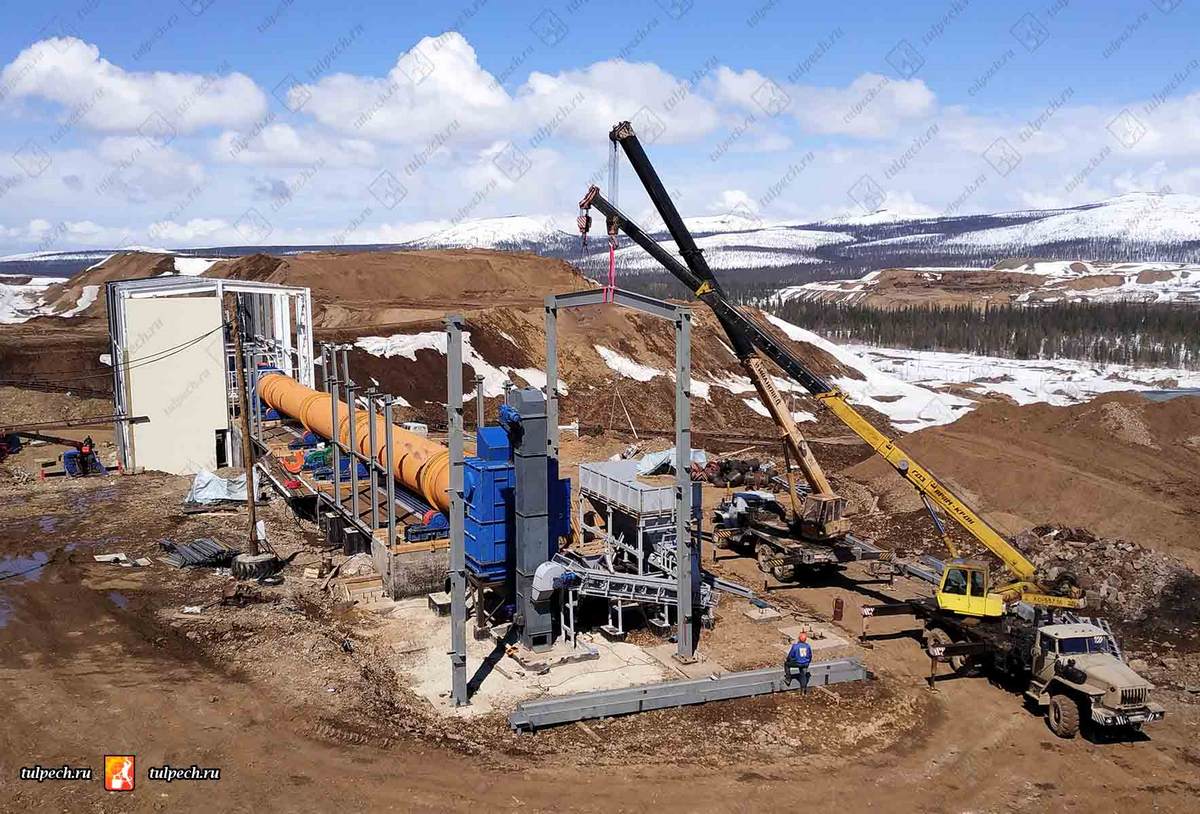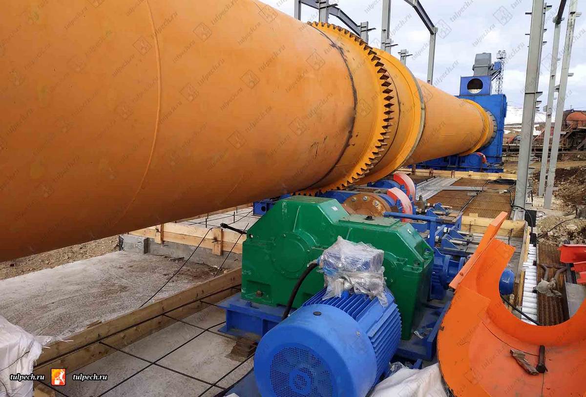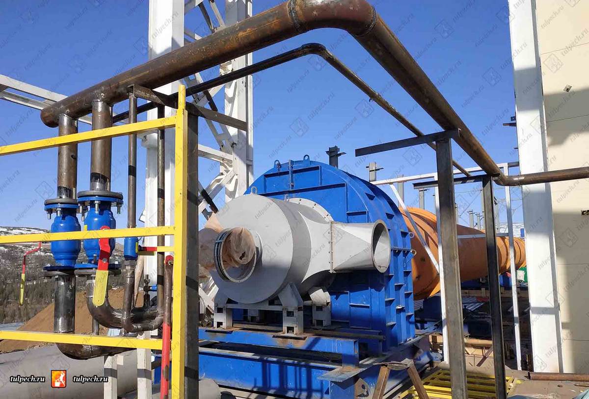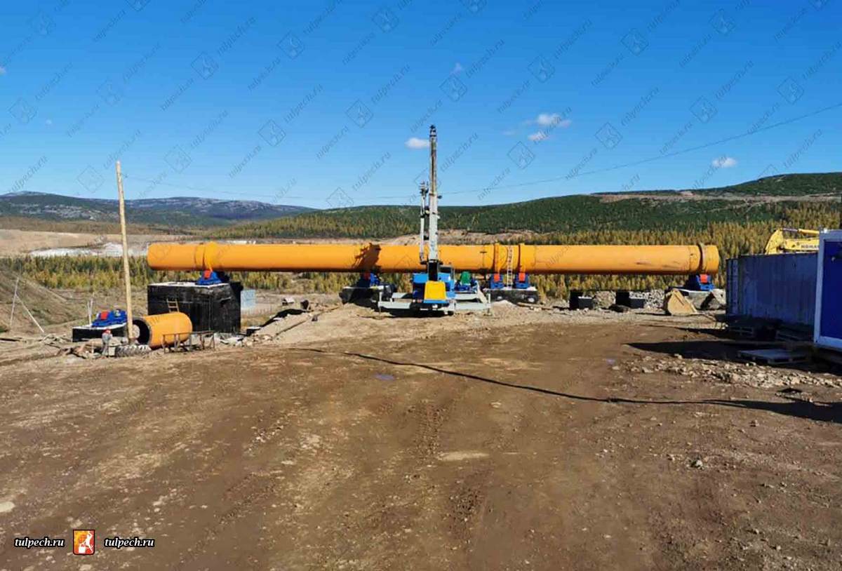 Вашему вниманию представляем технологический узел производства компании «Тульские Машины» для термической подготовки упорной сульфидной золотосодержащей руды на базе обжиговой печи барабанного типа.