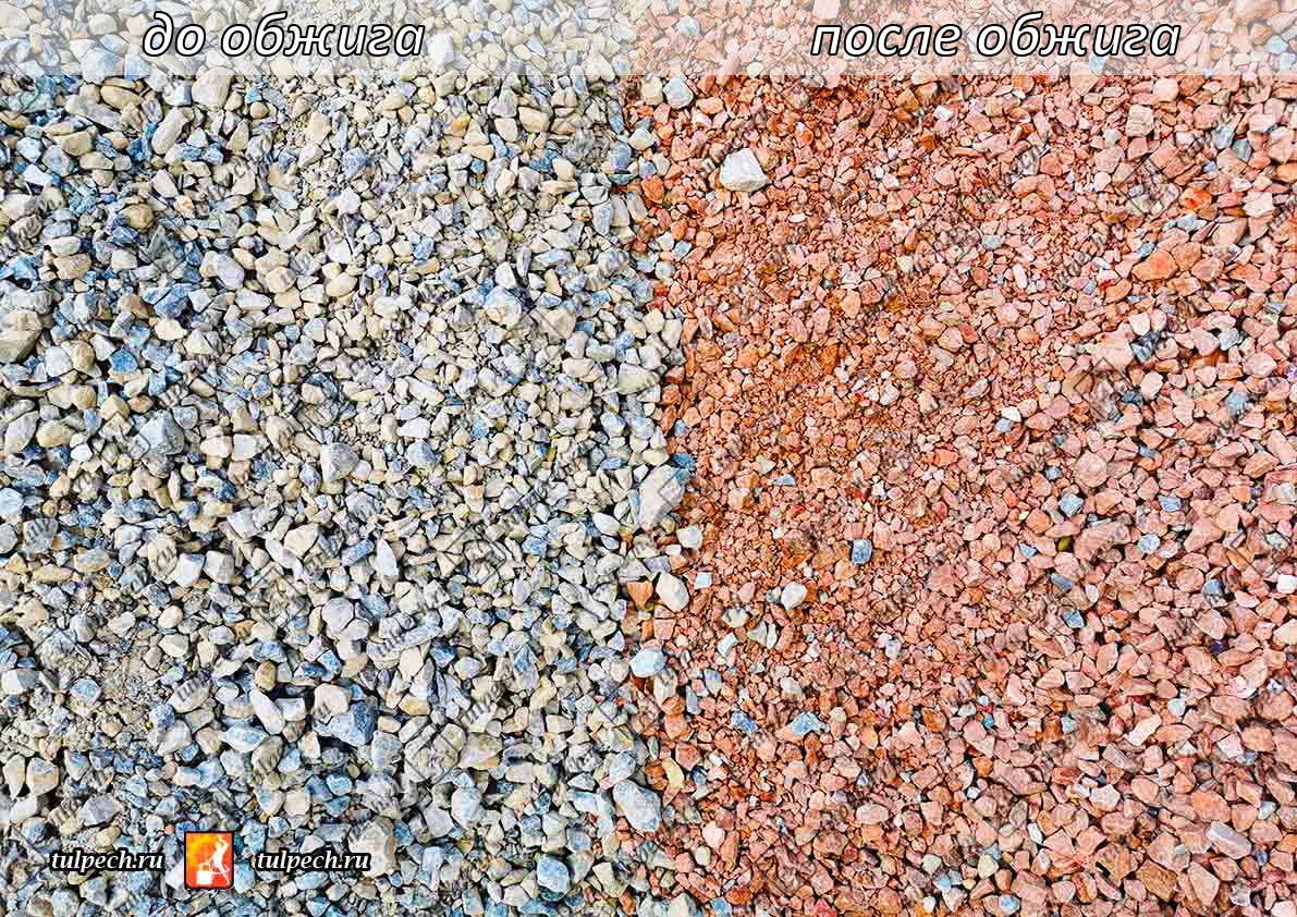Для обеспечения столь высоких показателей применяется целый комплекс инновационных решений. Корпус печи изнутри оборудован специальными пластинами и лопатками особенной конфигурации, обеспечивающими взвесь продукта на необходимых участках. Подающий узел позволяет тонко регулировать и тщательно подбирать режимы подачи. Теплогенератор, оснащенный передовой автоматикой, обеспечивает заданный температурный режим с высокой точностью. Кроме того, особое внимание уделено рекуперации тепла и снижению расходов энергоносителя. А комплексная система пылеулавливания и аспирации позволяет беречь экологию нашей планеты. На рисунке ниже представлены снимки руды до и после обжига в печи.