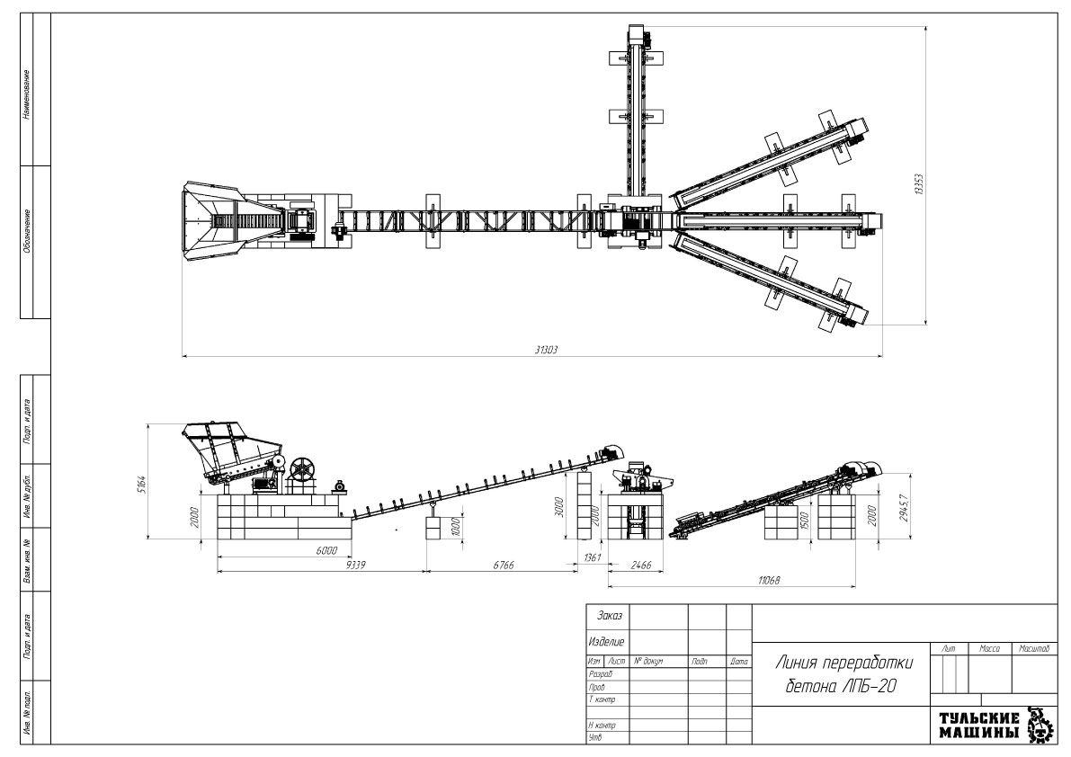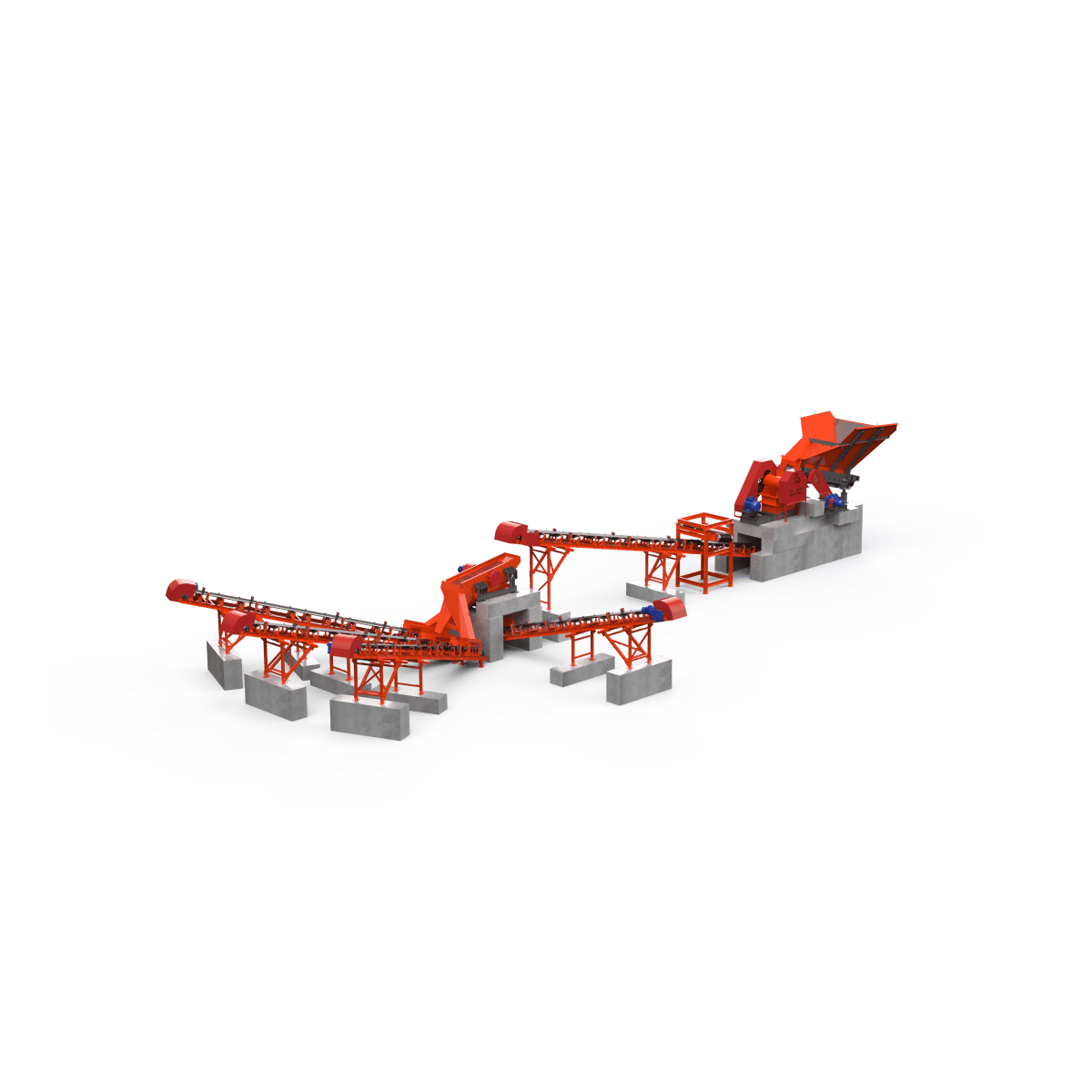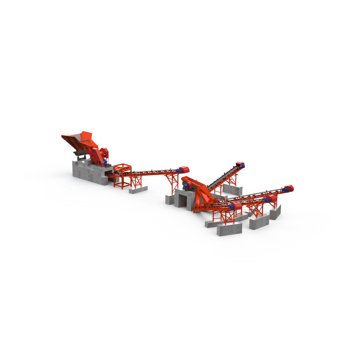 Конструкторами и инженерами Тульских Машин было предложено следующее решение: сформировать комплекс на основе щековой дробилки СДС-4/6, которая предназначена для дробления твердых рудных пород, минералов, некоторых видов металла, шлаков, бетона. В данную дробилку с помощью пластинчатого питателя П-804 подается материал, в случае заказчика это бетонные блоки. После раздробления бетонных конструкций, вторичный щебень с металлическими включениями попадает на ленточный конвейер КЛ-500/9000, где проходит через подвесной магнитный сепаратор, который забирает все металлические включения из раздробленного материала.