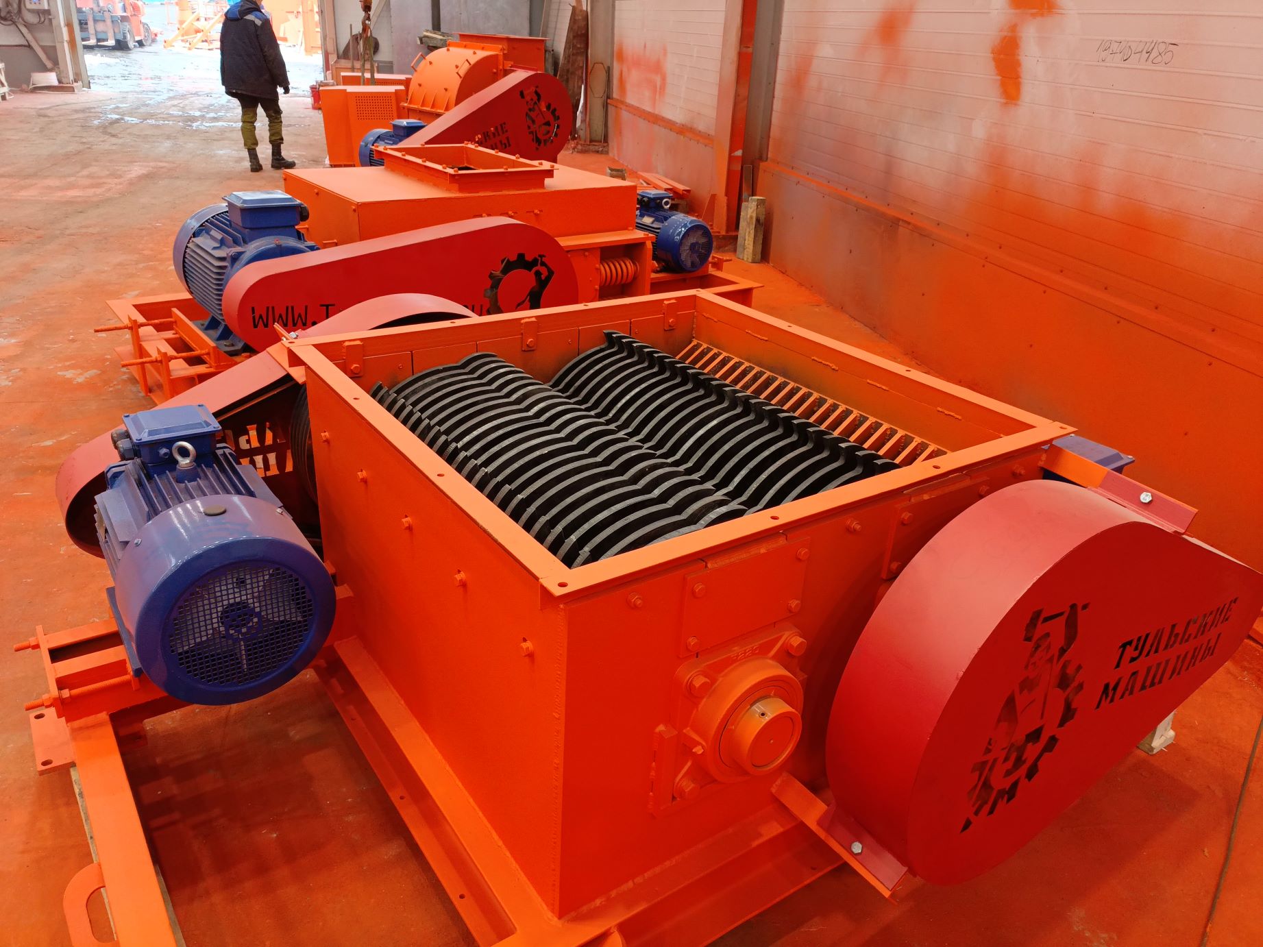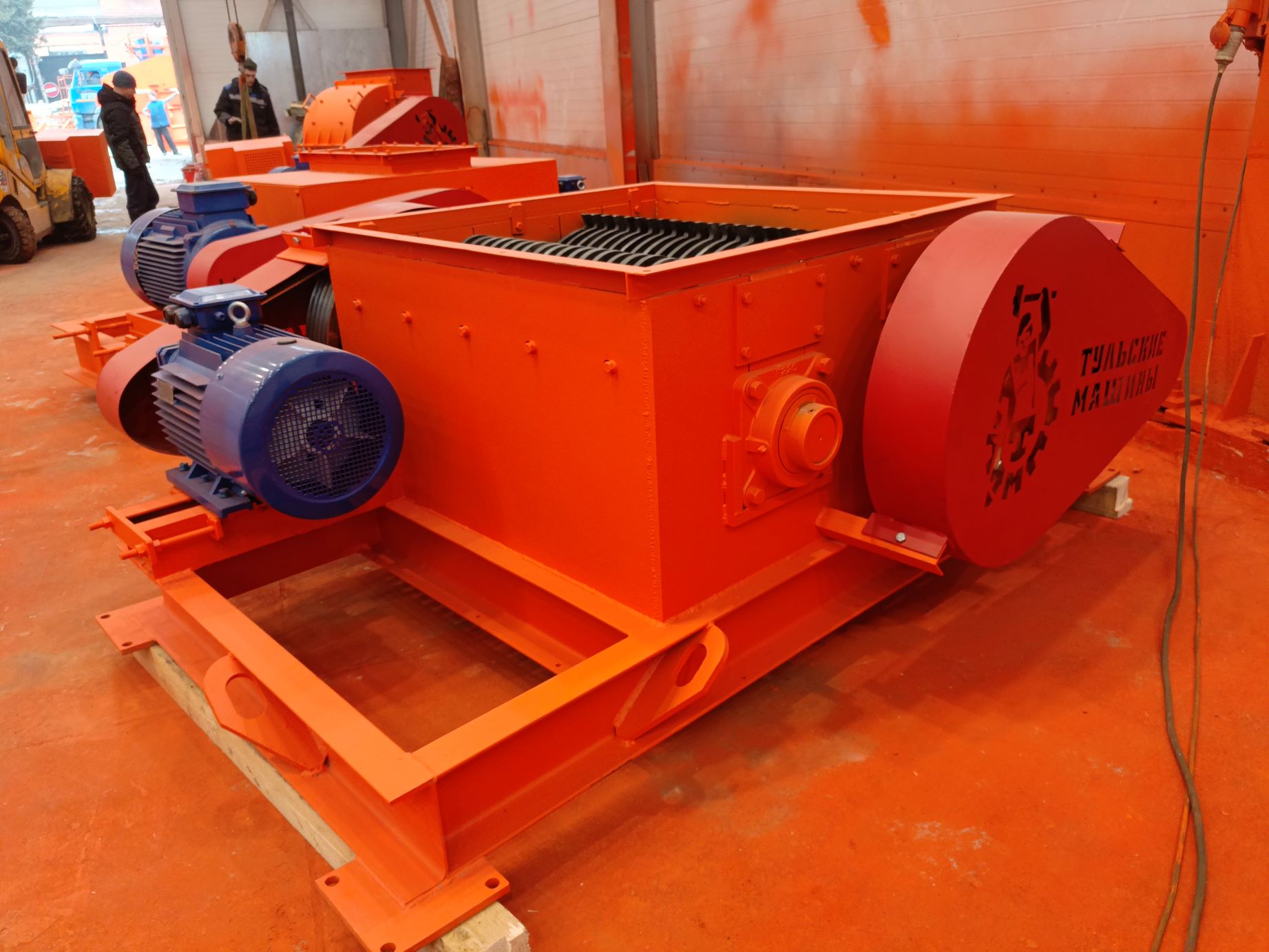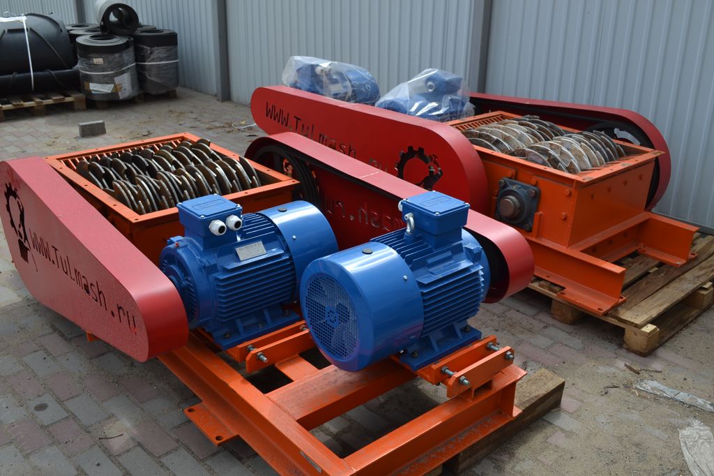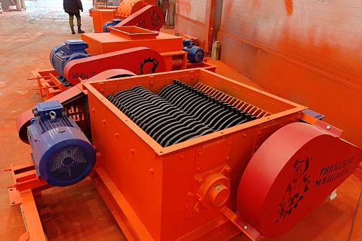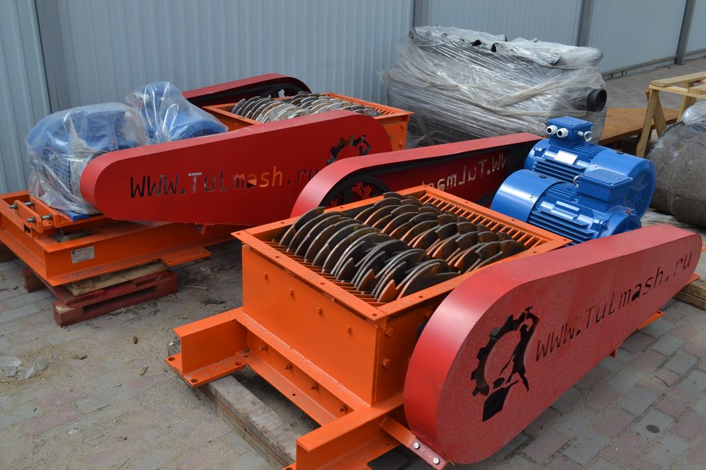 Компания «Тульские машины» производит промышленные измельчители различных конструкций, наиболее востребованные – валковые и роторные измельчители. Заказчик может совместно с нашим конструкторским бюро подбирать конструкцию приёмного бункера, форму режущих элементов, а также определять частоту вращения роторов. В зависимости от объема и типа производства вы сможете подобрать качественное и надежное оборудование. Например, если влажность материала не превышает 30%, для измельчения подойдет роторно-дисковый механизм. Вращающиеся дисковые роторы нагружаются сырьем из загрузочного бункера. Уже дробленое сырье в это время проникает в зазоры между дисками и отверстиями в решетке в разгрузочное устройство. Благодаря механизму измельчителя, не требуется очищение дисков. Промышленный измельчитель имеет зону измельчения и зону отражателей, где и происходит очищение дисков.