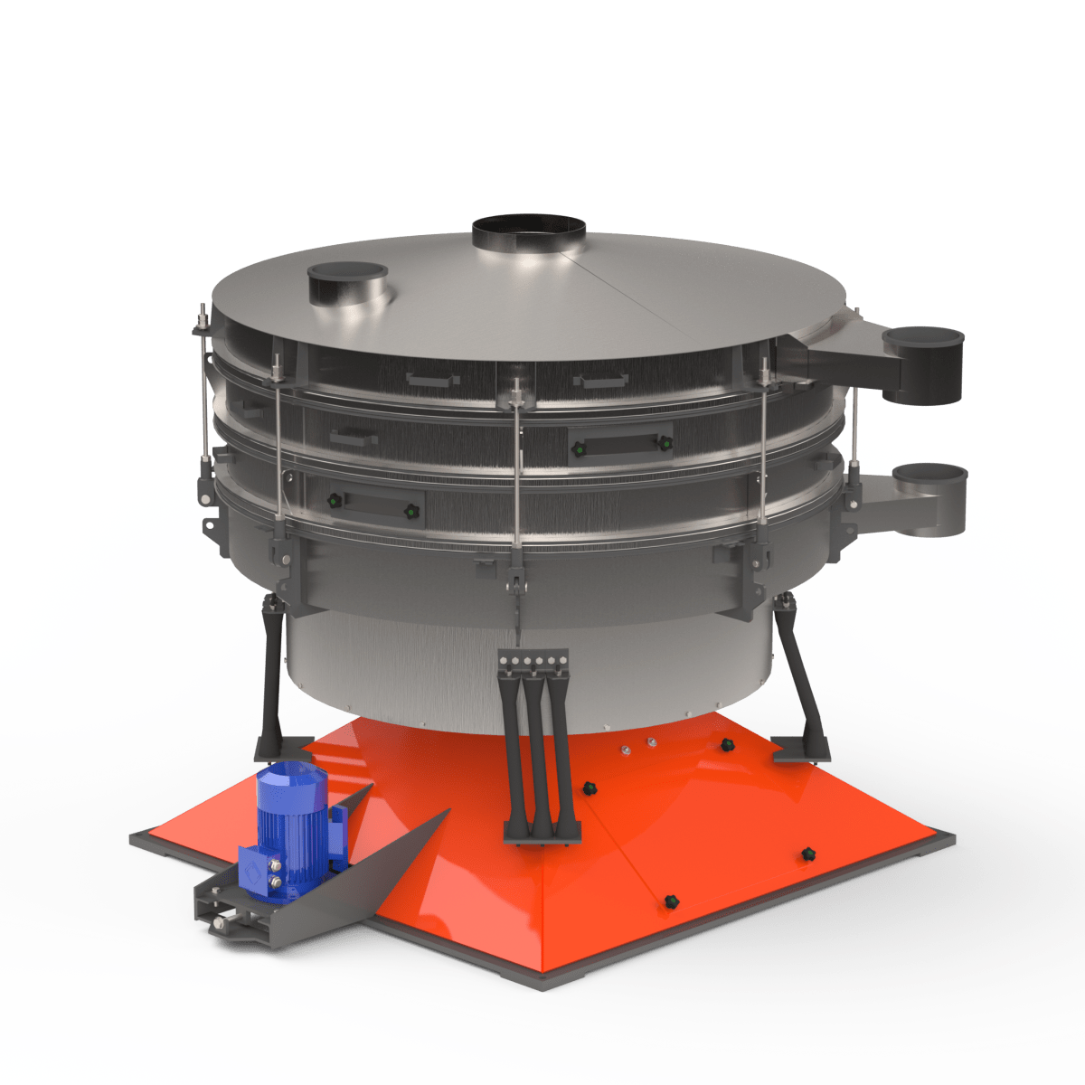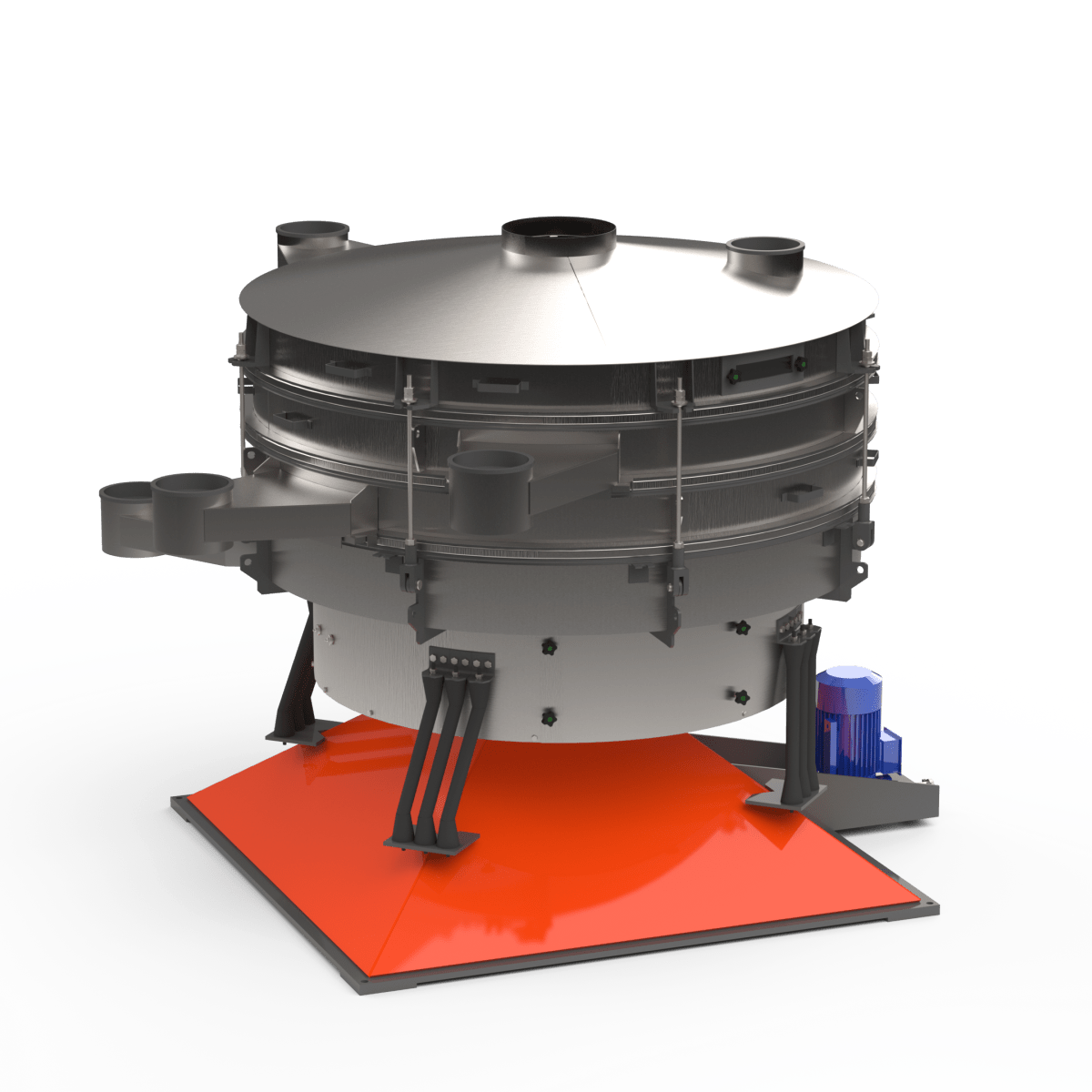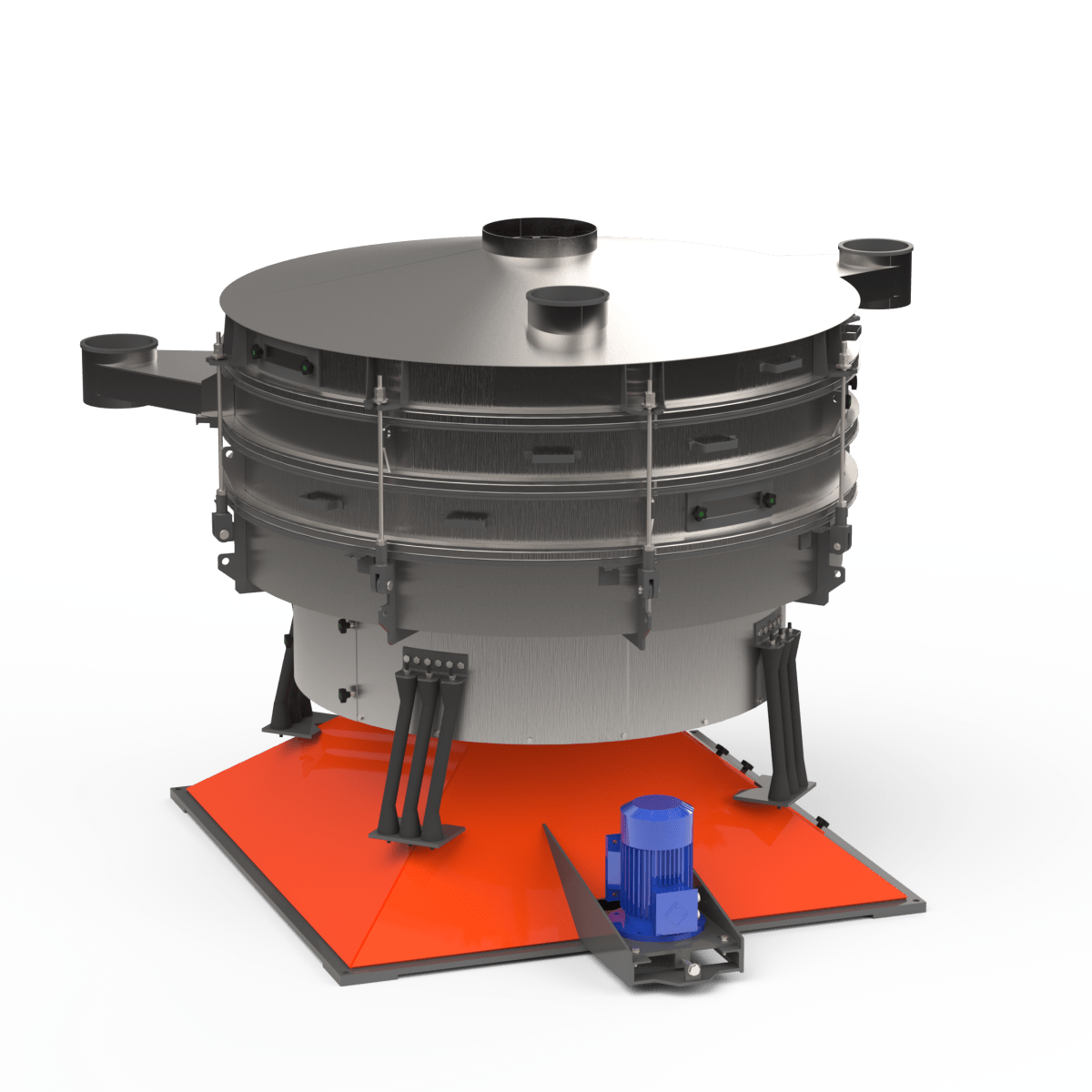 Грохот качающийся с тремя ситами из нержавеющей стали — это высокоэффективное оборудование для многоступенчатого рассева и сортировки сыпучих материалов на четыре фракции за один технологический цикл. Качающиеся (круговые) колебания корпуса обеспечивают равномерное распределение материала по всем ситам, высокую точность классификации и стабильную работу в непрерывном режиме.