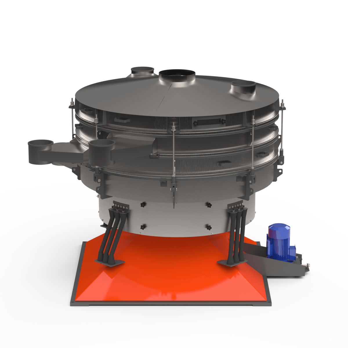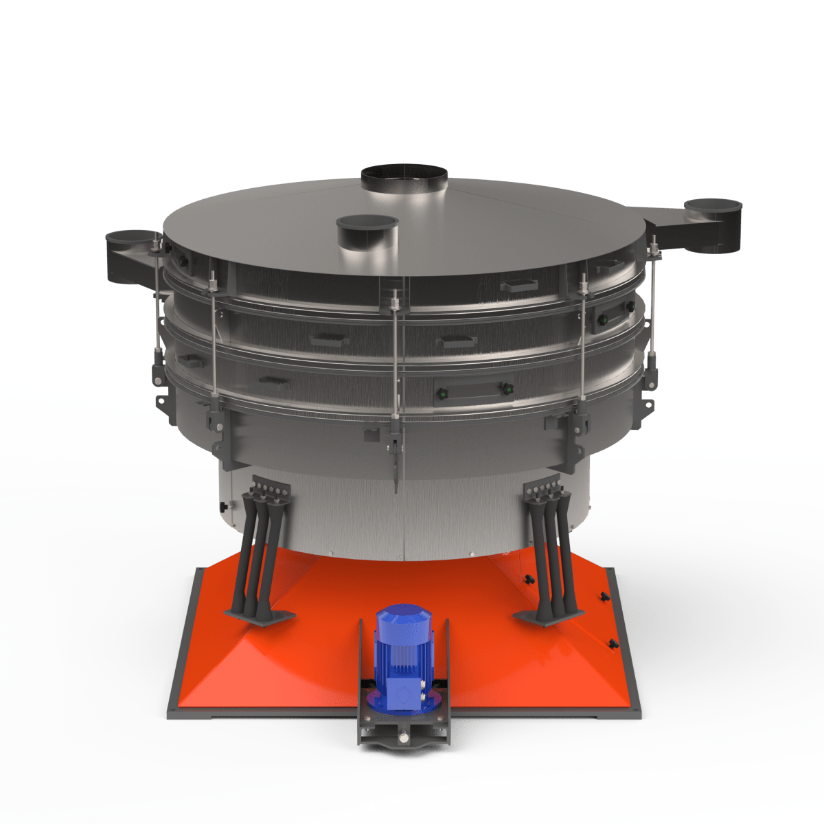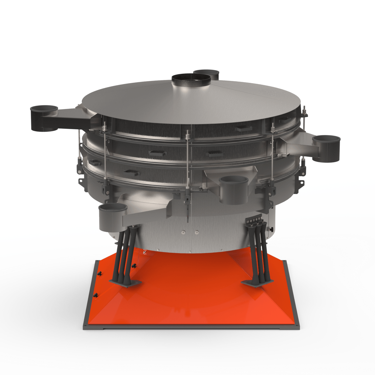 Грохот качающийся с тремя ситами из нержавеющей стали — это высокоэффективное оборудование для многоступенчатого рассева и сортировки сыпучих материалов на четыре фракции за один технологический цикл. Качающиеся (круговые) колебания корпуса обеспечивают равномерное распределение материала по всем ситам, высокую точность классификации и стабильную работу в непрерывном режиме.