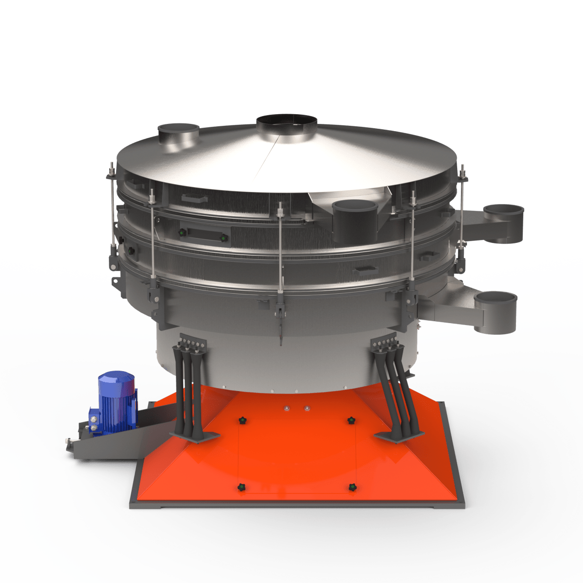 Грохот качающийся с тремя ситами из нержавеющей стали — оптимальное решение для задач, где требуется одновременное получение четырёх фракций, высокая точность сортировки и соответствие строгим санитарным требованиям.