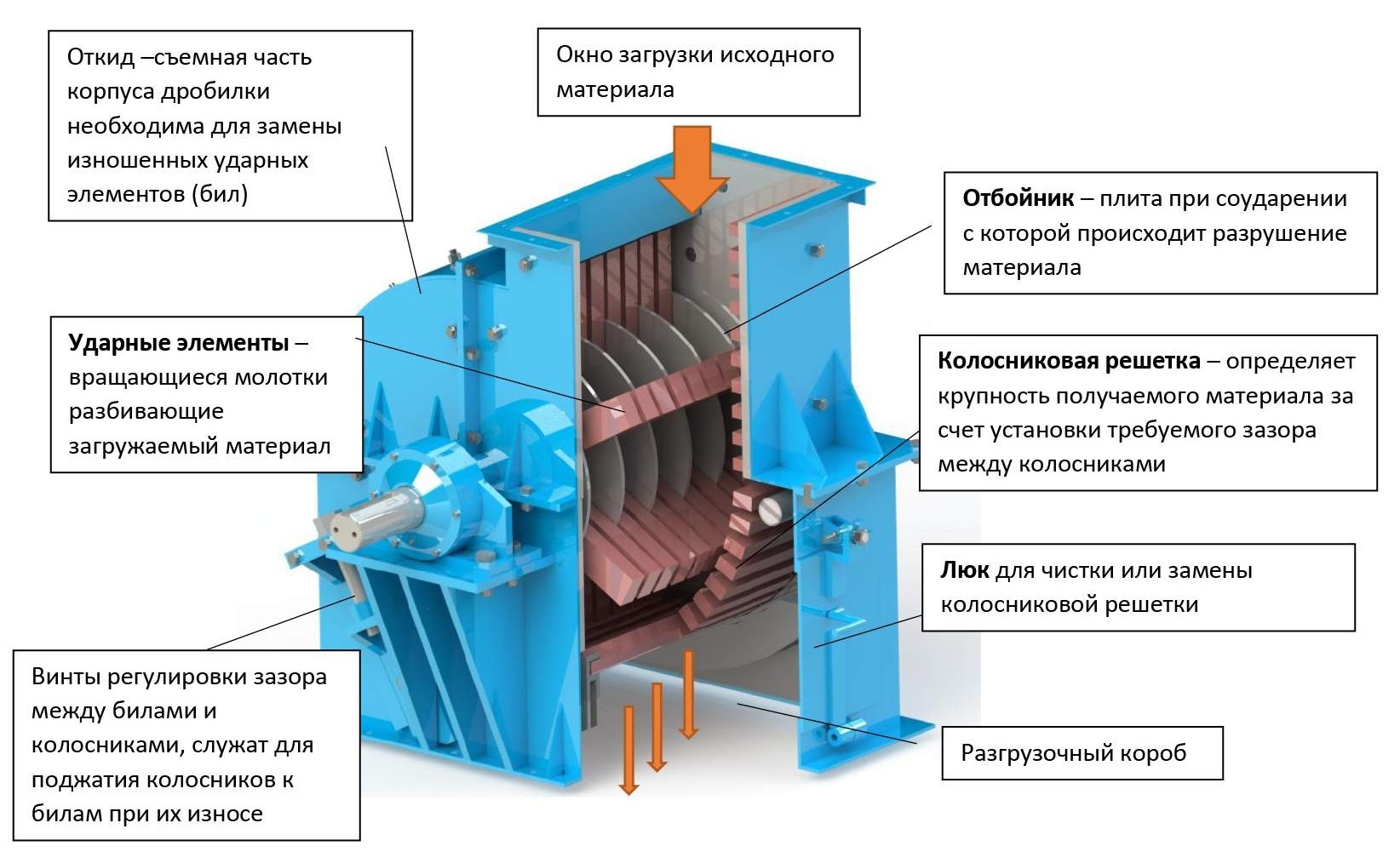 - Регулируемый зазор решётки — контроль над фракцией и повышение срока службы элементов.