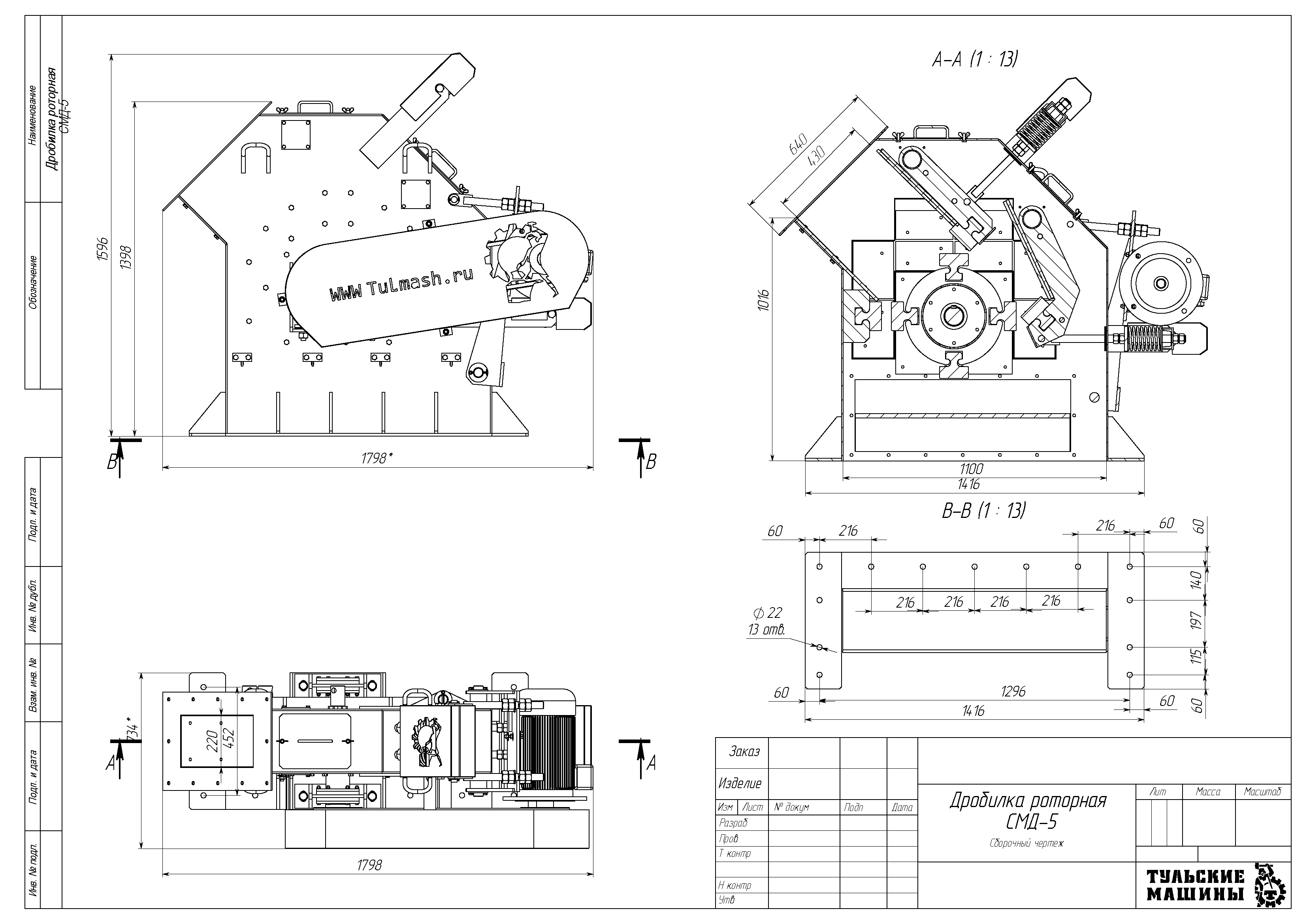 “Тульские Машины” производит роторные дробилки СМД-5 с учётом требований заказчика и с соблюдением технических норм и правил. Мы гарантируем высокую производительность, низкое энергопотребление и возможность изготовления фракционированных материалов кубовидной формы наших роторных дробилок.