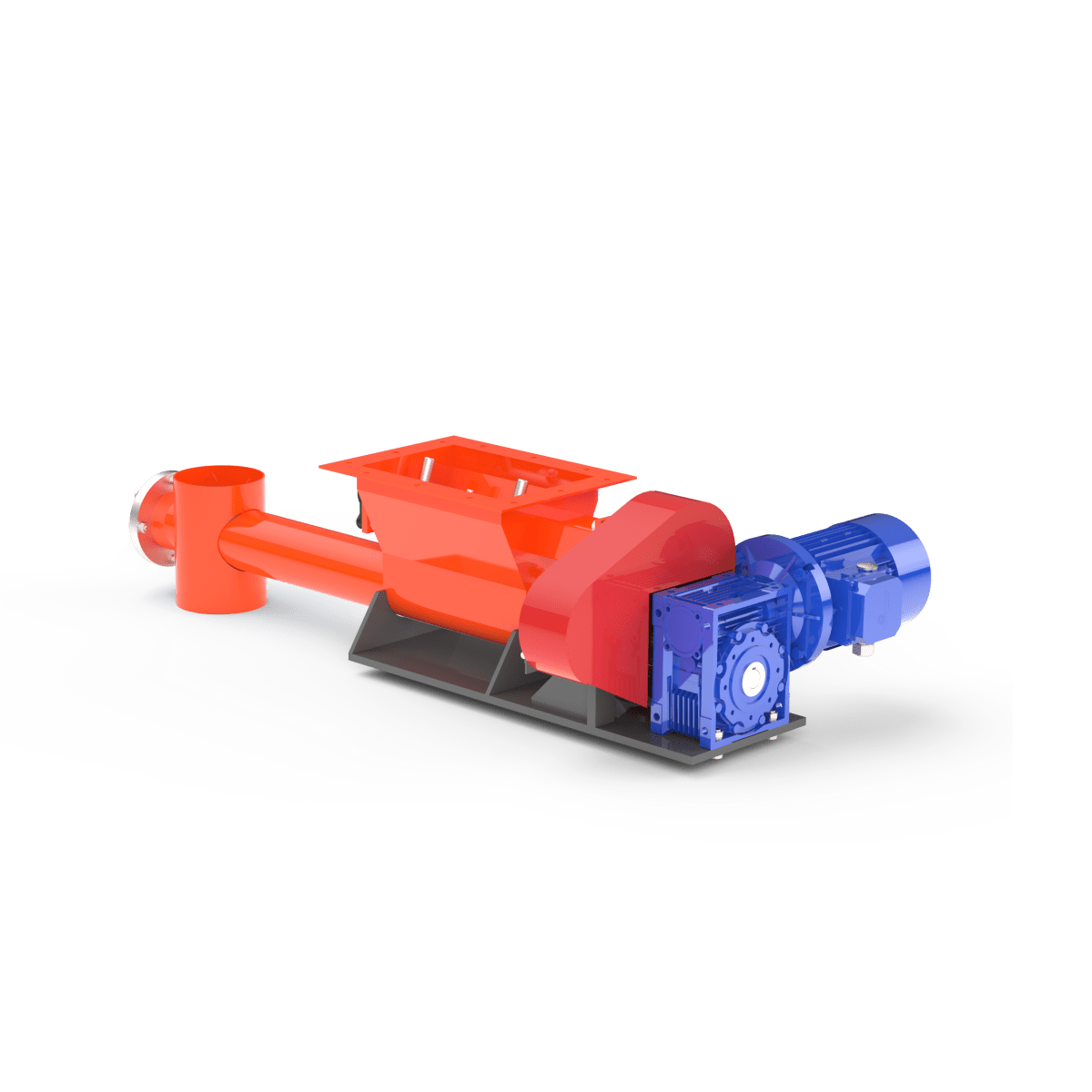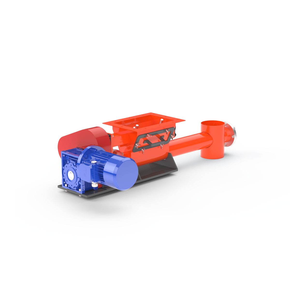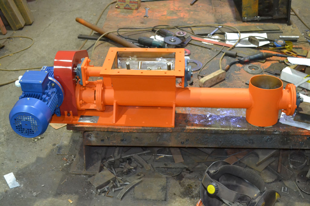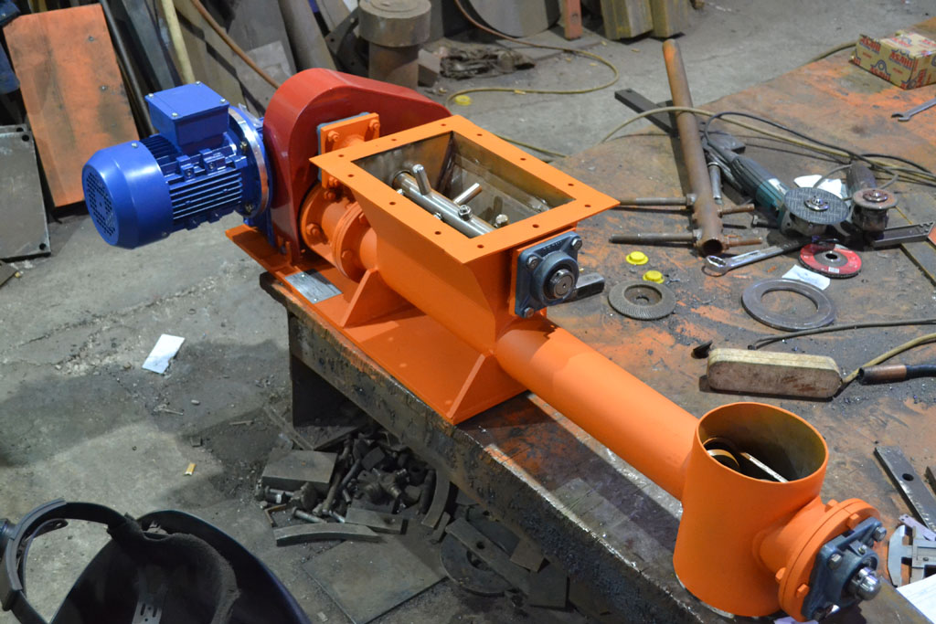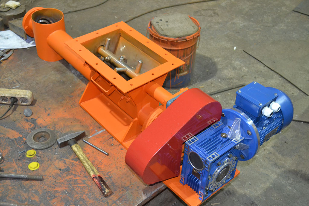 Подача осуществляется с помощью вращающегося шнека, обеспечивающего стабильный поток материала с заданной производительностью.