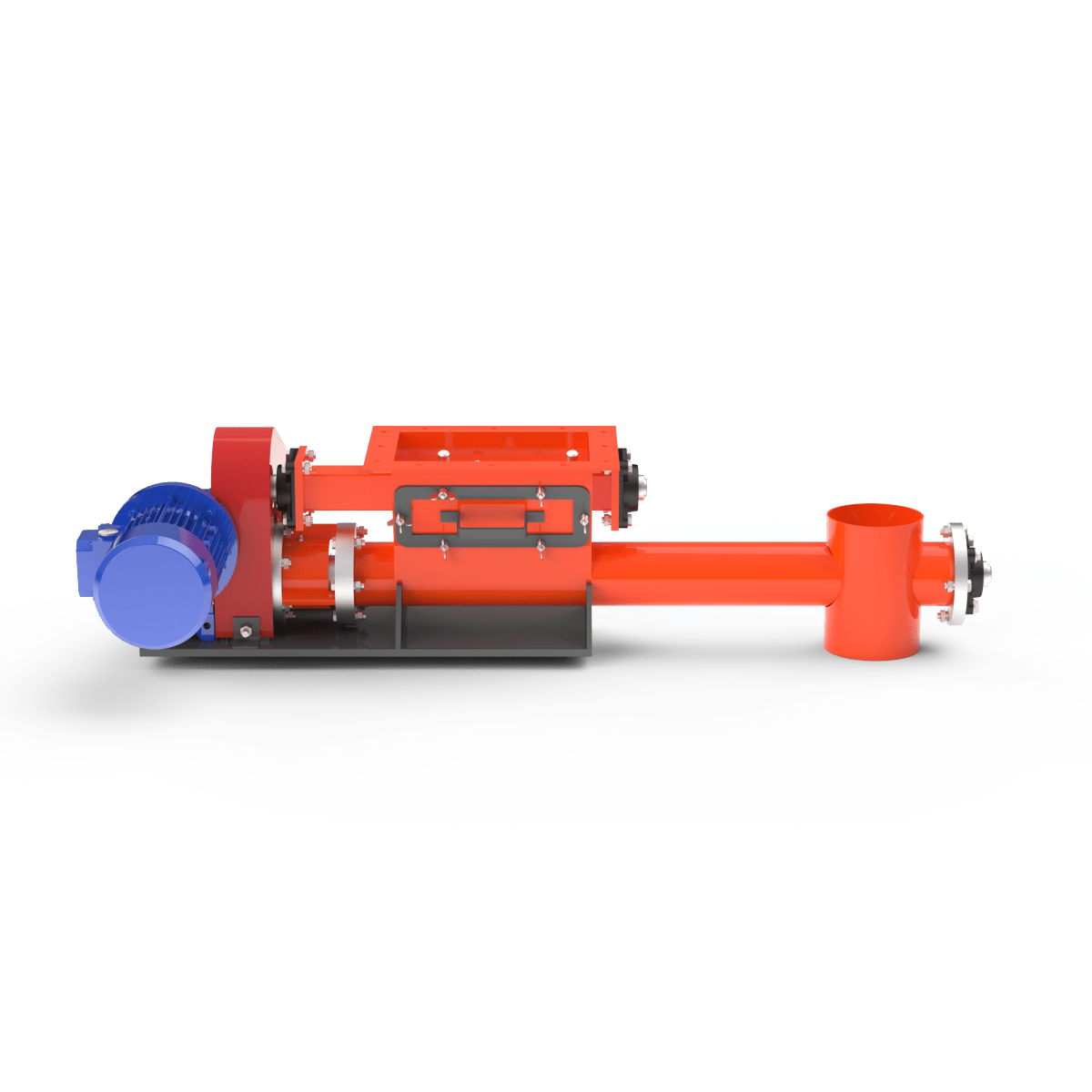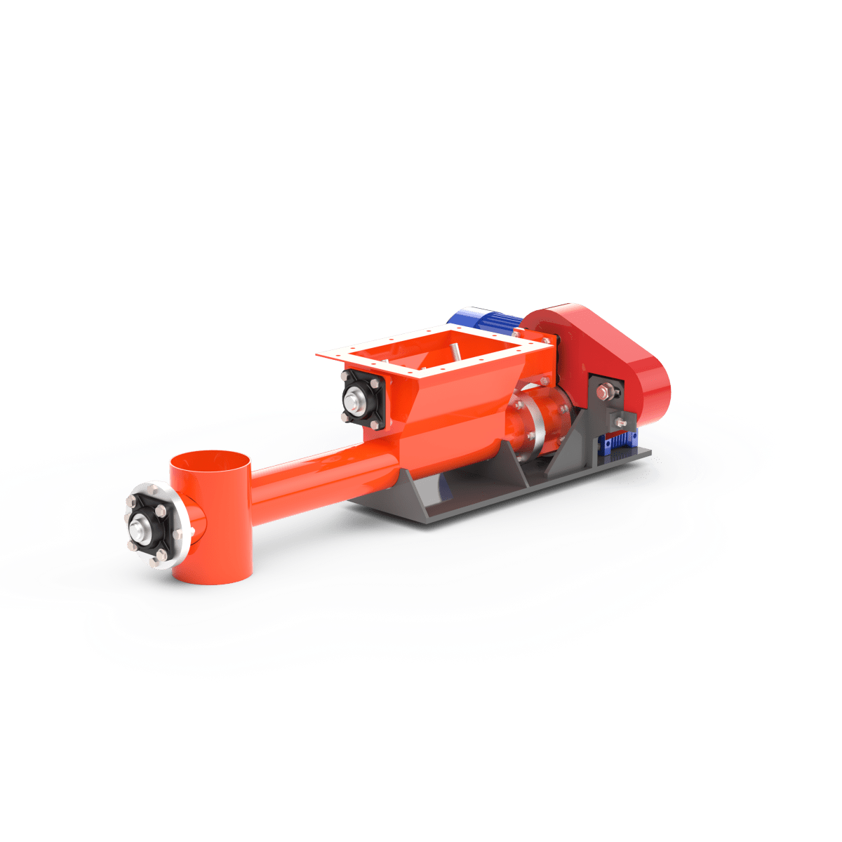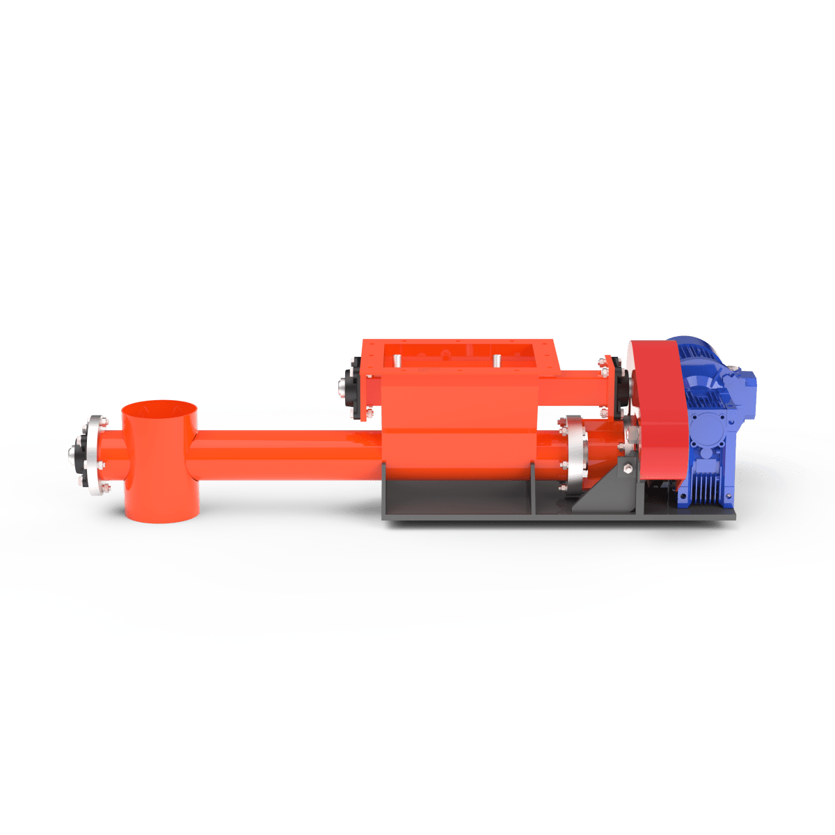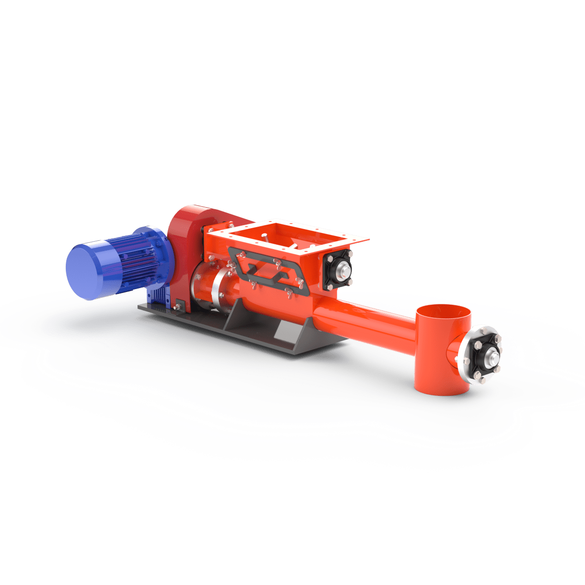 Подача осуществляется с помощью вращающегося шнека, обеспечивающего стабильный поток материала с заданной производительностью.