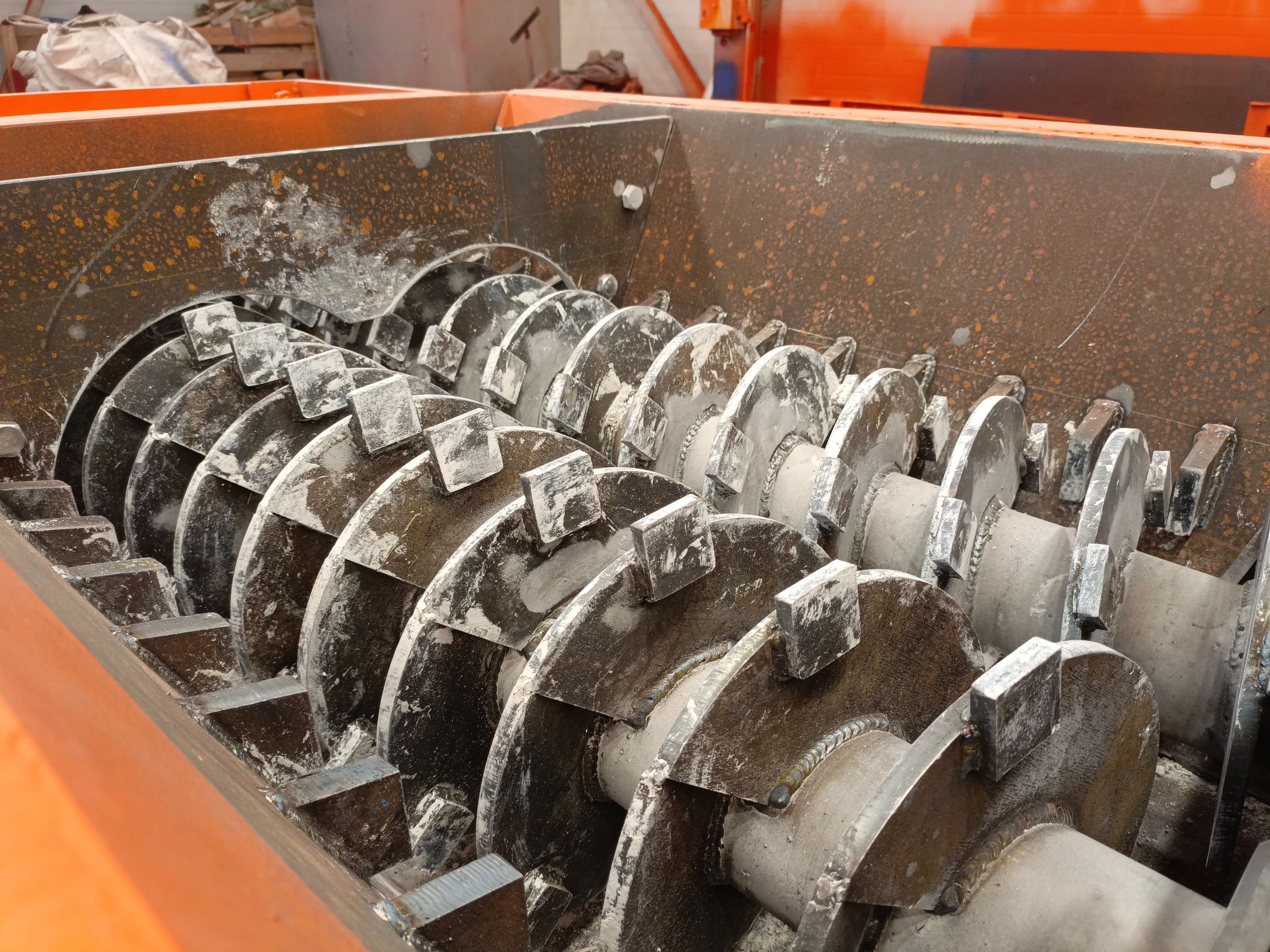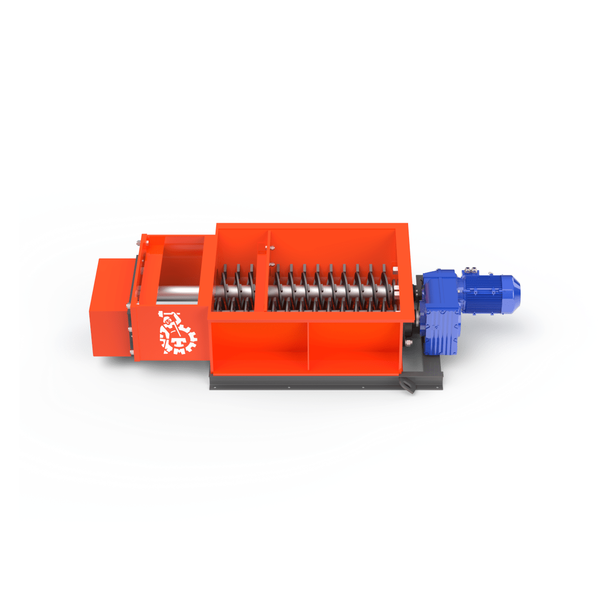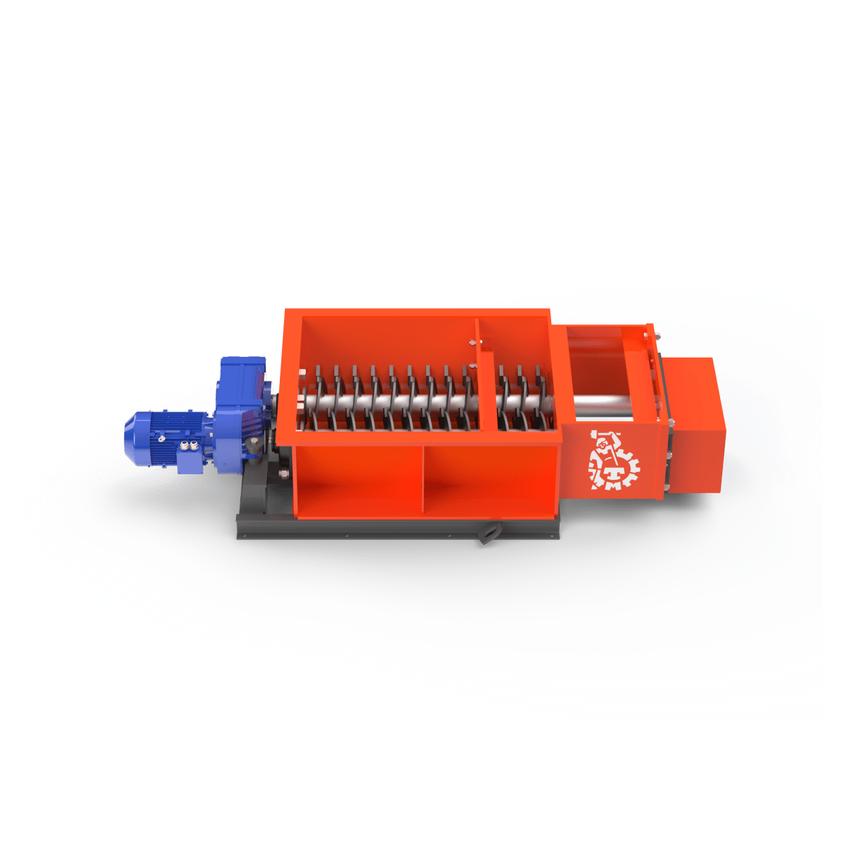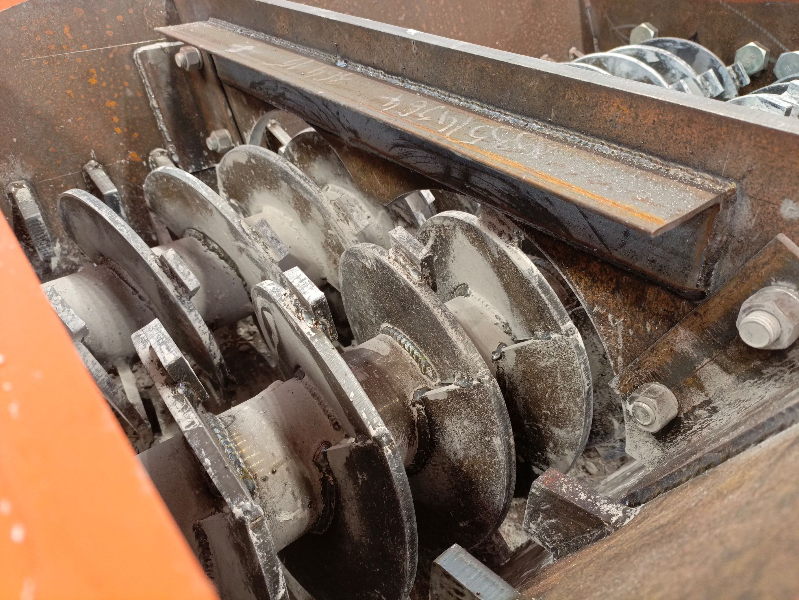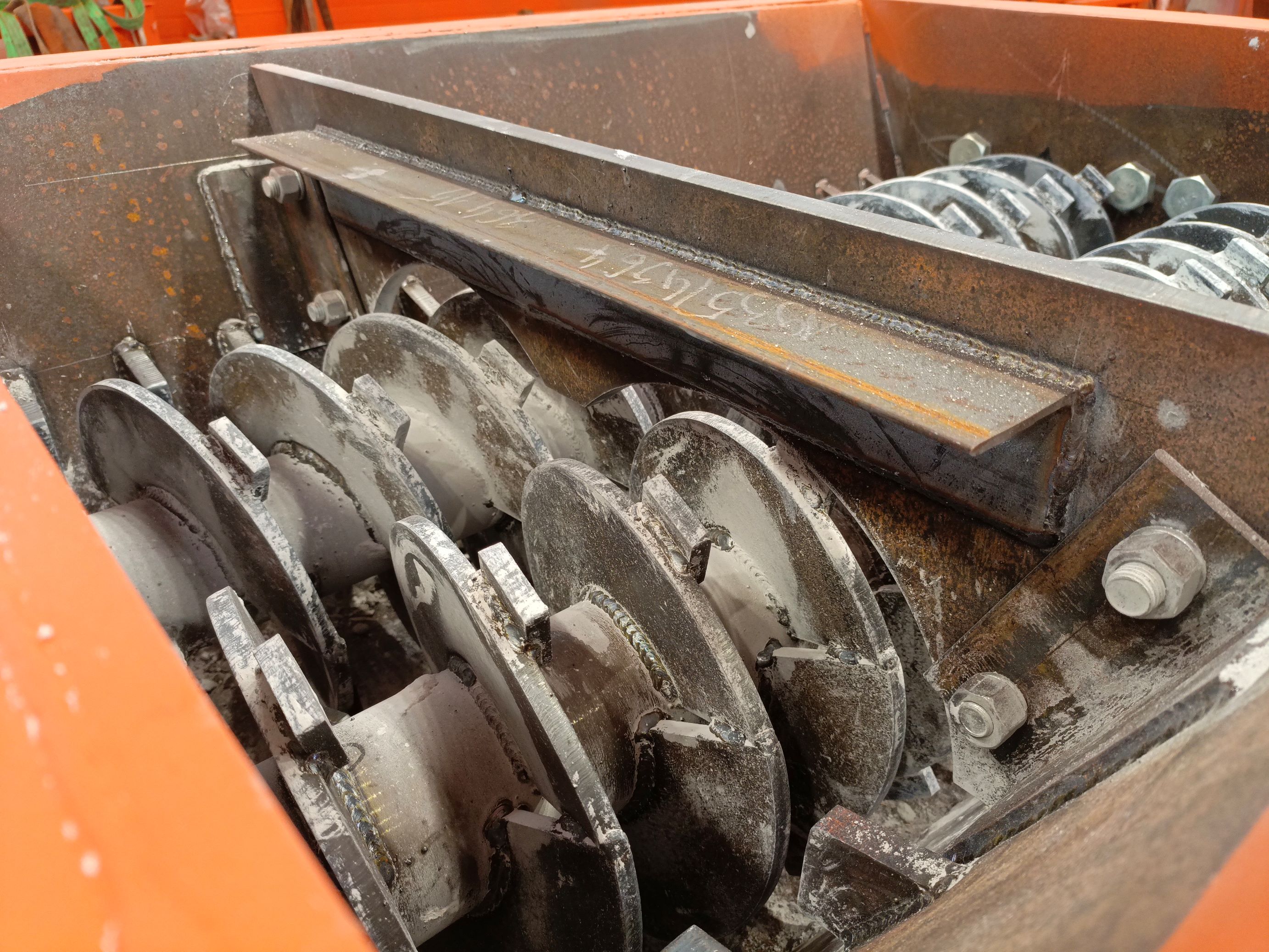 Исходный материал загружается в приемную часть корпуса шредера и под собственным весом перемещается в зону вращения дисковых роторов. Куски материала, попадая в камеру измельчения, захватываются и измельчаются дисками роторов. Измельчительный материал просыпается в зазоры между дисками в разгрузочное устройство. Загрузка материала в шредер производится вручную.