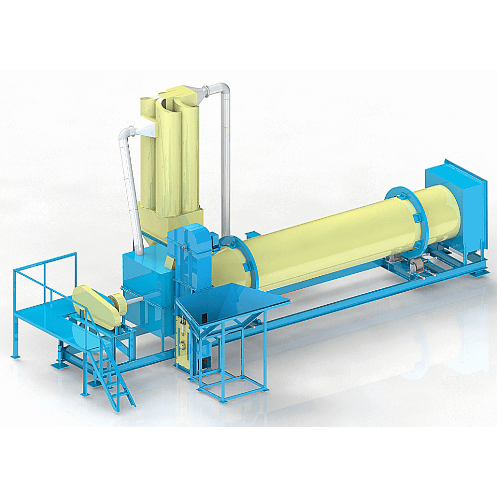 Комплекс сушильного оборудования включающий в себя загрузочный бункер, цепной элеватор, горелку и систему аспирации. В сушильном барабане диаметром 1,2м и длиной 8м. достигается производительность по сухому материалу до 12 тонн в час.
