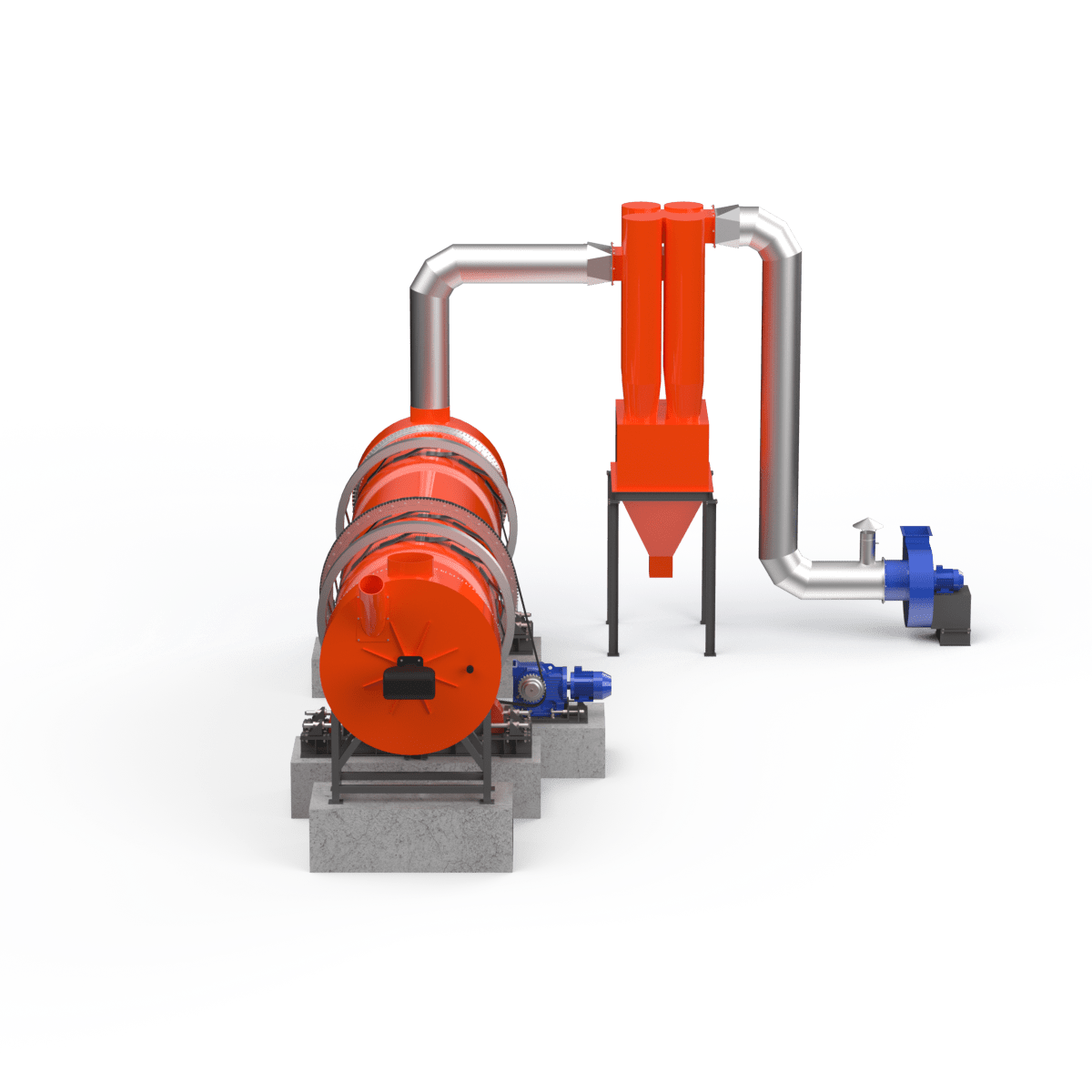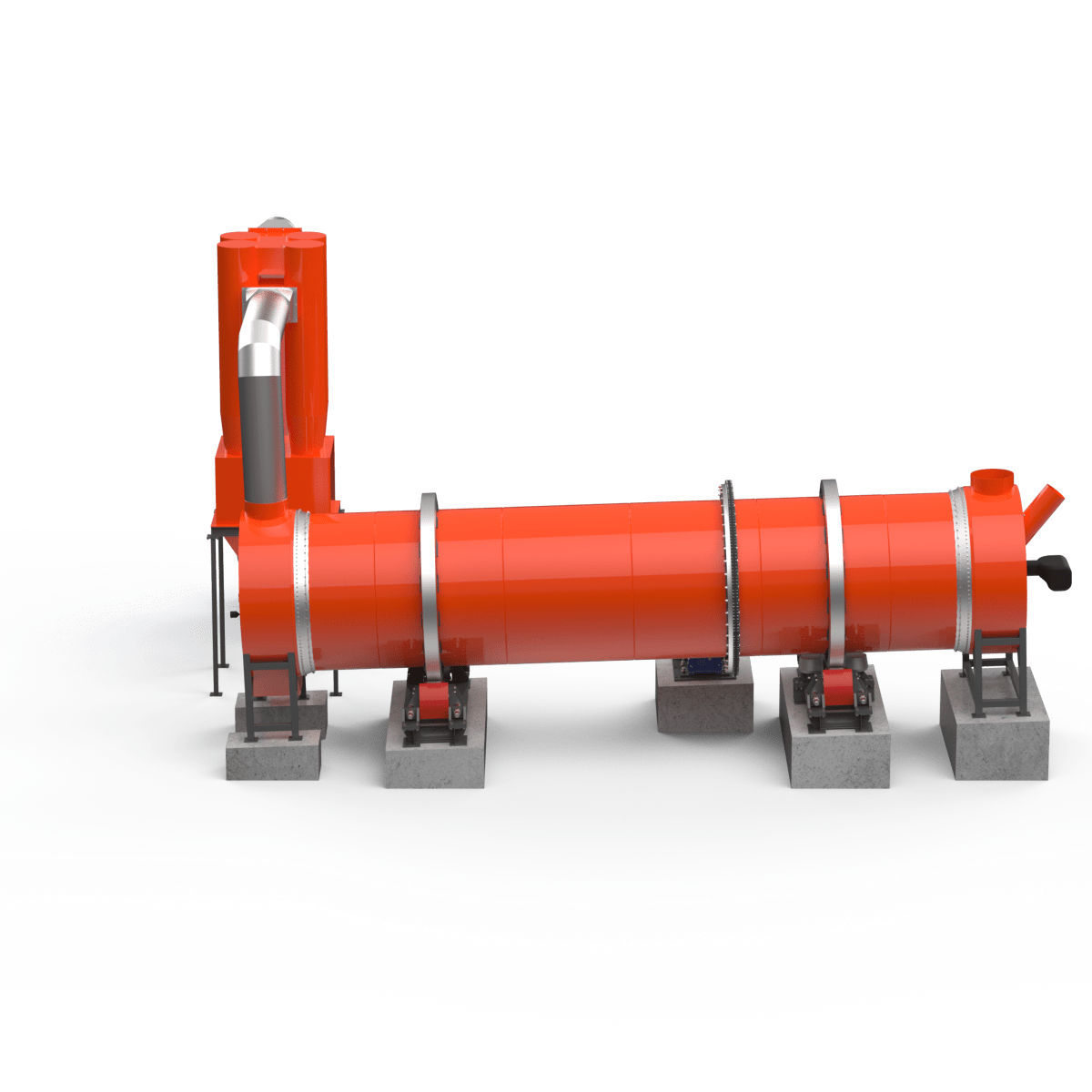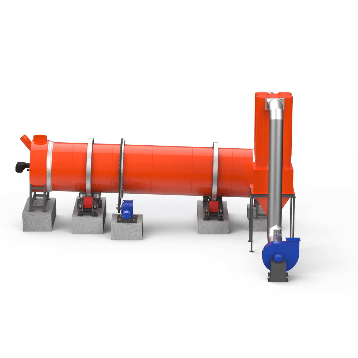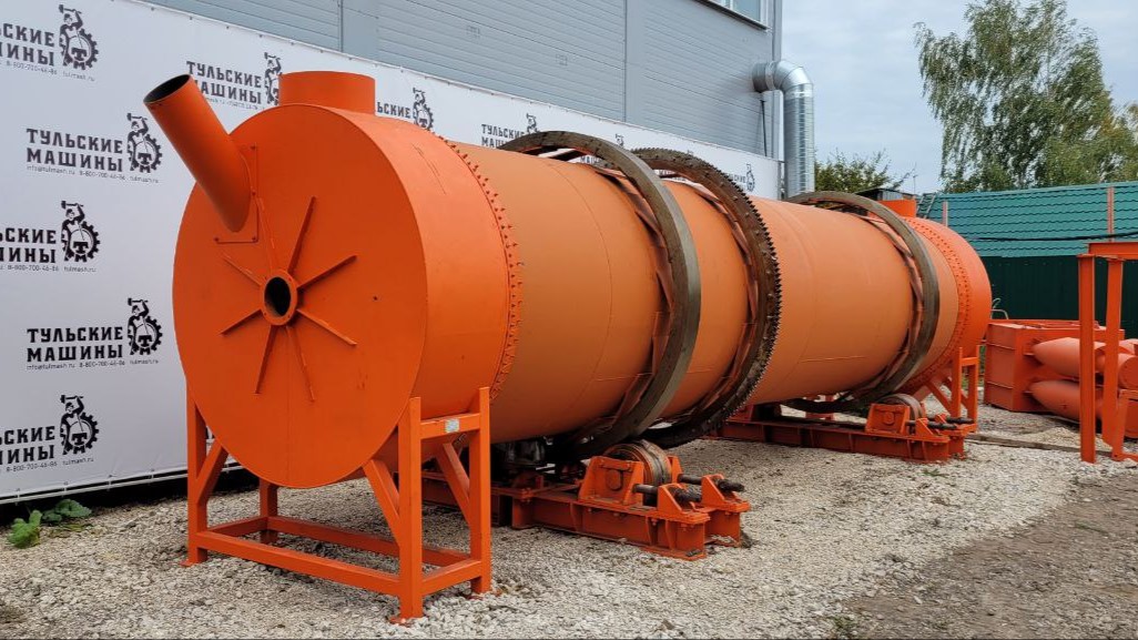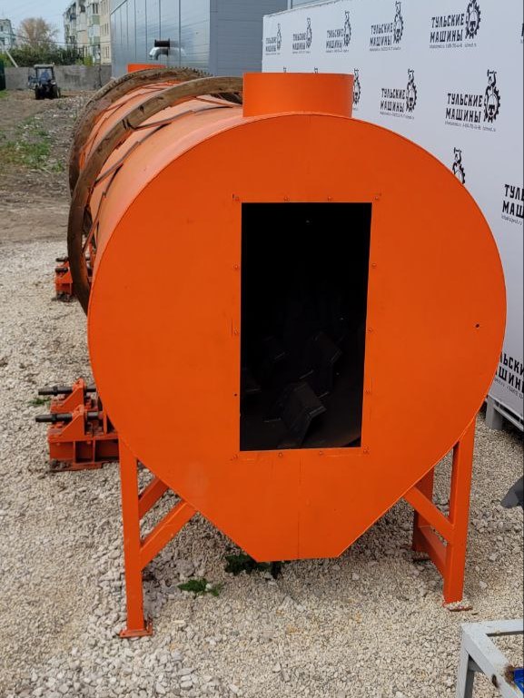 В загрузочной части 8 барабана присутствует отверстие для приточной вентиляции 12, необходимой для поступления теплоносителя в барабан. Приточная вентиляция в комплект поставки не входит. Сушильный барабан укомплектован устройством выгрузки 17.