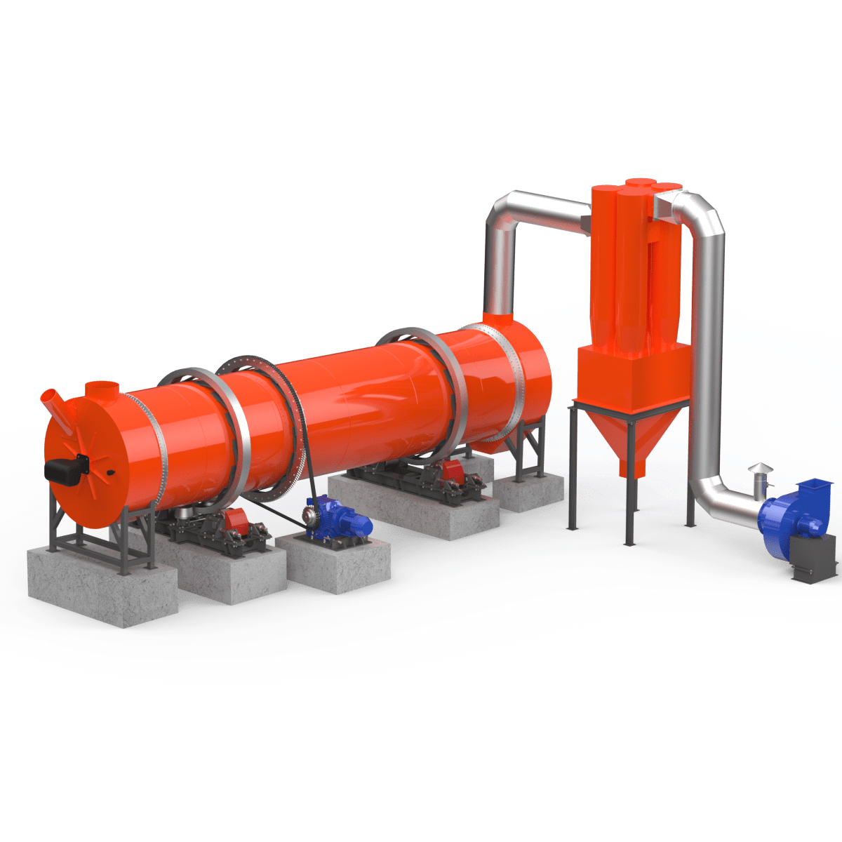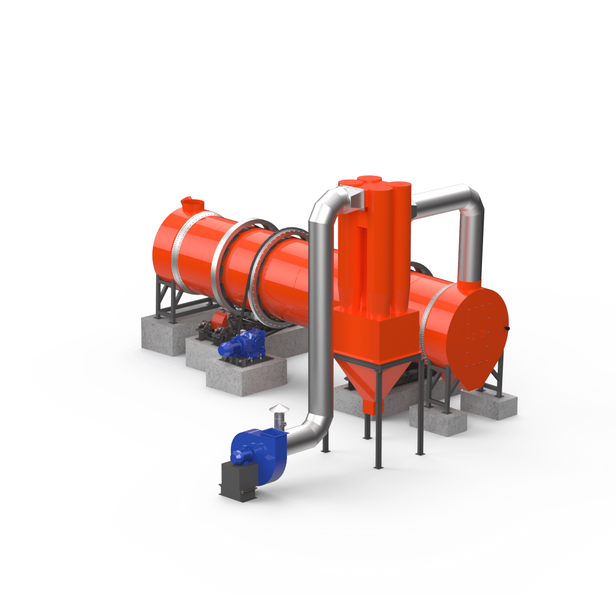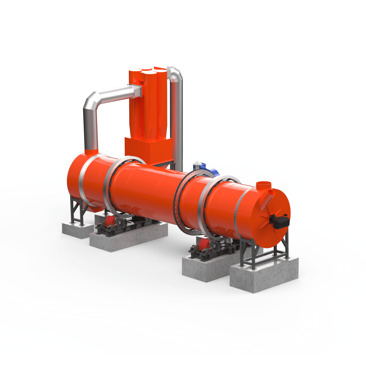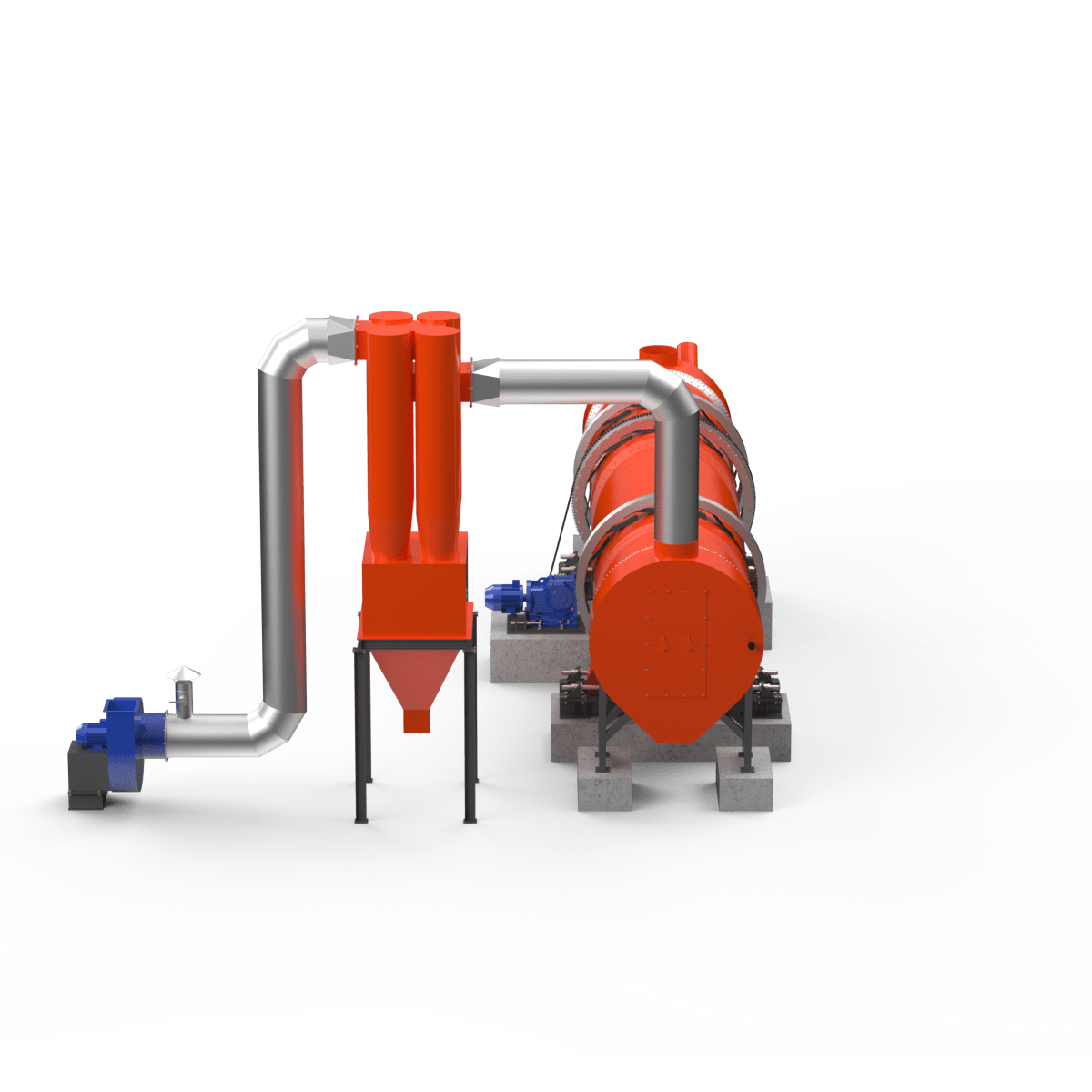 В загрузочной части 8 барабана присутствует отверстие для приточной вентиляции 12, необходимой для поступления теплоносителя в барабан. Приточная вентиляция в комплект поставки не входит. Сушильный барабан укомплектован устройством выгрузки 17.