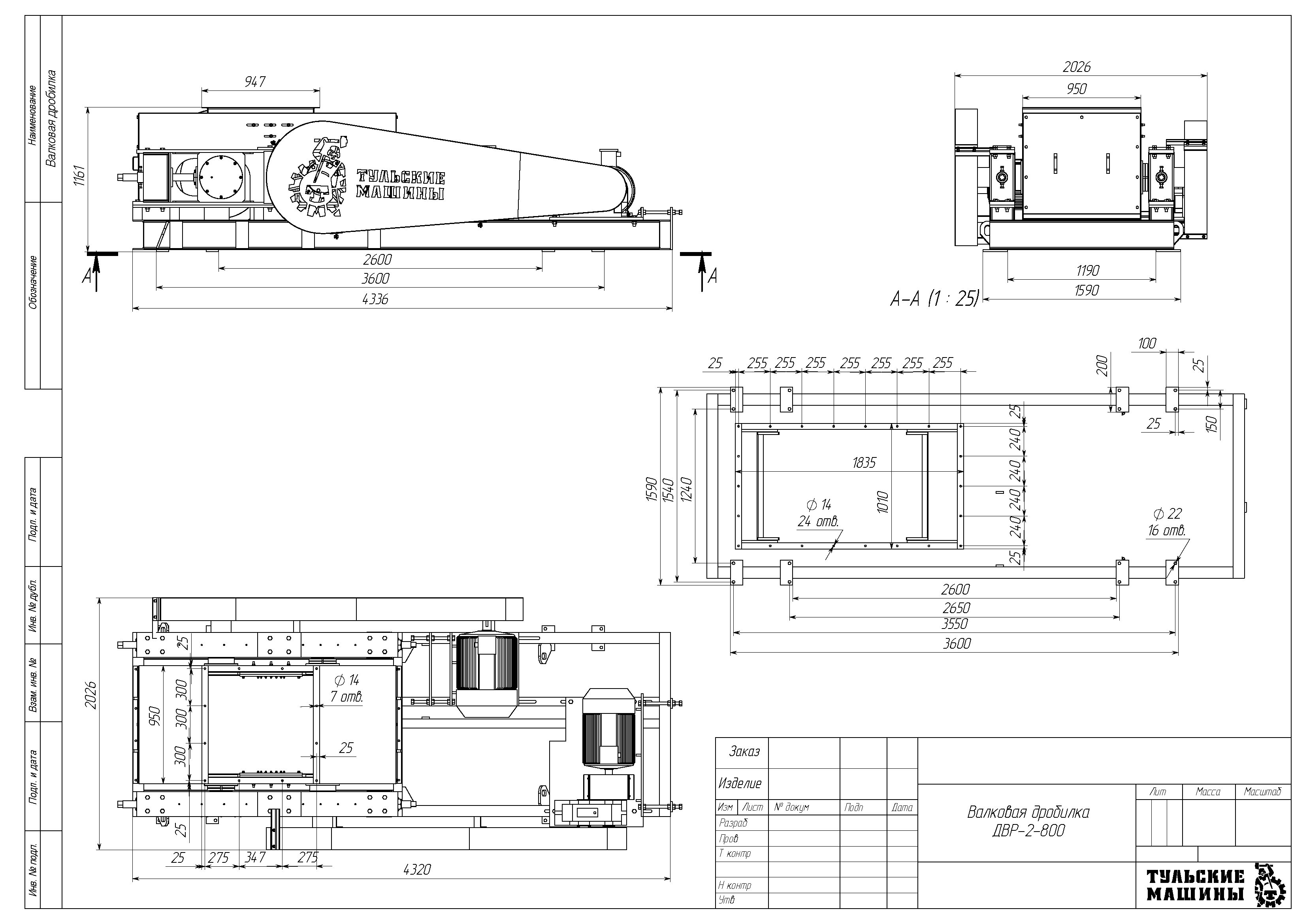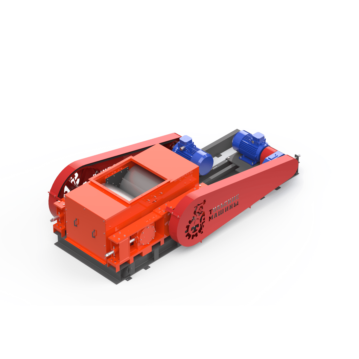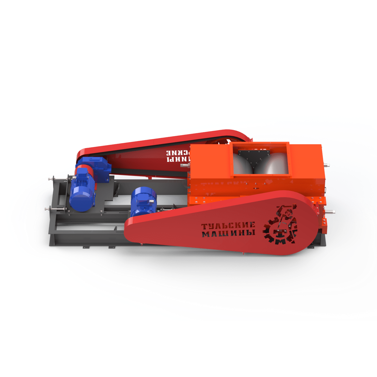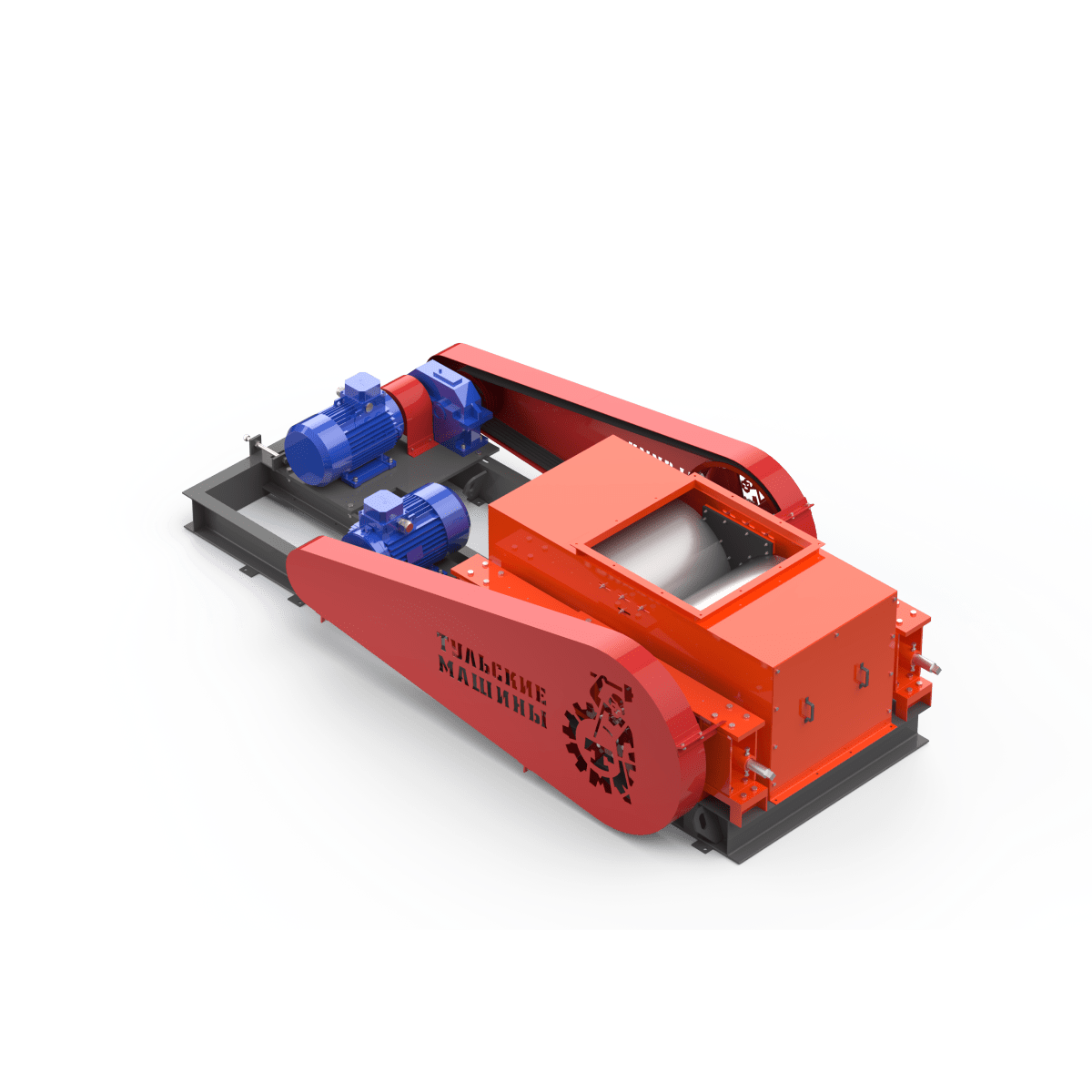 Дробилка представляет собой раму, на которой смонтирован корпус с подвижным и неподвижным валками, установленными в подшипниковых опорах. Привод подвижного и неподвижного валка осуществляется от электродвигателя посредством ременной передачи, редуктора и муфты. На корпусе дробилки устанавливается загрузка, в который производится загрузка исходного материала. В нижней части рамы крепится выгрузка, через которое осуществляется разгрузка материала в тару или на транспортную систему. Ременные передачи ограждены кожухами.