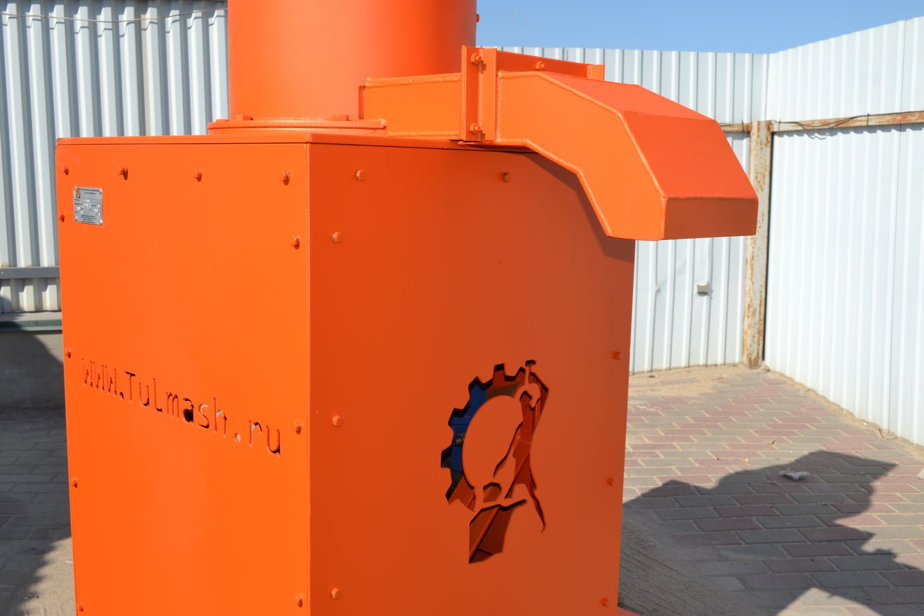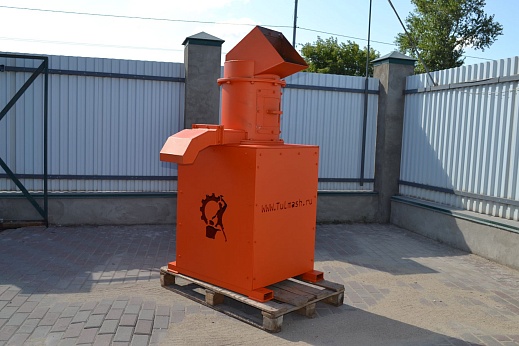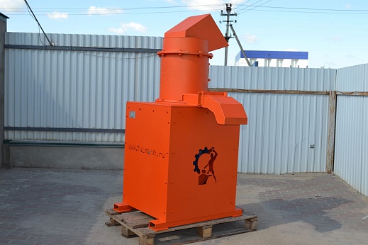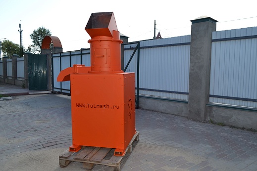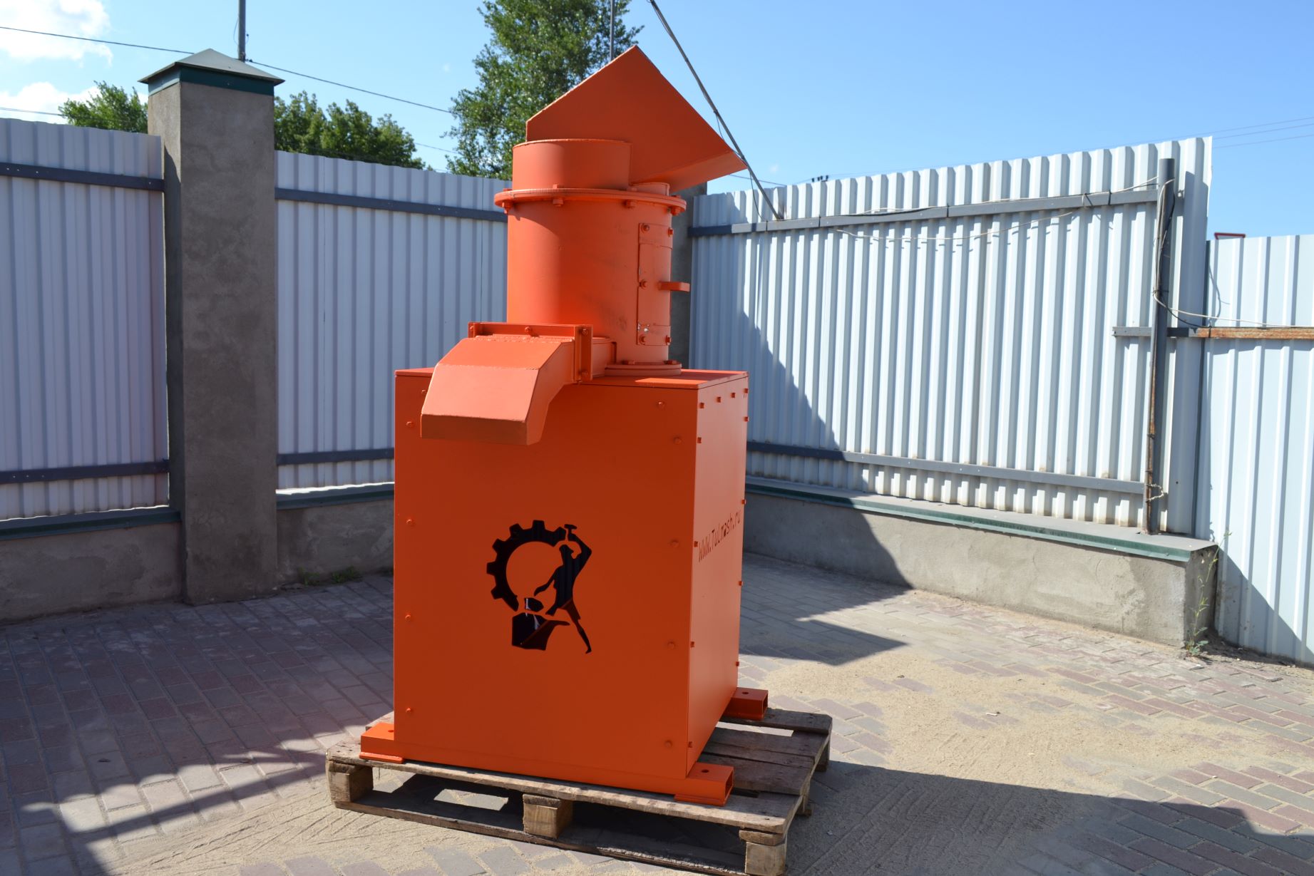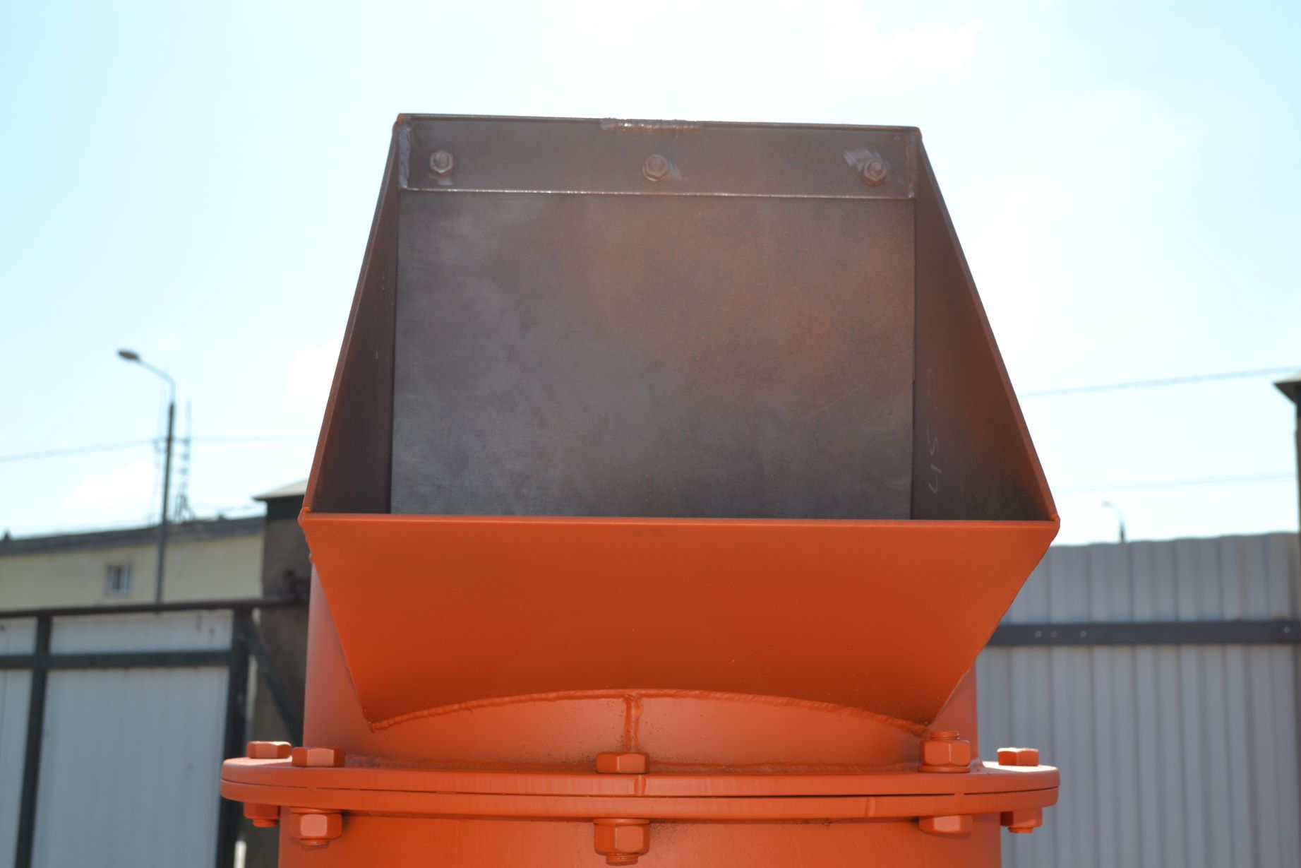 Материал попадает в приемную воронку, установленную на корпусе в верхней части вертикальной дробилки. Под собственным весом материал стремится к нижней части помольной зоны. Тем самым продвигаясь вниз по помольной камере материал, непрерывно подвергается механическому воздействию путем ударов о молотки и брони. В нижней части корпуса дробилки предусмотрены люки для беспрепятственной выгрузки материала. Измельченный материал просыпается в отгрузочную воронку.