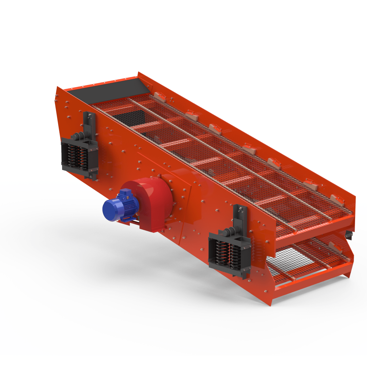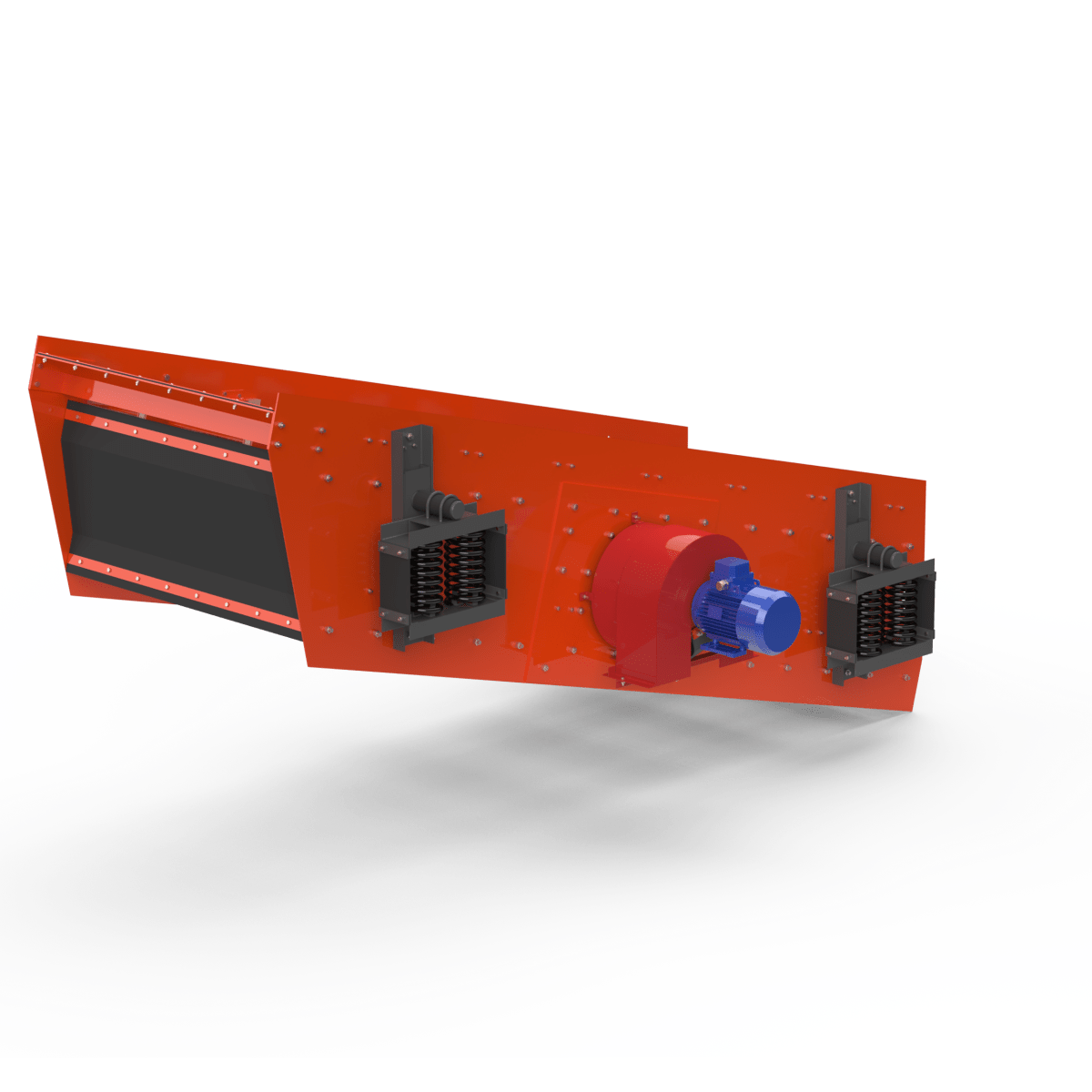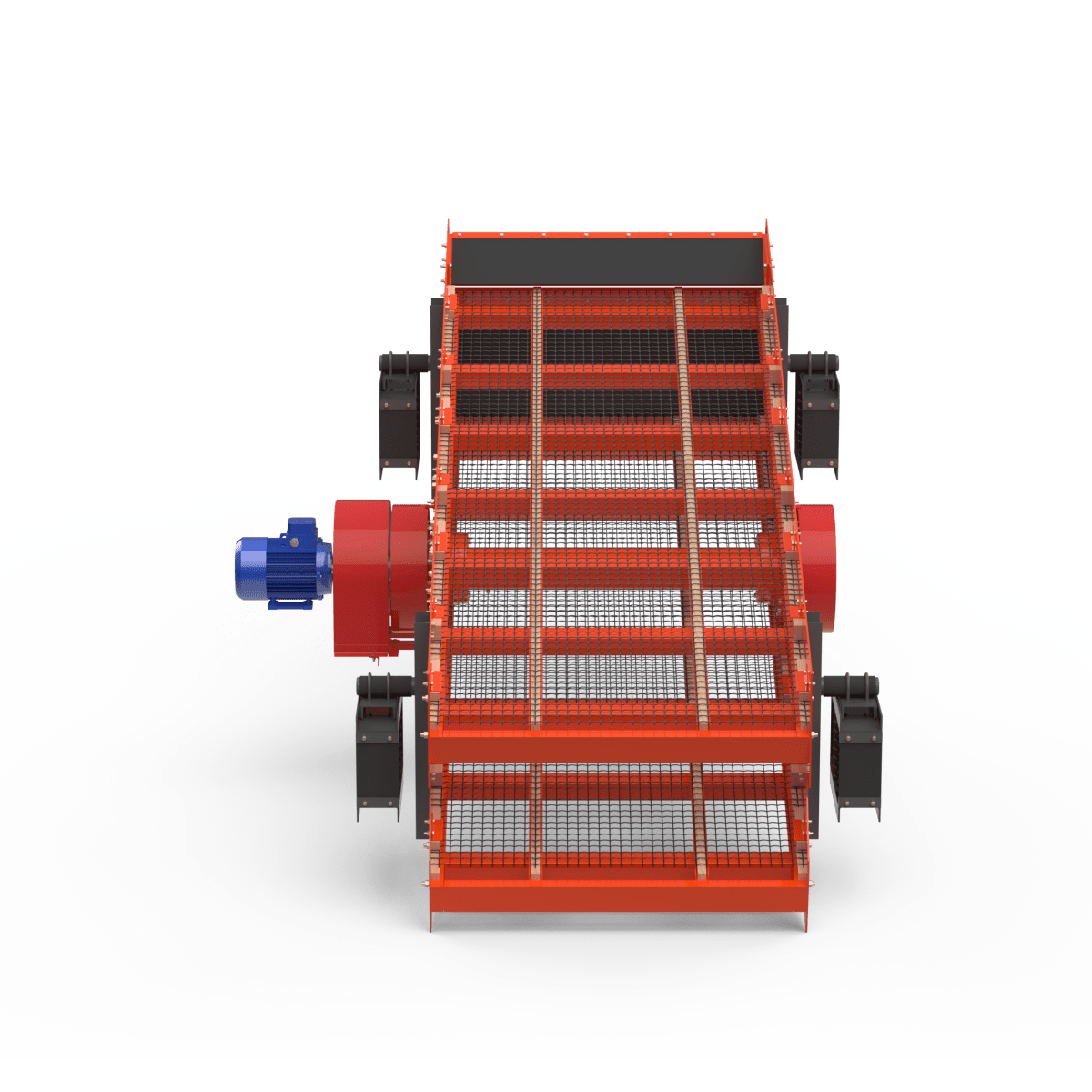 Материал для разделения поступает в грохот через загрузочный люк. Затем сырье при помощи вынуждающей силы вращения дебалансов вибратора подбрасывается, после чего начинает двигаться по наклонной верхней просеивающей поверхности в сторону выгрузки. При движении материала он просеивается сквозь сито.