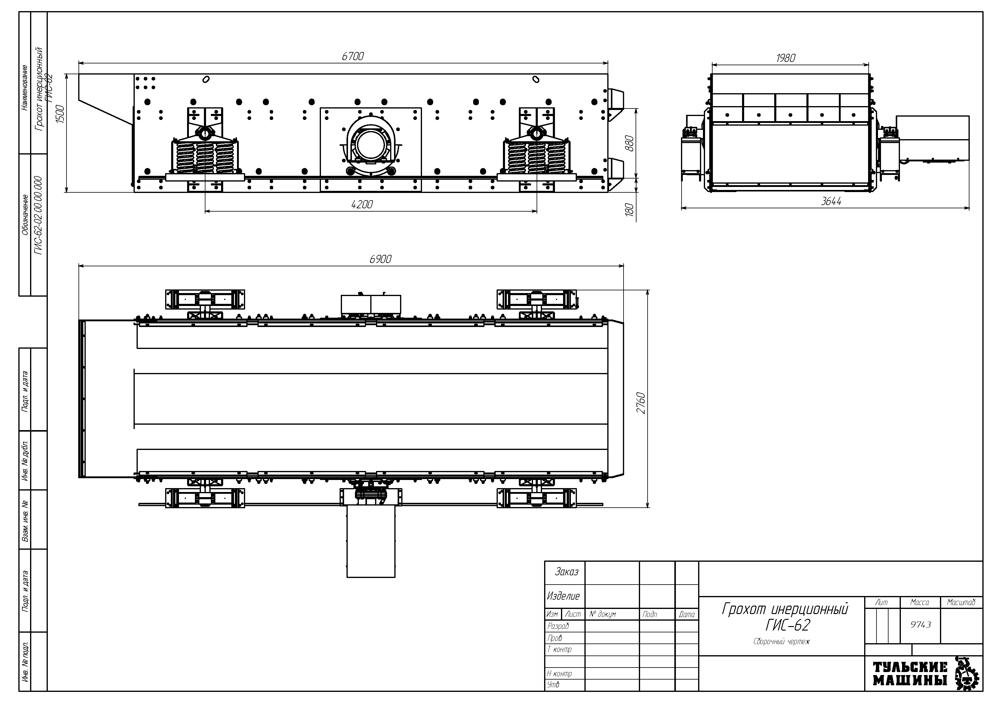 Грохот инерционный ГИС‑62 — промышленное оборудование, предназначенное для сухого грохочения сыпучих строительных и нерудных материалов (гравия, щебня, песка и др.) с крупностью кусков до 200 мм. Машина обеспечивает высокоэффективное разделение материала на фракции благодаря двухъярусной просеивающей системе и устойчивой вибрационной конструкции. Грохот работает при наклоне сит от 10 до 25°, обеспечивая производительность до 220 м³/ч.
