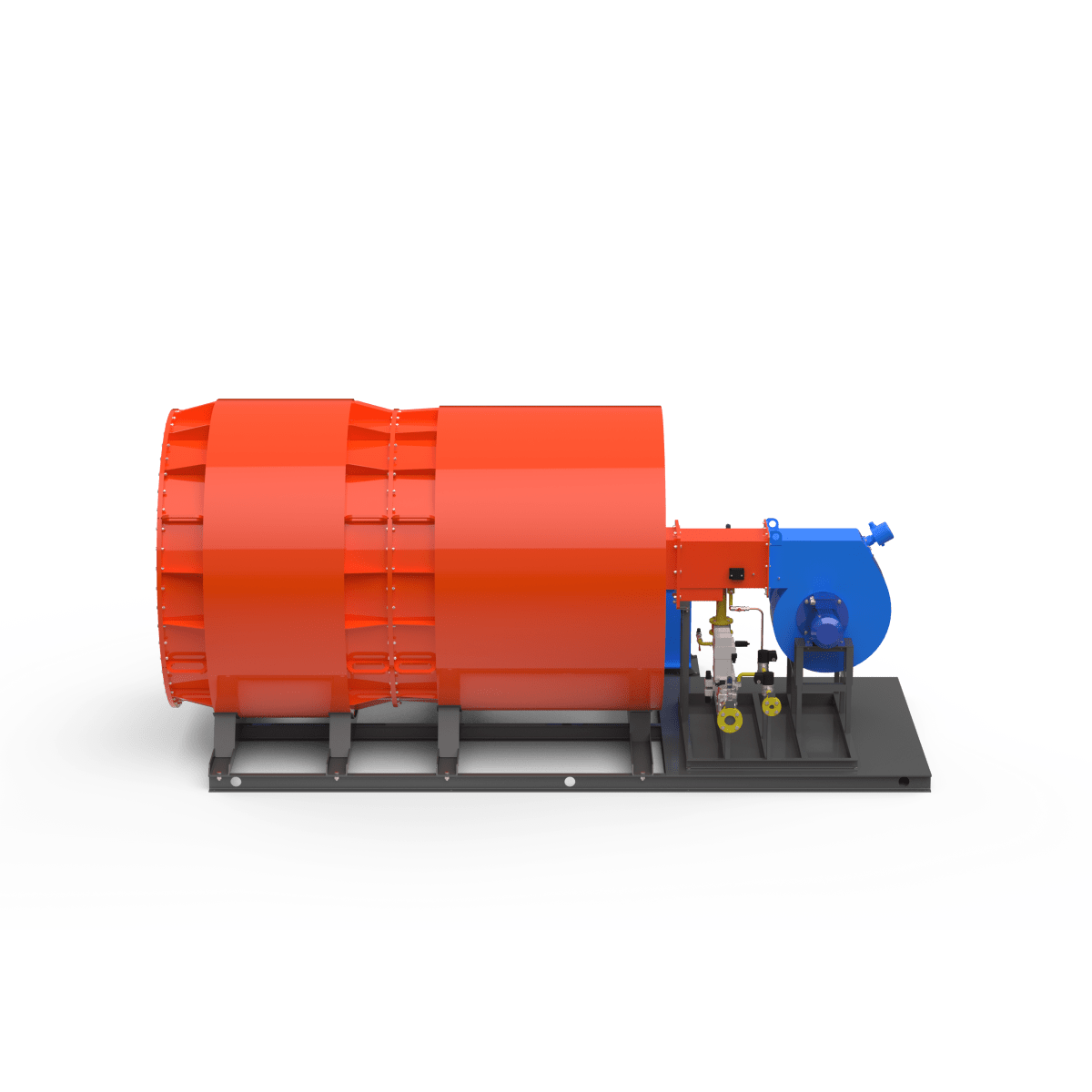 Воздухонагреватели (теплогенераторы) газовые промышленные смесительные серии СВТ служат для получения теплоносителя (газообразное вещество, применяемое для передачи тепловой энергии), который представляет собой смесь воздуха и продуктов сгорания природного газа. Тепло от факела, в нашем случае, от газовой промышленной блочной горелки, и продуктов сгорания передается по воздуху путем прямого контакта (смешения), поэтому наши теплогенераторы являются воздухонагревателями прямого нагрева. Теплогенератор представляет собой конструкцию из газовой промышленной блочной горелки, камеры сгорания смесительного типа, смонтированных на одной раме, вентиляторов, автоматики безопасности и управления.