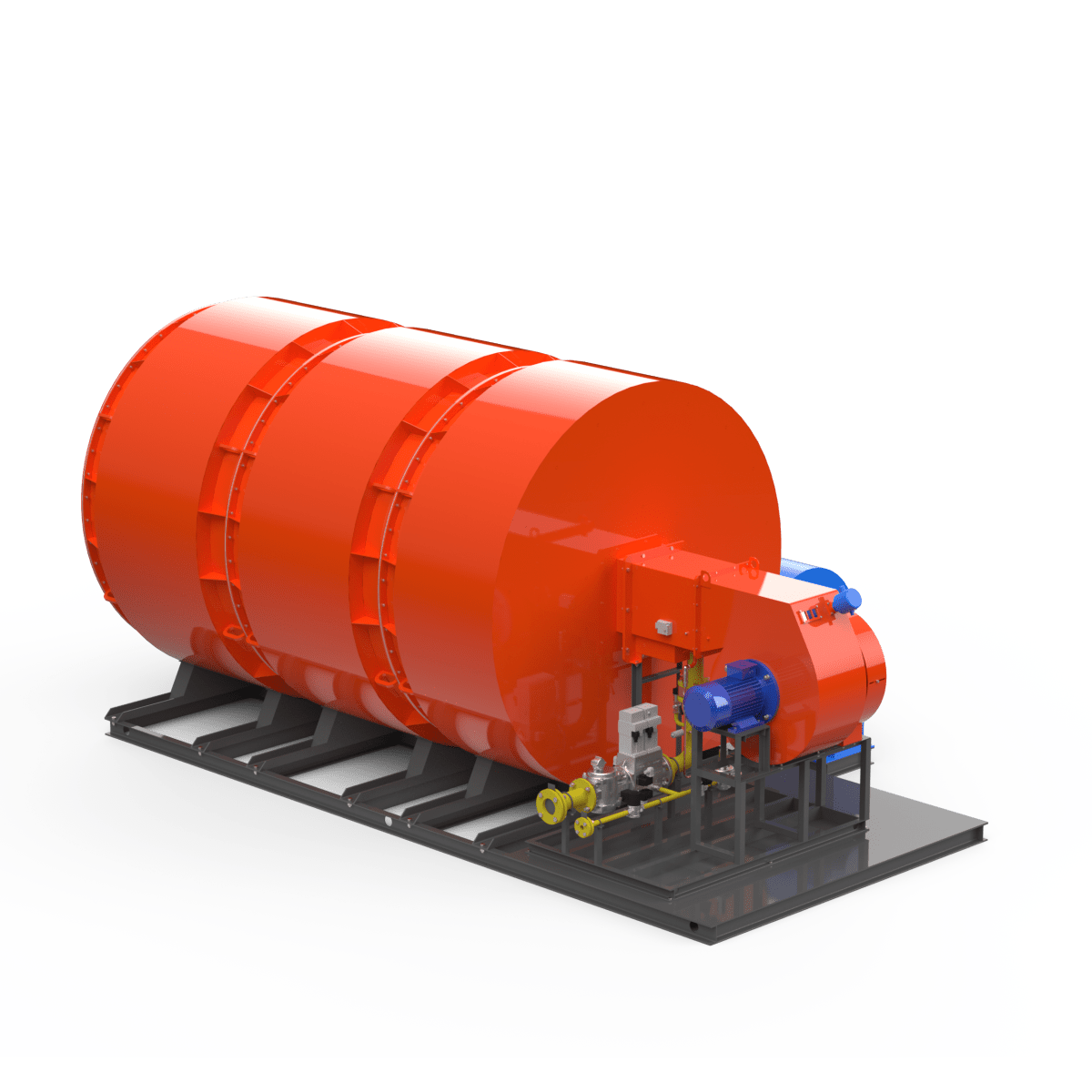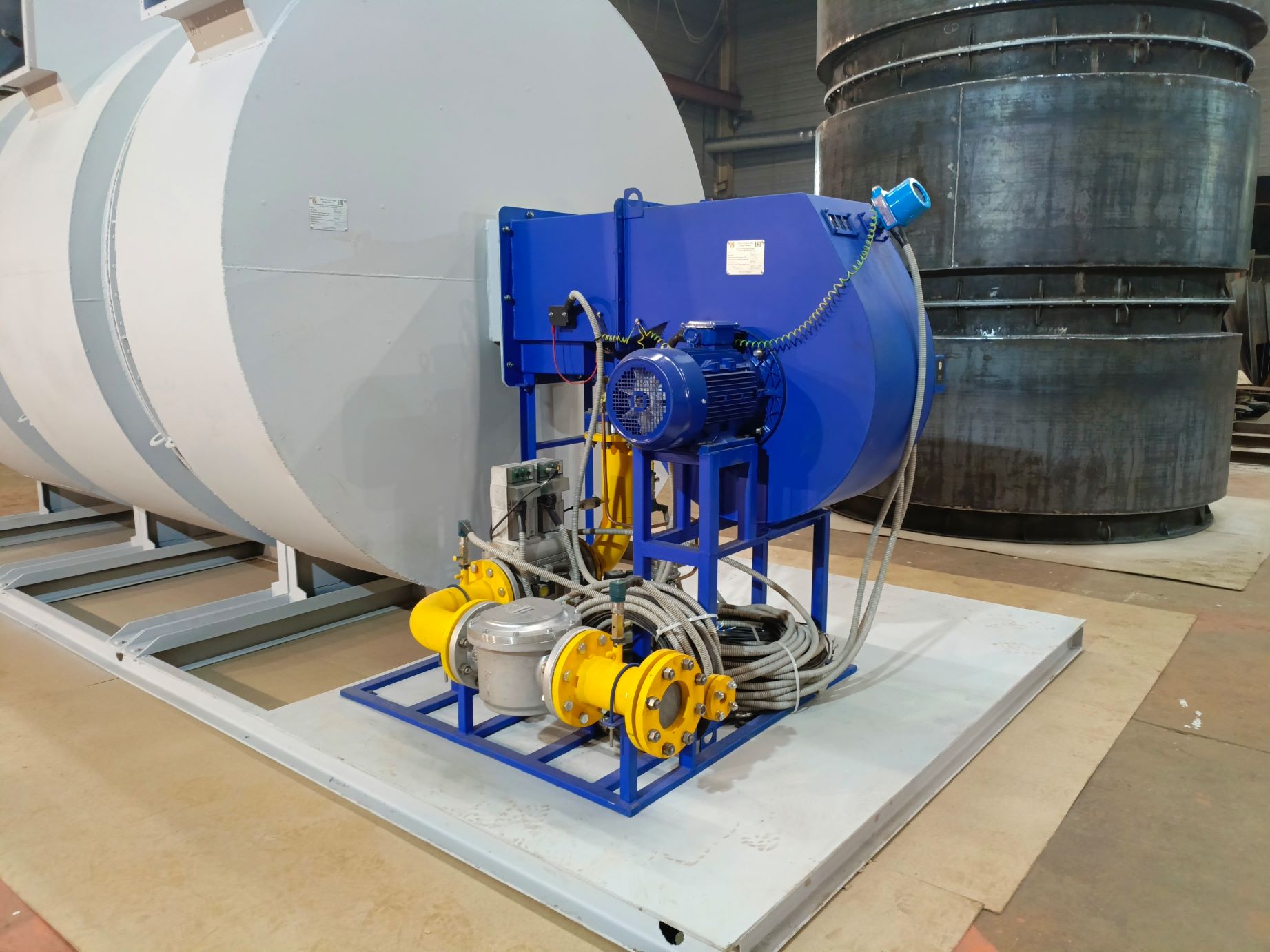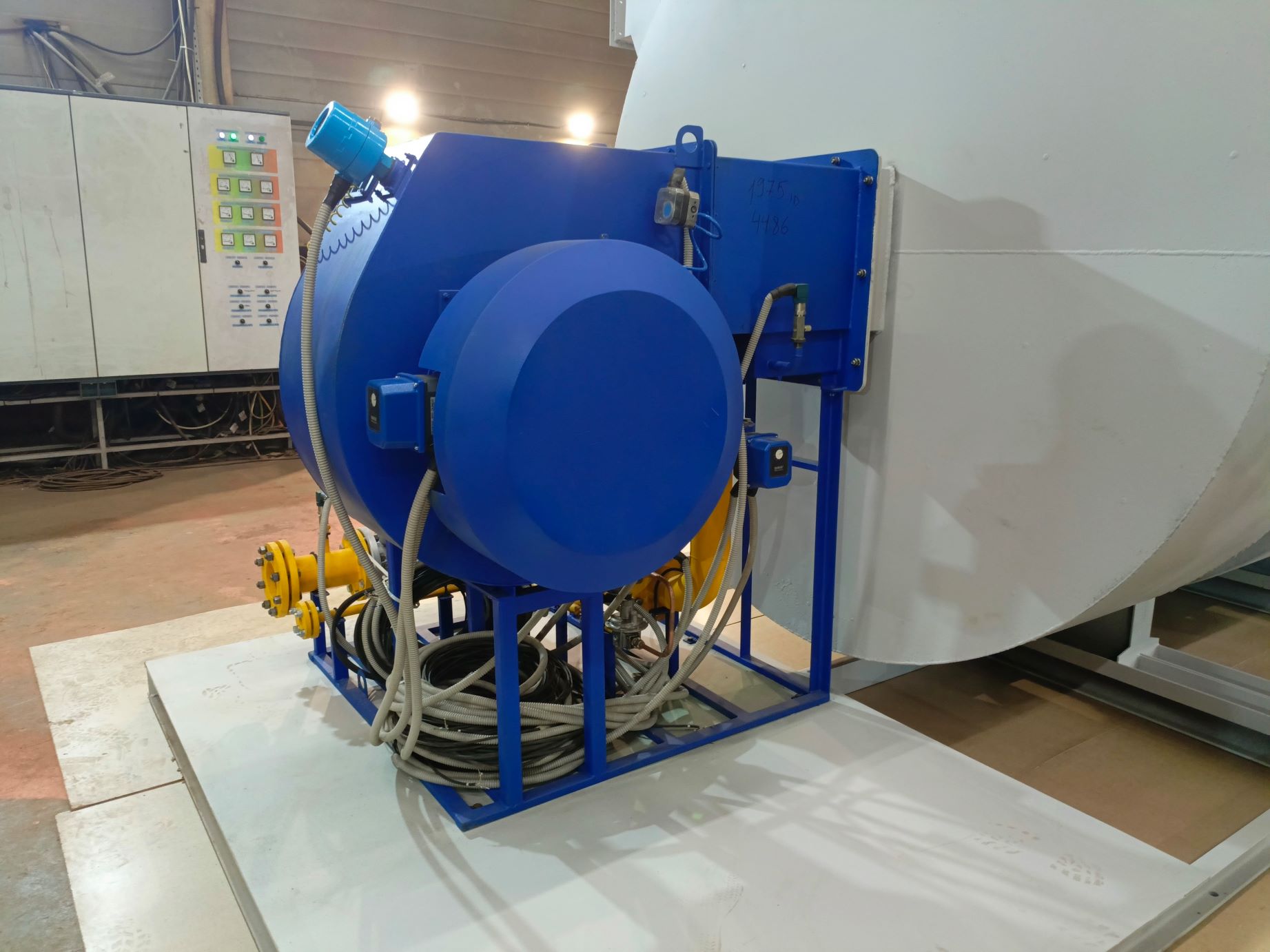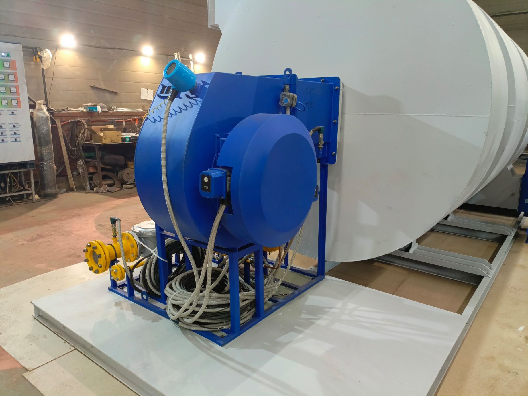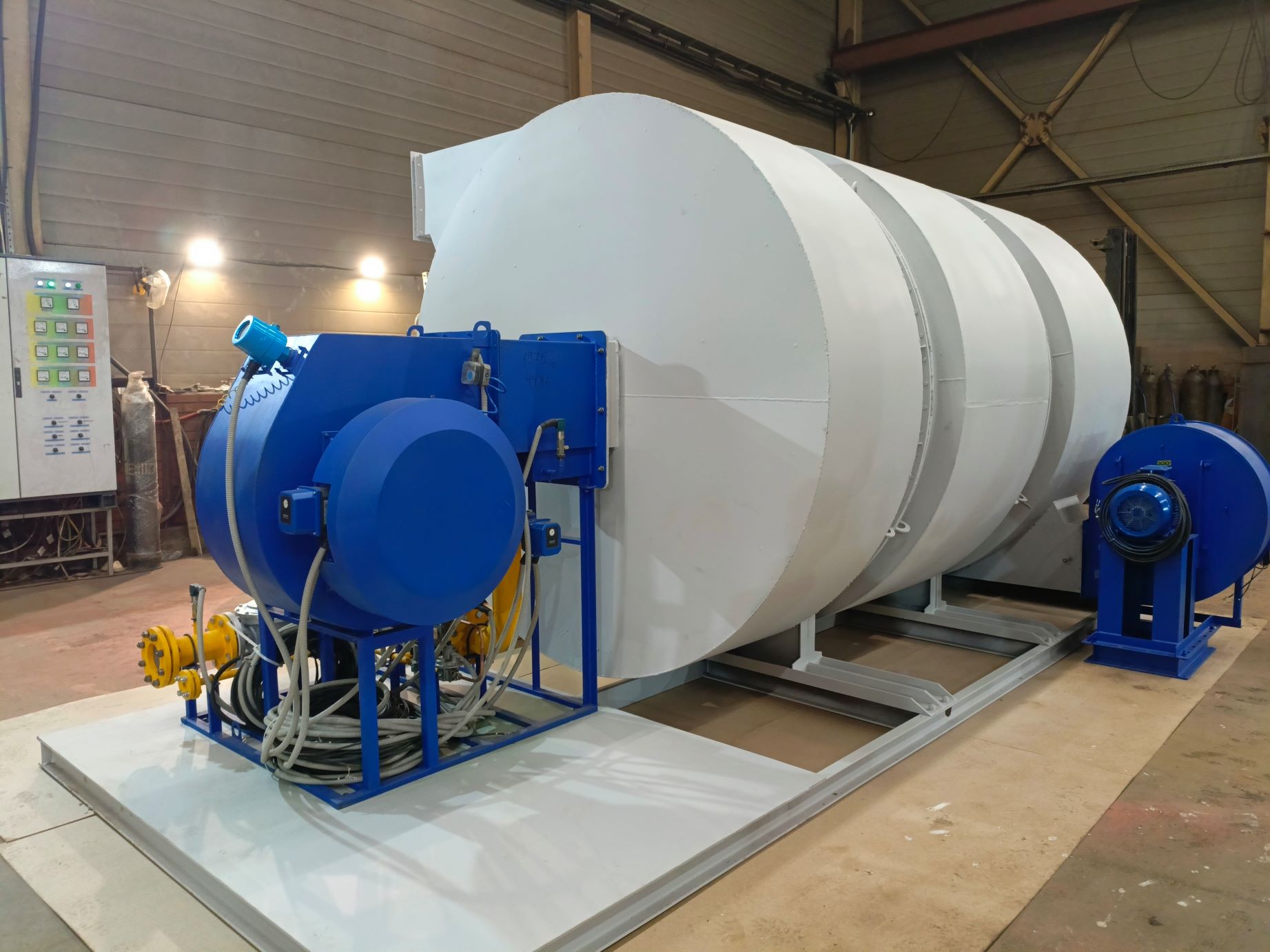 Воздухонагреватели (теплогенераторы) газовые промышленные смесительные серии СВТ служат для получения теплоносителя (газообразное вещество, применяемое для передачи тепловой энергии), который представляет собой смесь воздуха и продуктов сгорания природного газа. Тепло от факела, в нашем случае, от газовой промышленной блочной горелки, и продуктов сгорания передается по воздуху путем прямого контакта (смешения), поэтому наши теплогенераторы являются воздухонагревателями прямого нагрева. Теплогенератор представляет собой конструкцию из газовой промышленной блочной горелки, камеры сгорания смесительного типа, смонтированных на одной раме, вентиляторов, автоматики безопасности и управления.