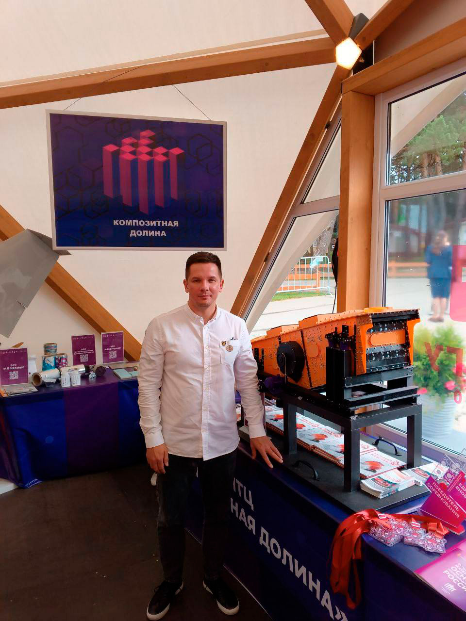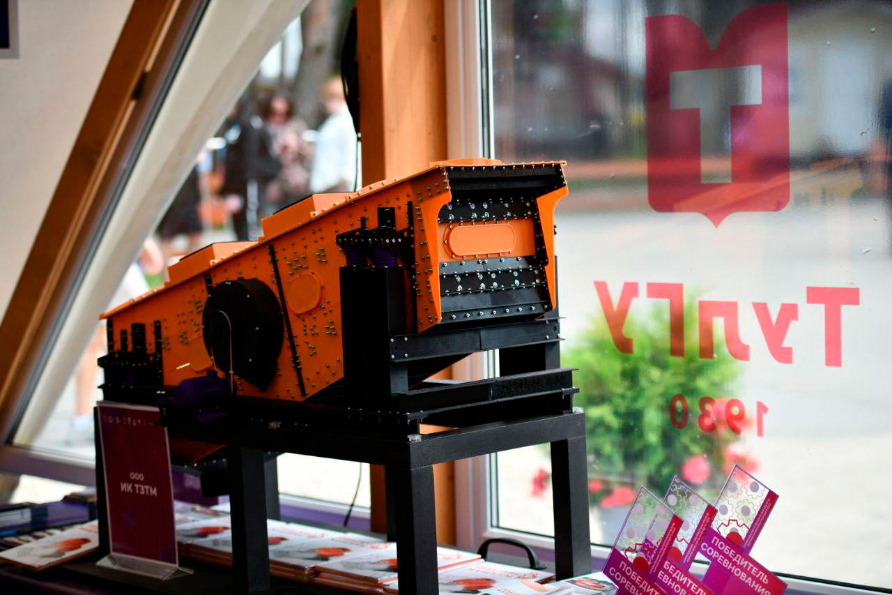 В рамках участия завод, являясь резидентом ИНТЦ «Композитная долина», презентовала макет инерционного грохота. Данный грохот был создан с помощью обратного инжиниринга по заказу клиента. Основа разработки — немецкое оборудование, аналог которого был воссоздан специалистами завода в условиях санкционного давления, с использованием отечественных компонентов.