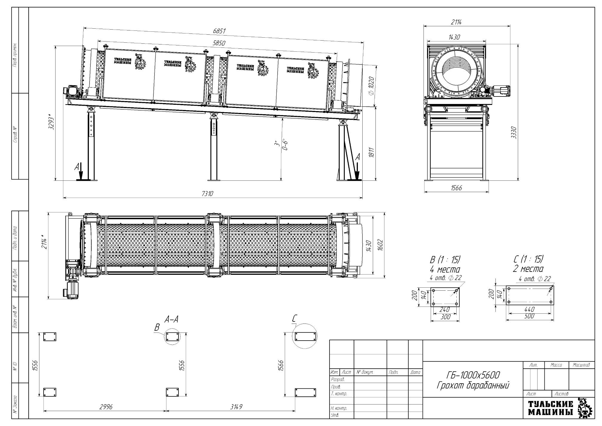 ЧЕРТЕЖ — Барабанный грохот ГБ 1000х5600