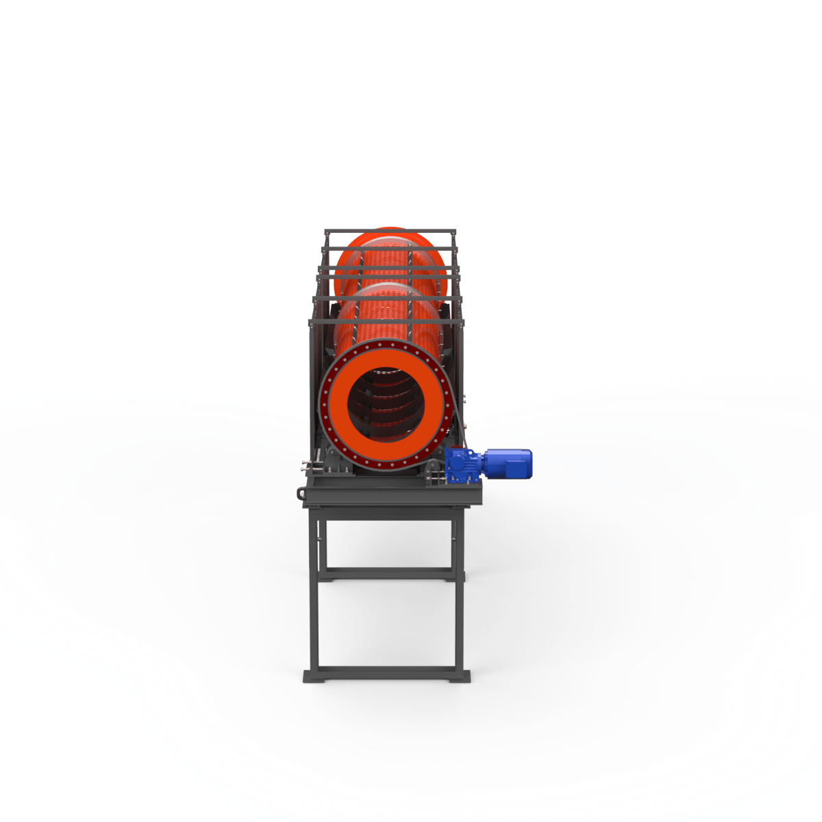 Барабанный грохот ГБ 1000×5600 (троммель) — установка для классификации и сортировки сыпучих материалов по крупности в непрерывном режиме. За счёт вращения перфорированного барабана материал перемешивается и последовательно проходит по рабочей длине, а фракции отделяются через отверстия сита: мелкая фракция просеивается вниз, крупная выходит через торец. Такие грохоты применяют как для сухого грохочения, так и в промывочных схемах для слабозагрязнённых материалов.