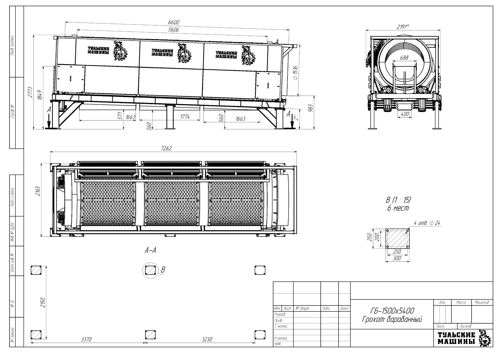 ЧЕРТЕЖ — Барабанный грохот ГБ 1500х5400