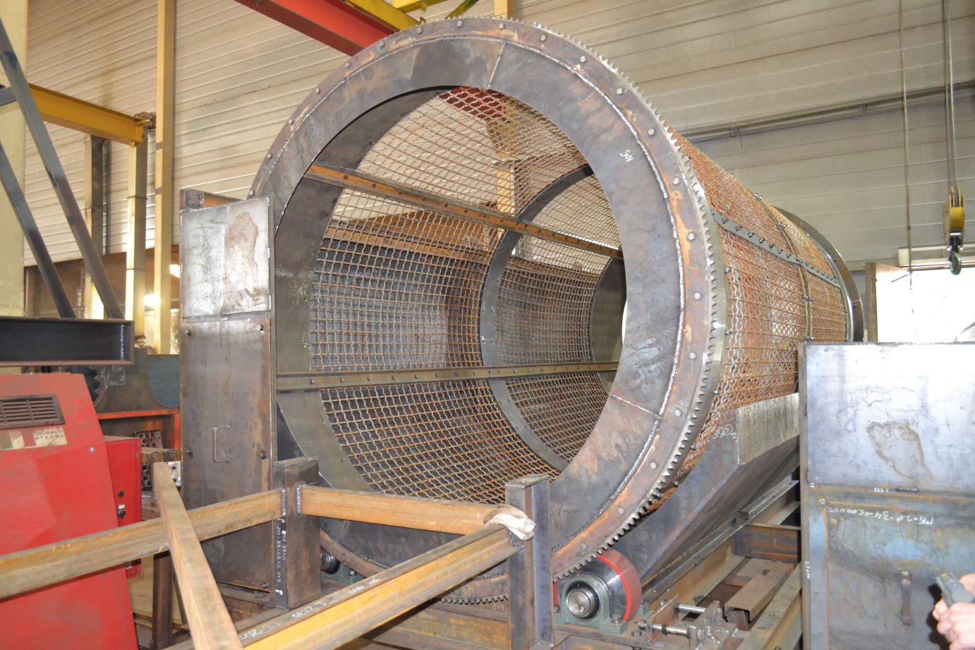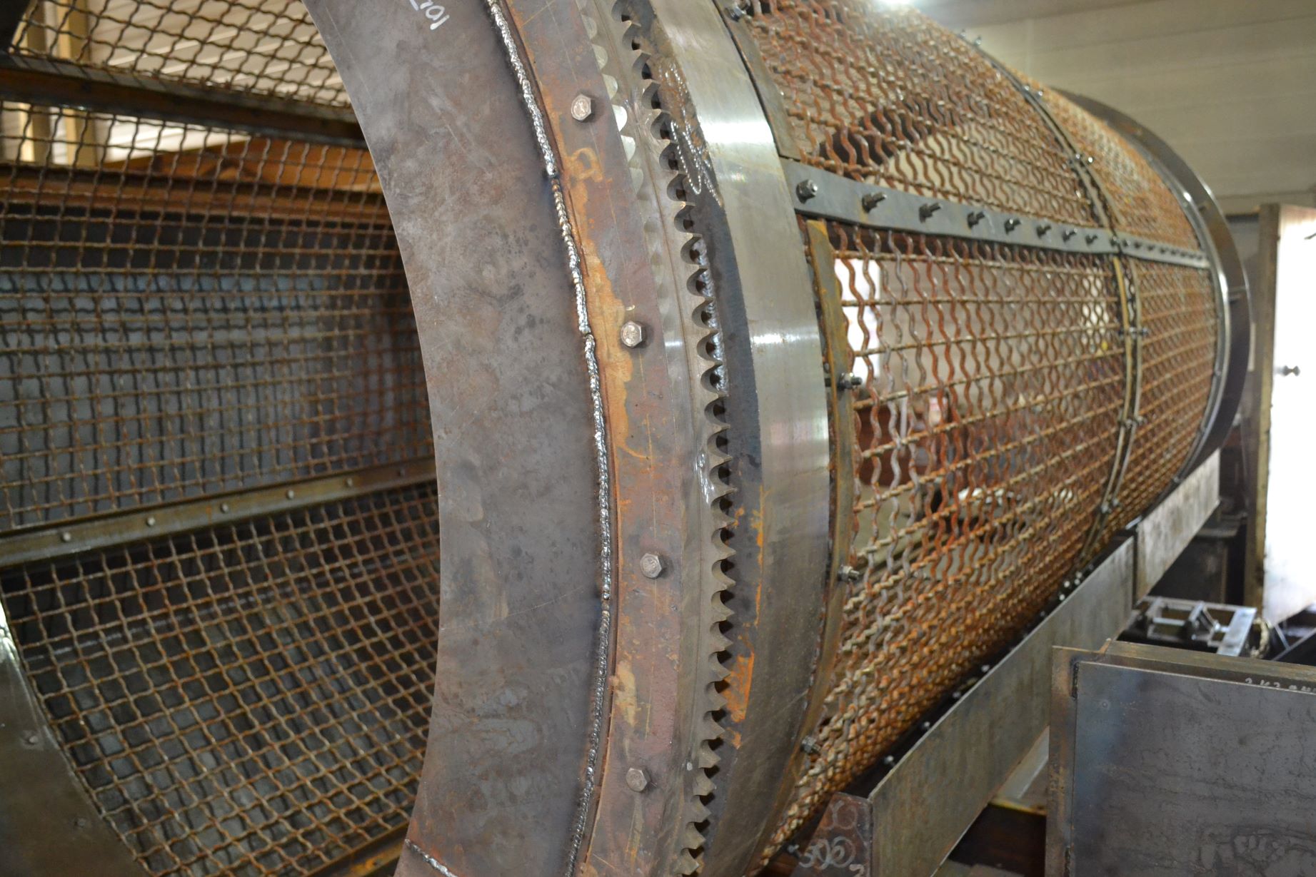 Конструктивно барабанный грохот представляет собой наклонный вращающийся цилиндр, поверхность которого оснащена просеивающими ячейками заданного размера. Основные узлы установки включают: