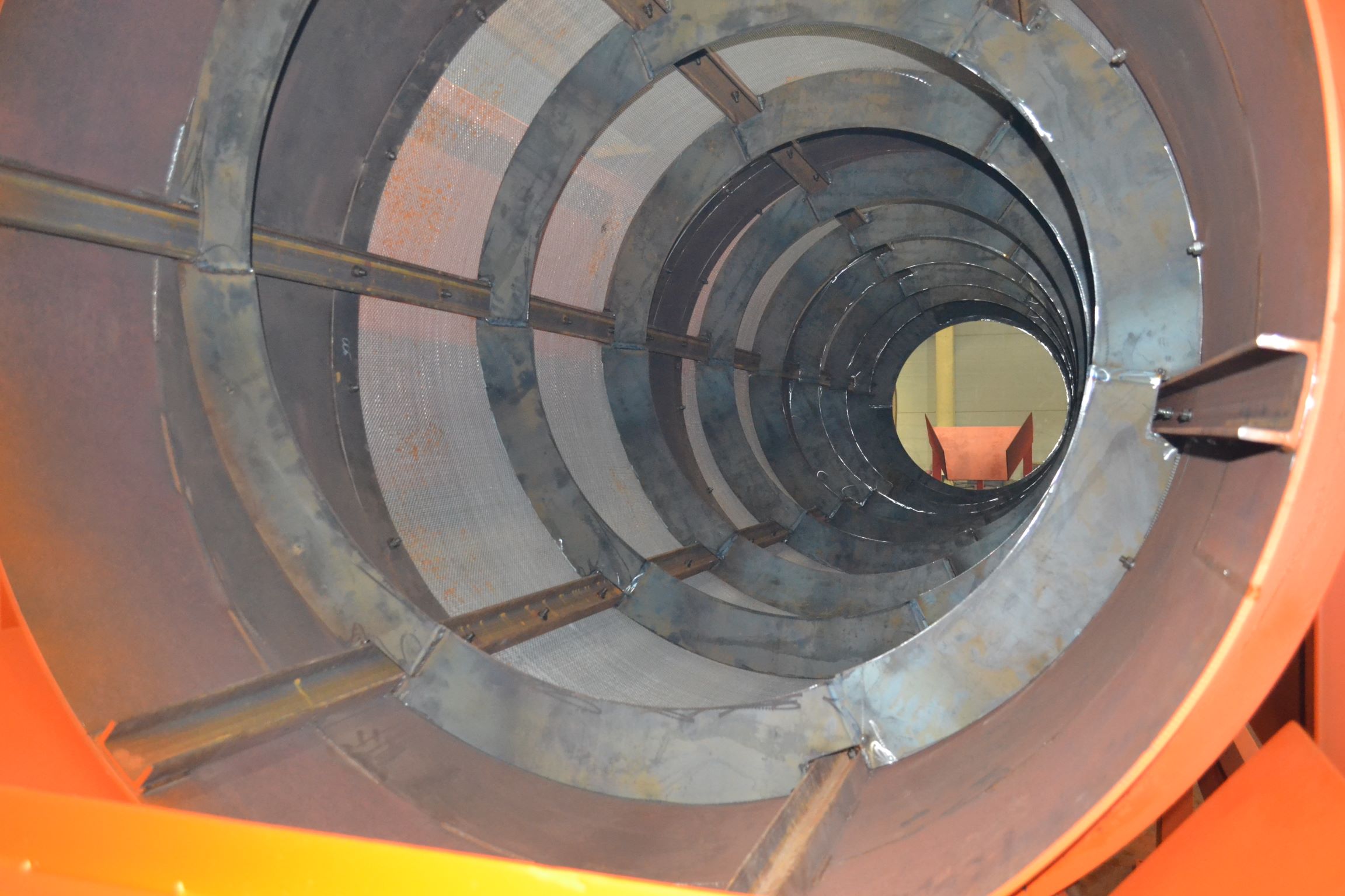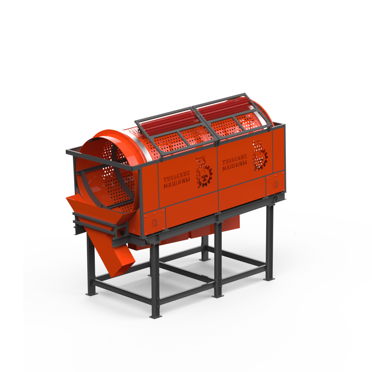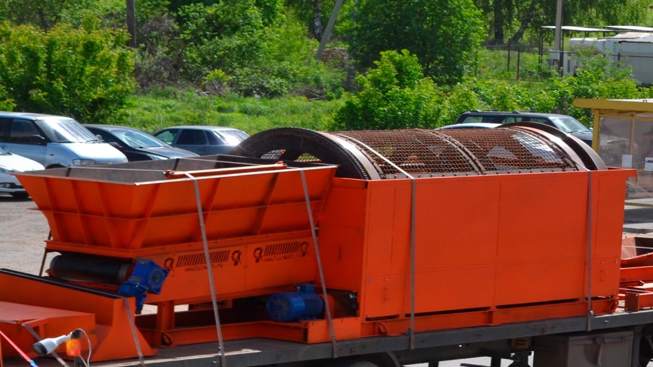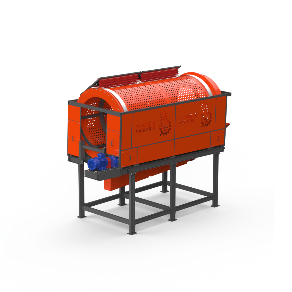 - Разделение: Мелкая фракция проходит сквозь отверстия сит, а крупные включения (надрешетный продукт) выходят через торцевое отверстие.
