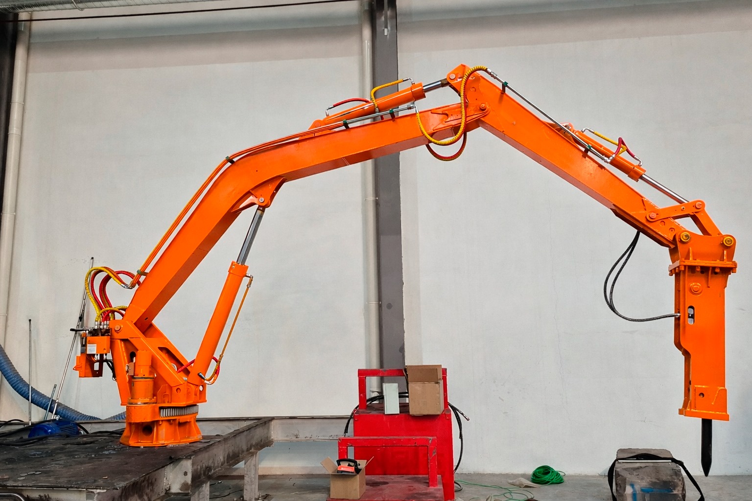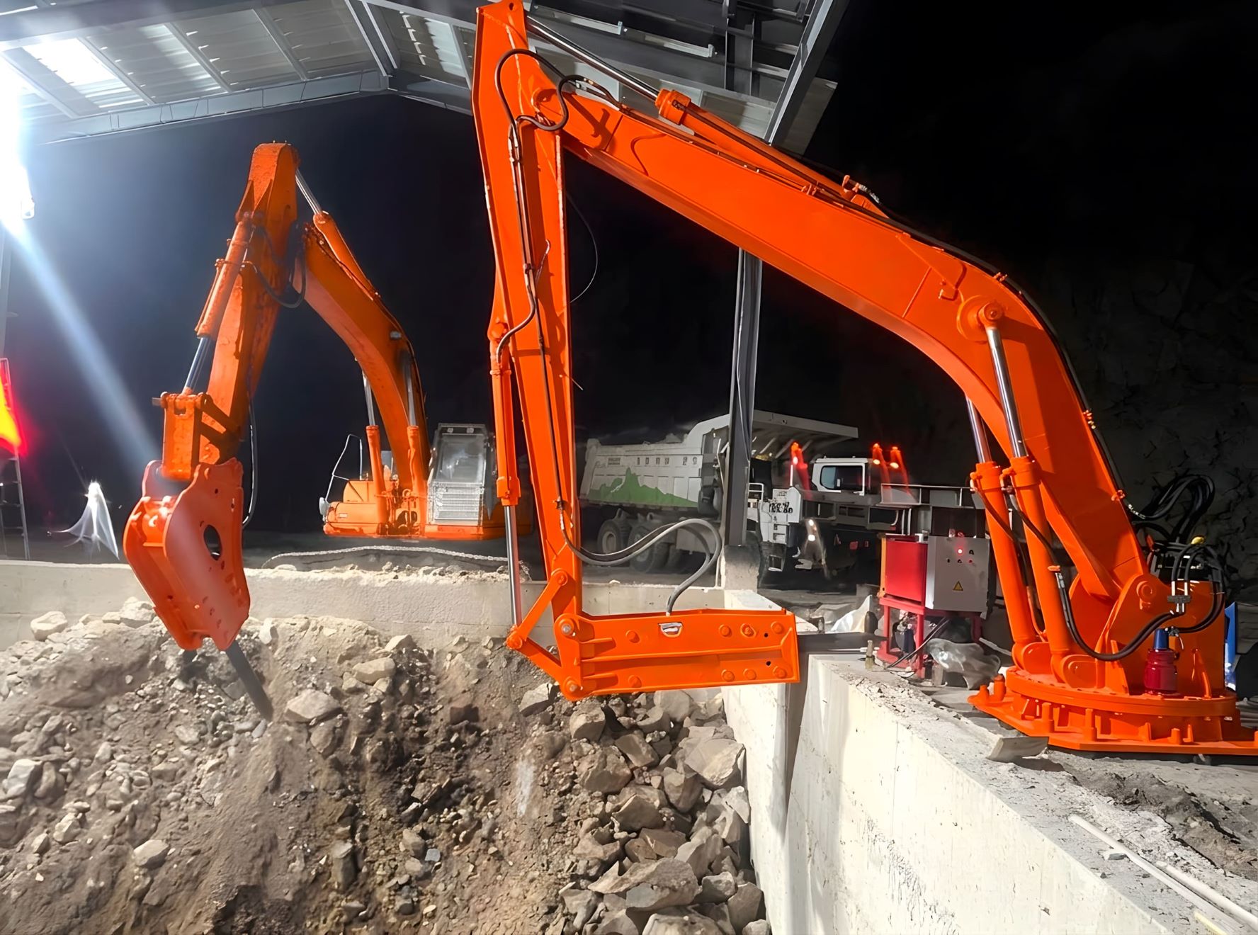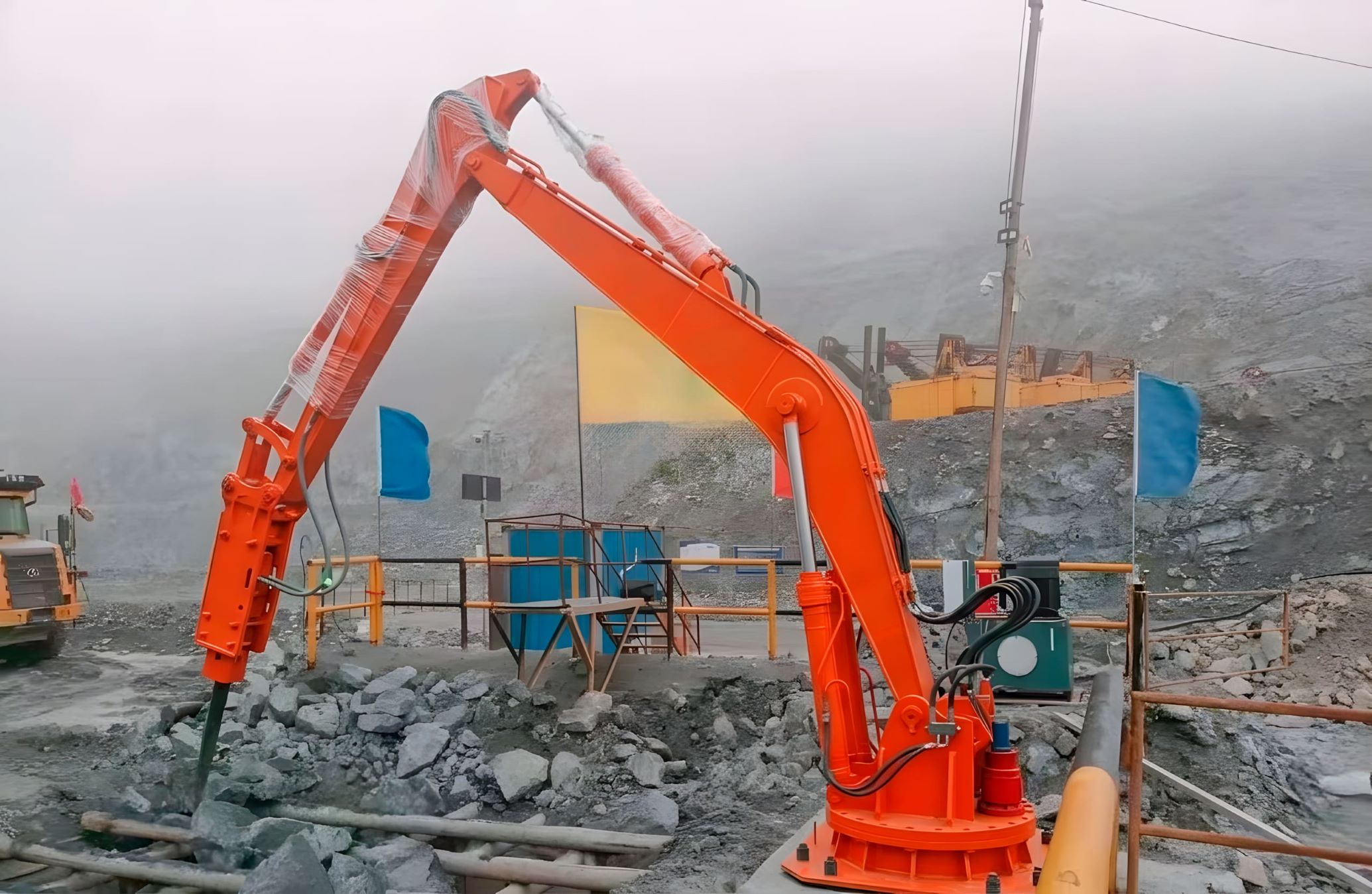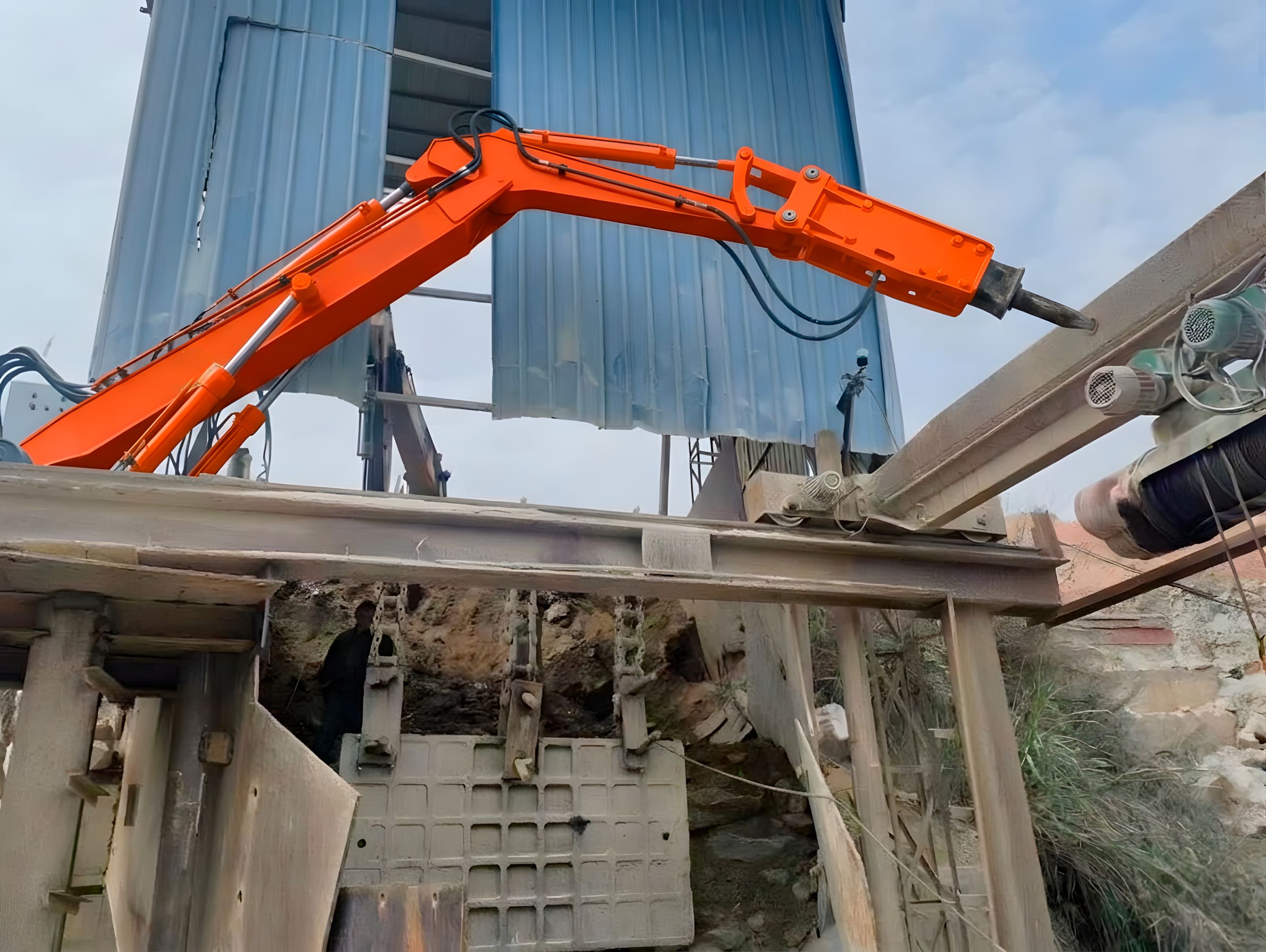 Бутобой предназначен для механизации работ по разрушению негабарита. Манипуляторная установка с навесным гидромолотом позволяет оперативно дробить крупные куски руды, породы, шлаков или бетона до размеров, необходимых для стабильной подачи в дробилку и дальнейшей переработки.