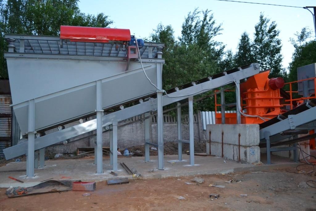 Складирование измельченного материала или подача его на дополнительные узлы линии осуществляется с помощью ленточного конвейера.