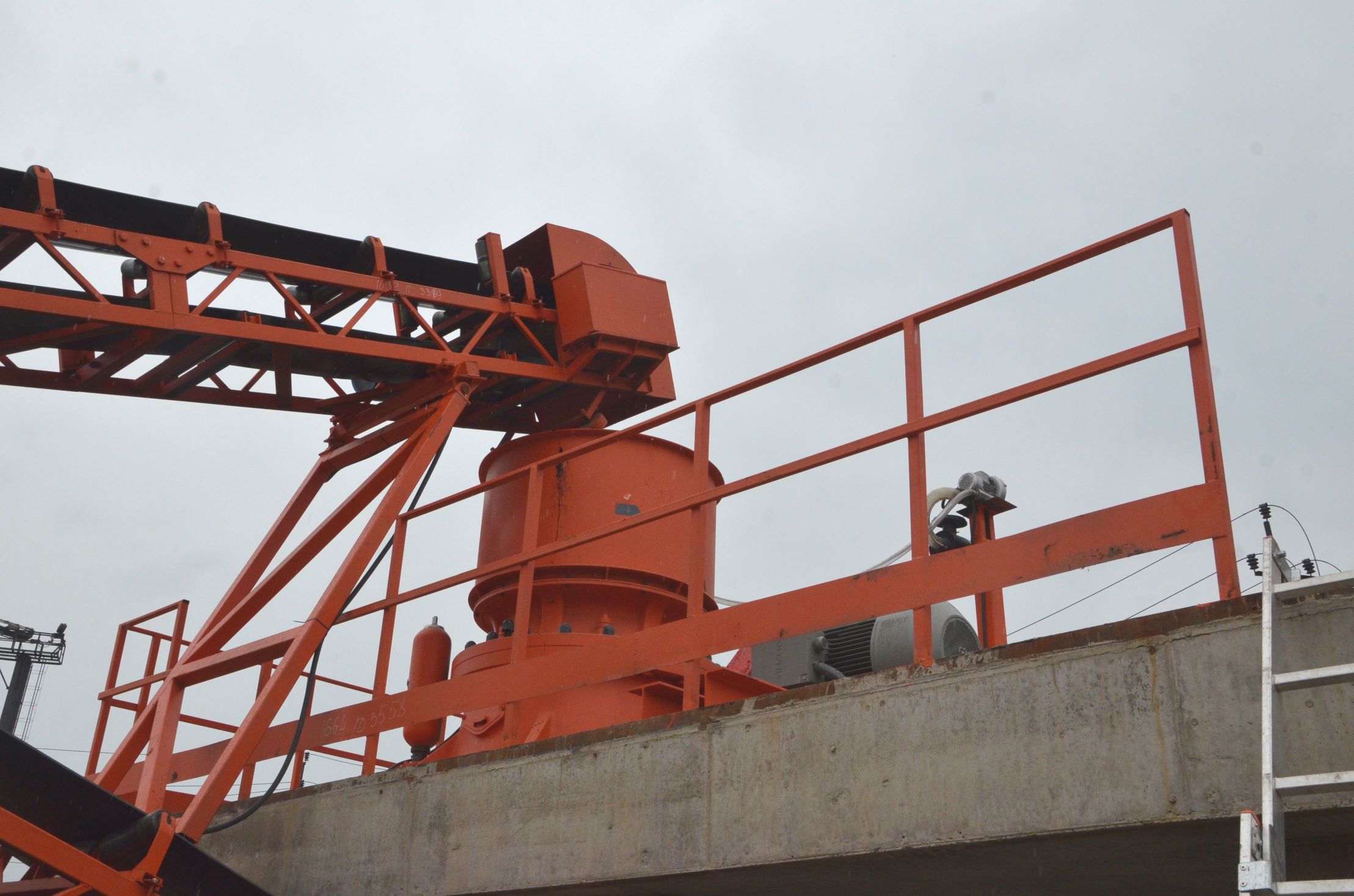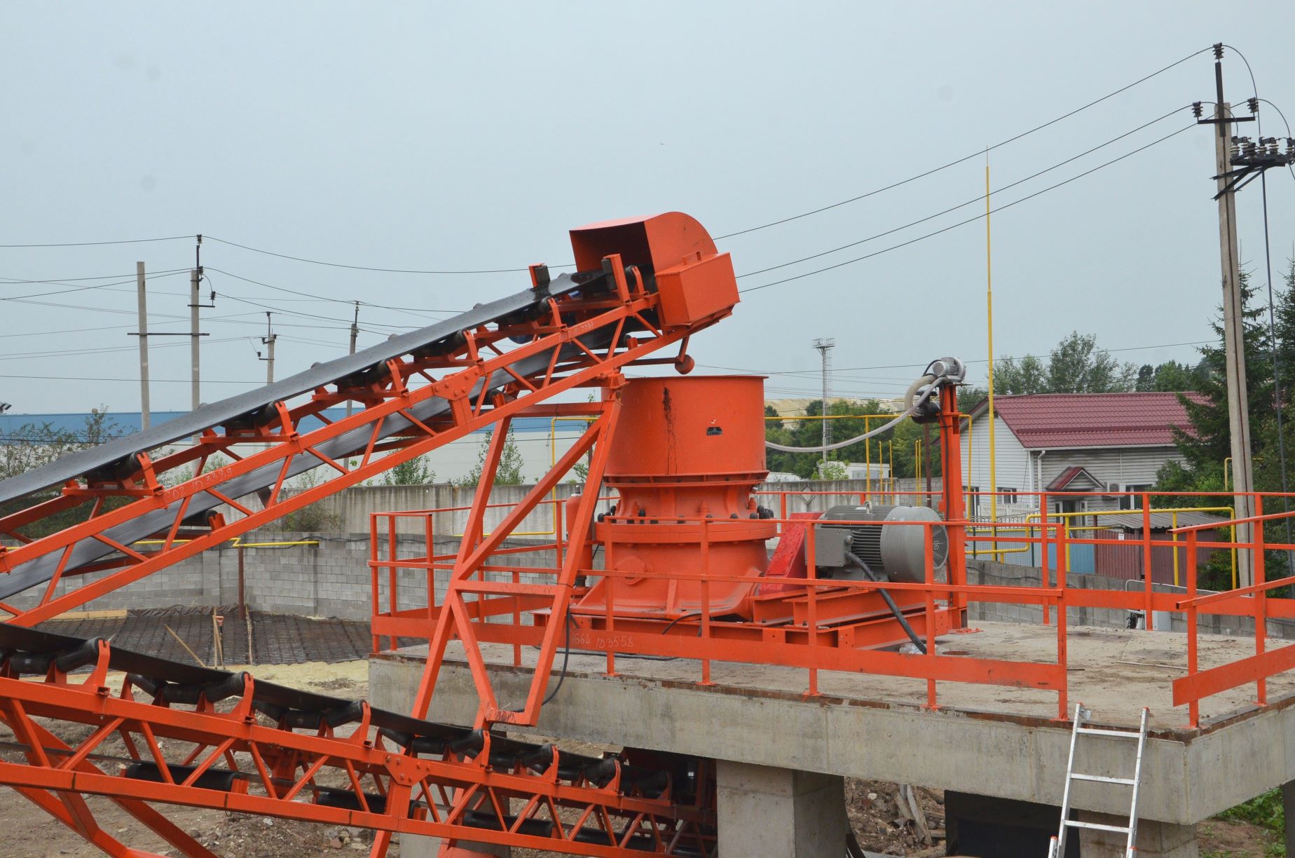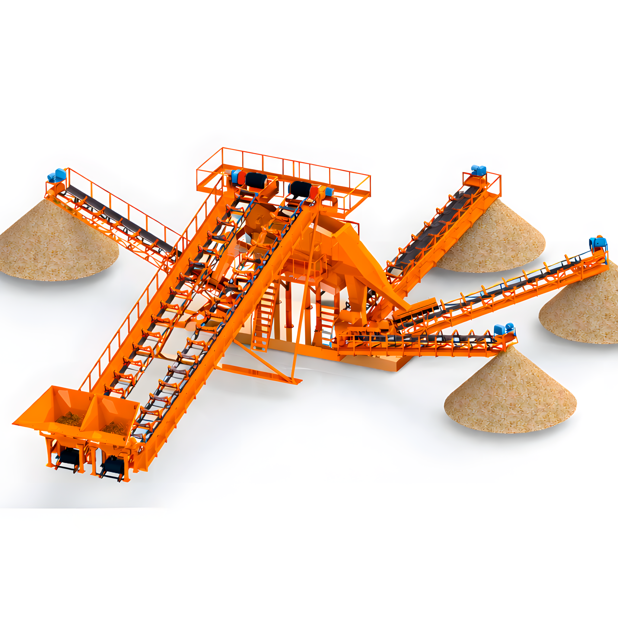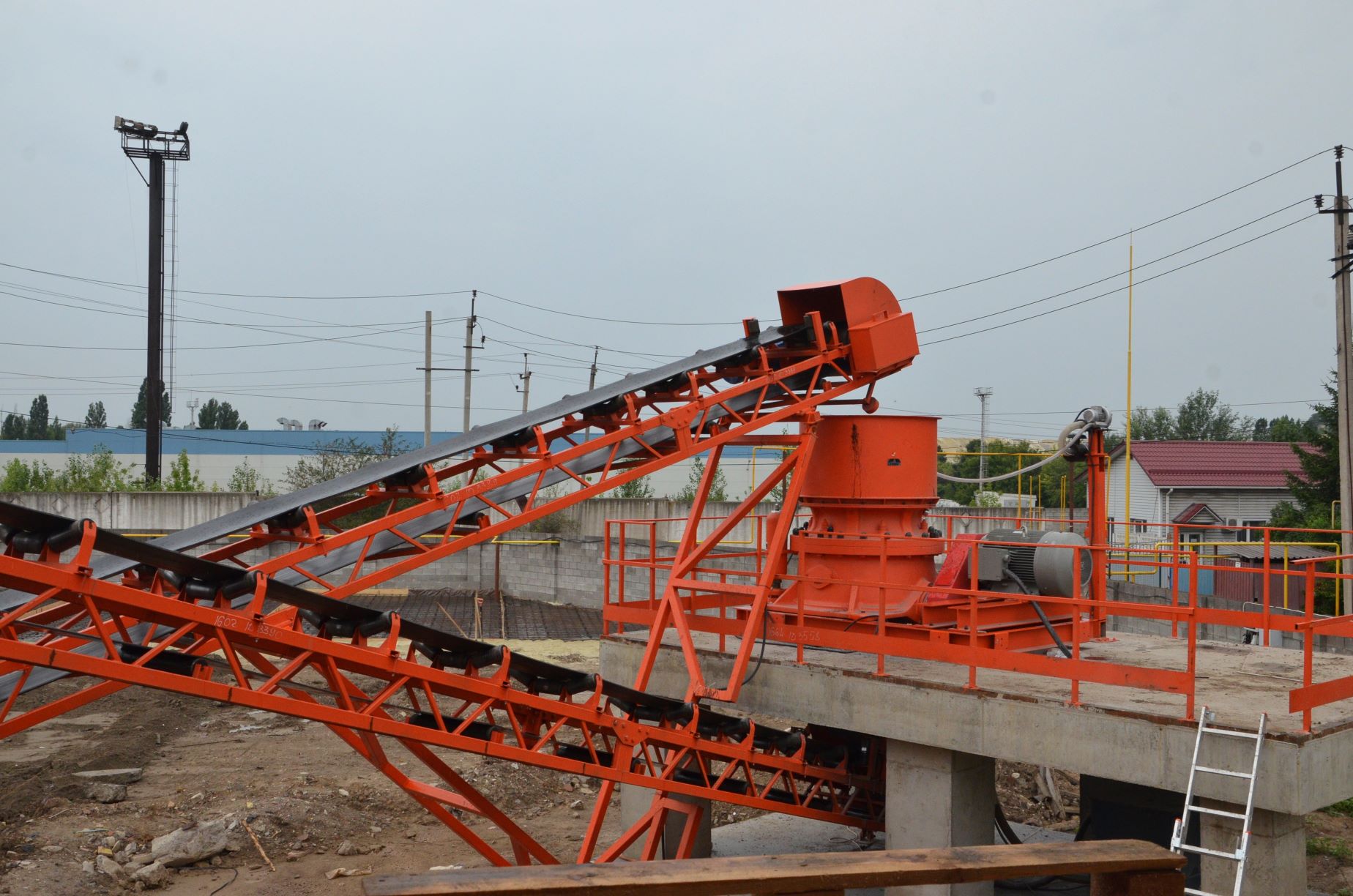 Измельченный материал для товарной классификации подается с помощью двух параллельных ленточных конвейеров на инерционный грохот.