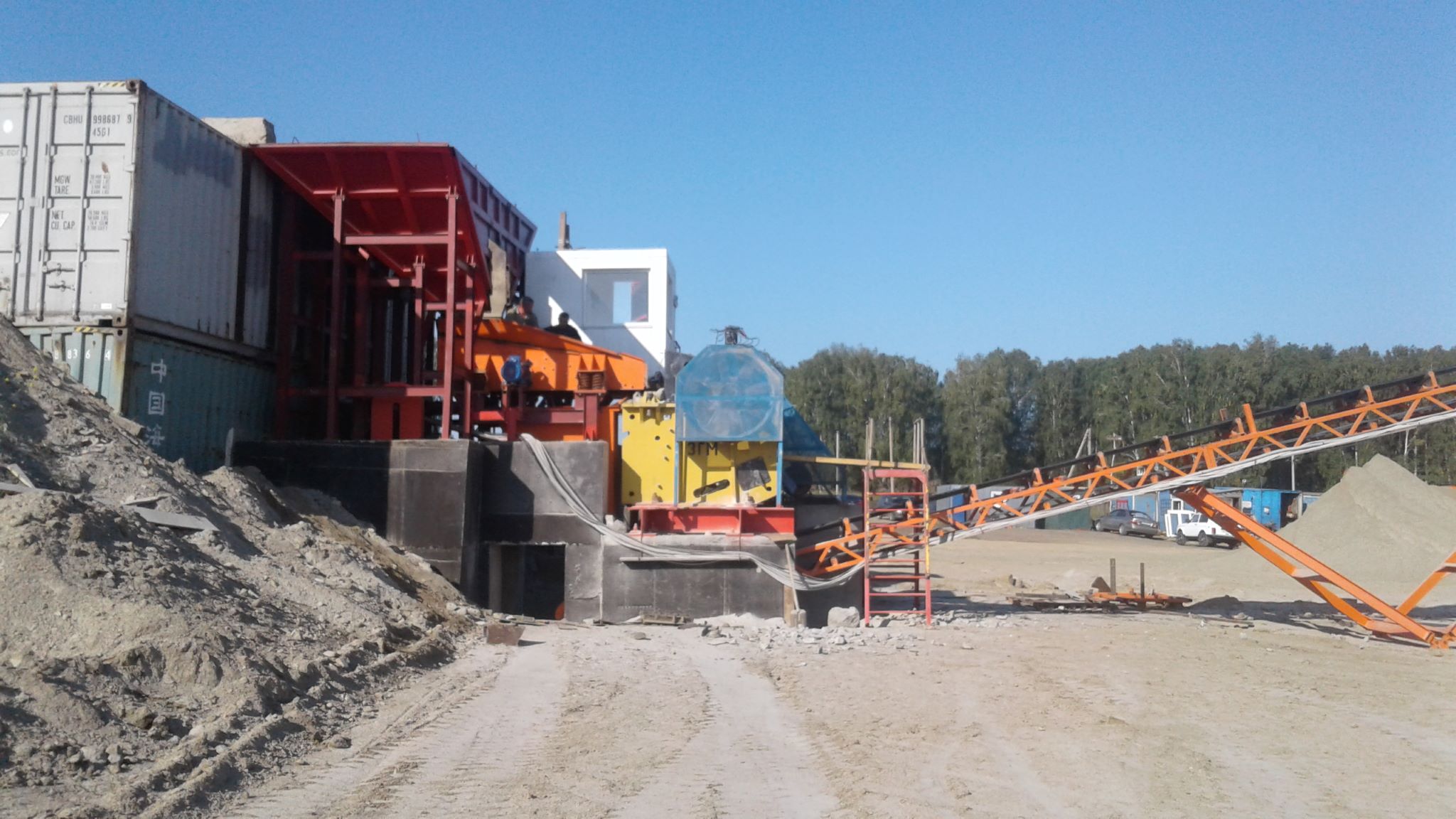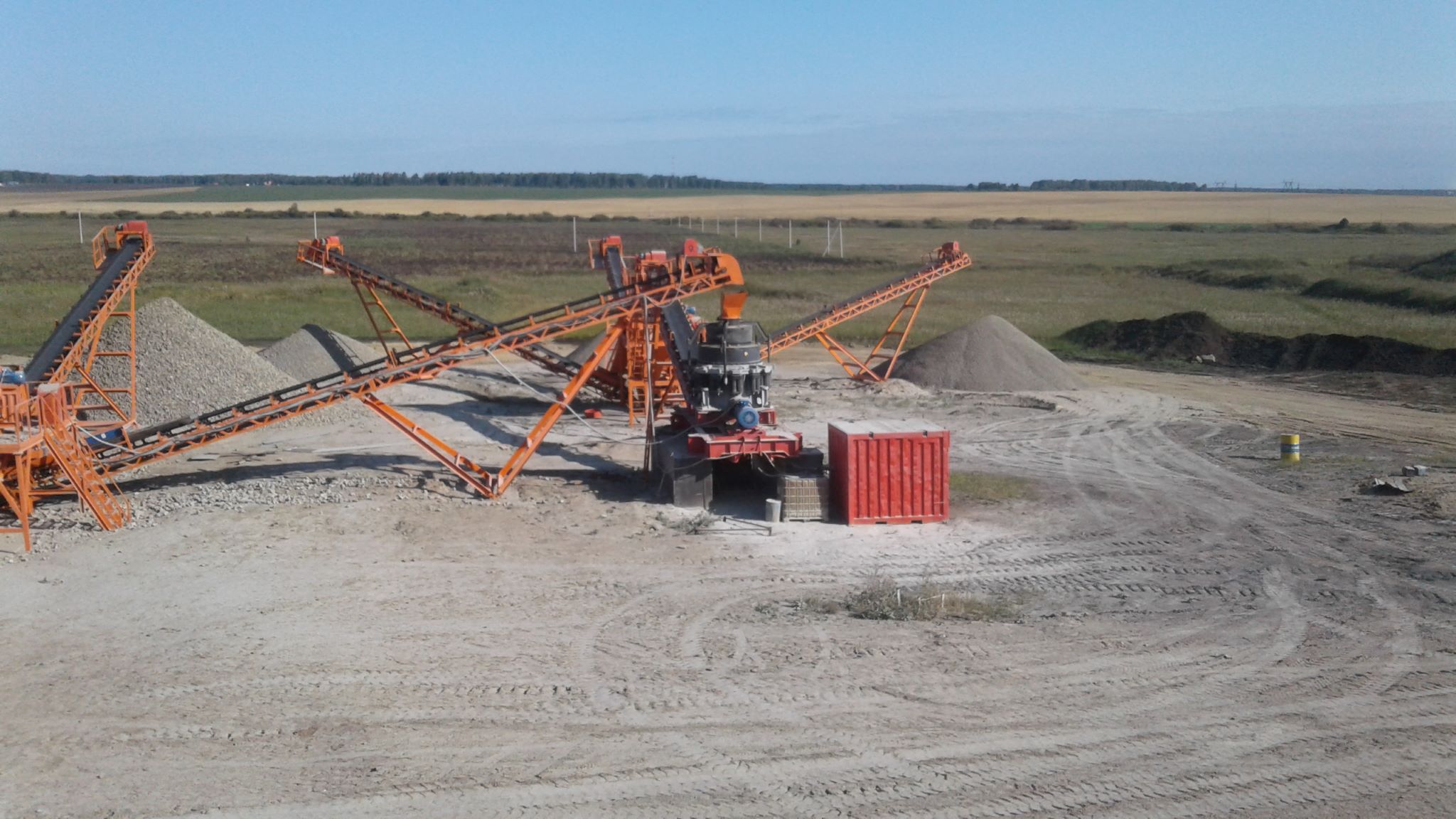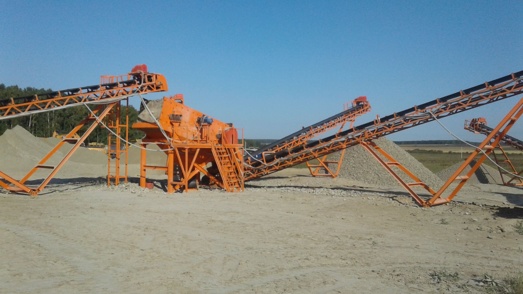 Исходный материал подается на дробление с помощью пластинчатого питателя ТК16. Загрузка приемного бункера питателя возможна как автосамосвалами, так и ковшовым погрузчиком. Измельчённый материал с помощью ленточного конвейера подается на инерционный грохот для товарной классификации. Товарный продукт представляет собой кубовидный щебень щебень товарных фракций 5-20, 20-40, 40-70. Размер фракций может быть любым по желанию Заказчика.