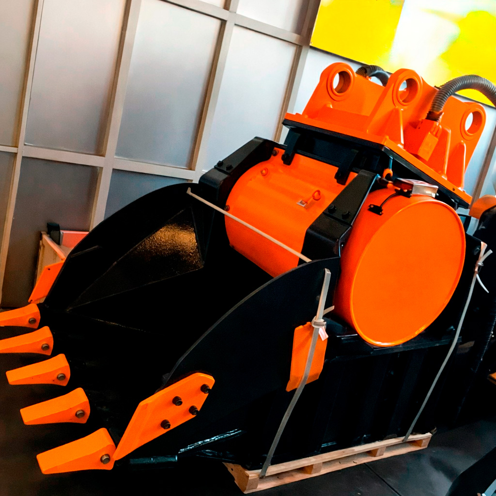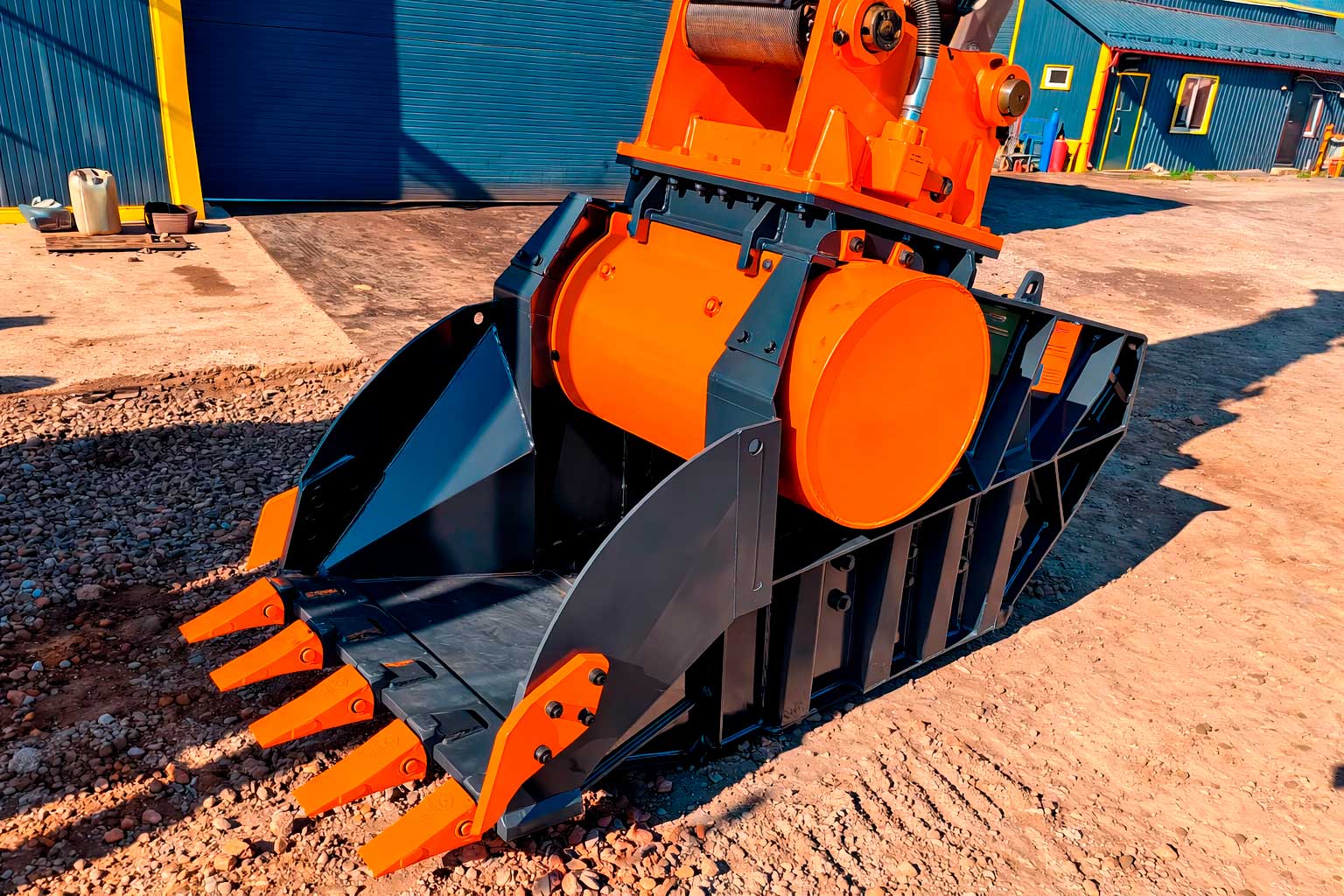 Дробильный ковш — это навесное оборудование для экскаваторов, предназначенное для измельчения строительных и горных материалов непосредственно на месте проведения работ. Такое решение позволяет перерабатывать бетон, кирпич, камень и другие твердые материалы без их транспортировки на стационарные дробильные установки, снижая затраты на логистику и утилизацию отходов.