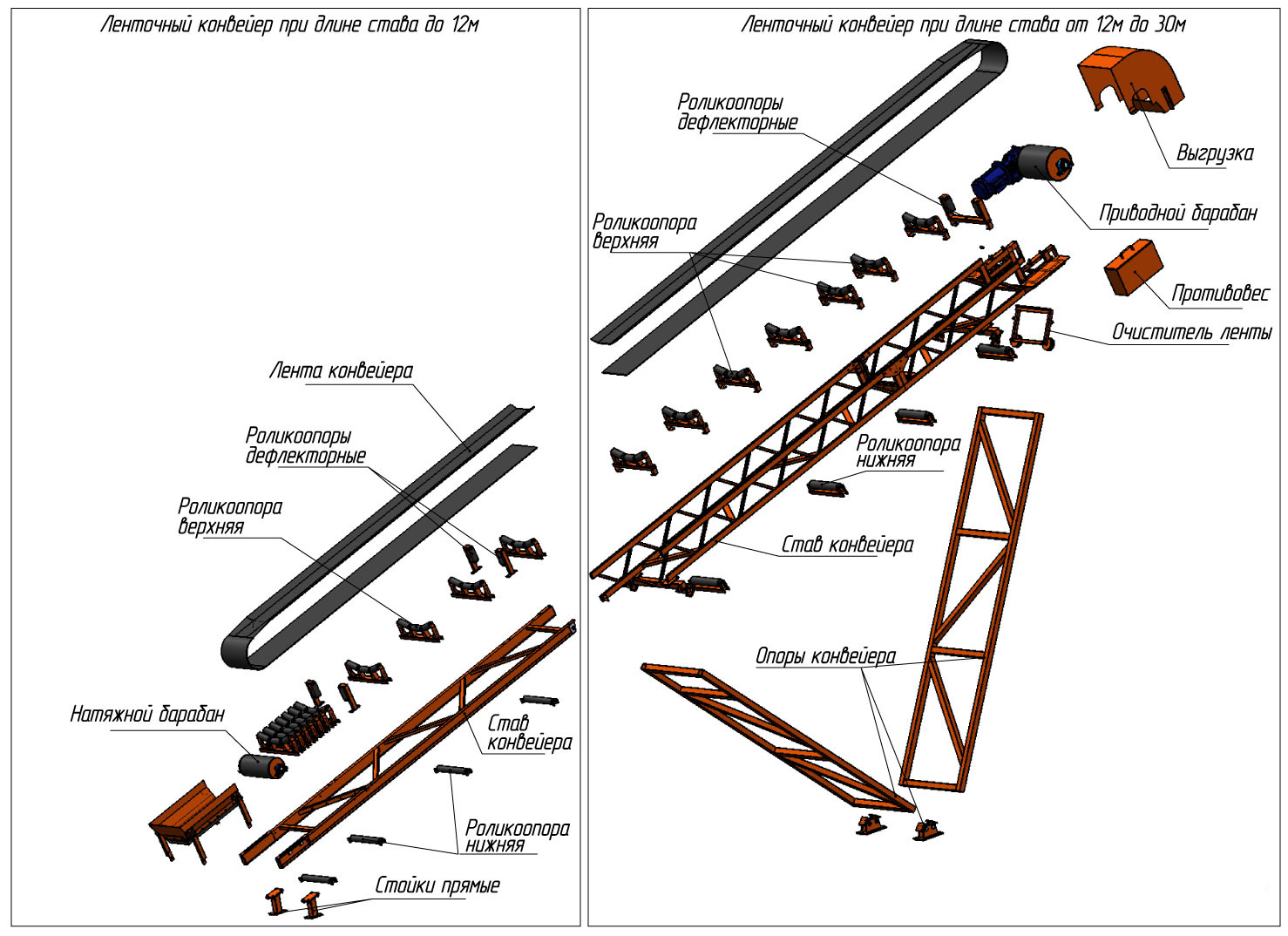 Ленточный конвейер – предназначен для непрерывной подачи сыпучих, штучных и насыпных материалов. Конвейер можно использовать как для горизонтальной транспортировки продукции, так и для подъема и спуска материала с платформ.