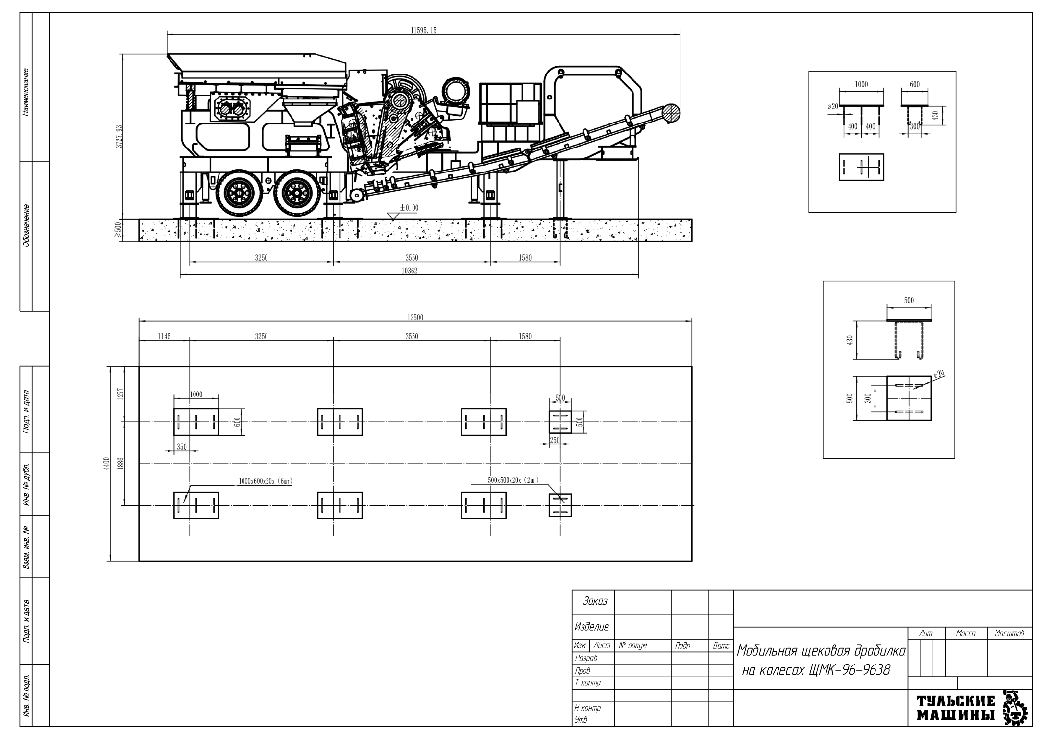 ЧЕРТЕЖ — Мобильная щековая дробилка на колесах ЩМК-96-9638