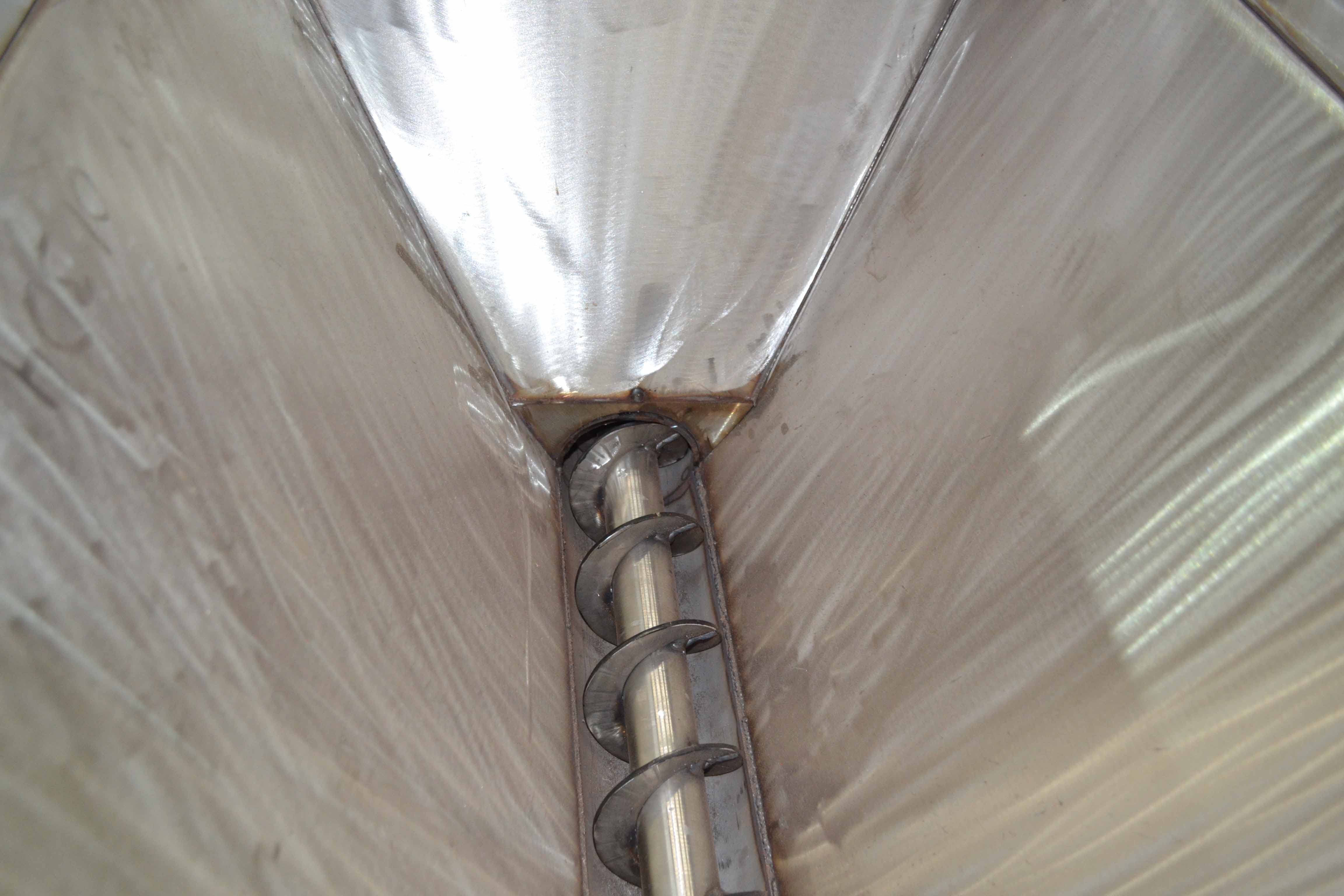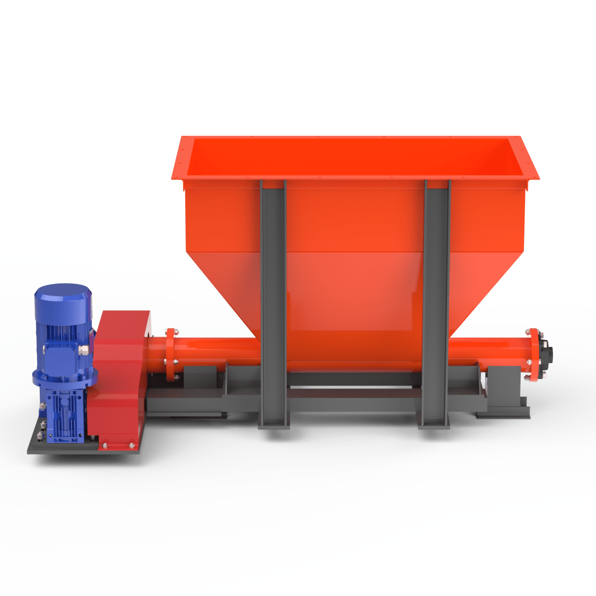 Материал поступает в загрузочный бункер шнека. При вращении вала, находящееся в корпусе шнека, сырье получает поступательное движение в осевом направлении корпуса и равномерно перемещается в направлении разгрузочного патрубка. Дойдя до разгрузочного отверстия, он под действием силы тяжести подается вниз.