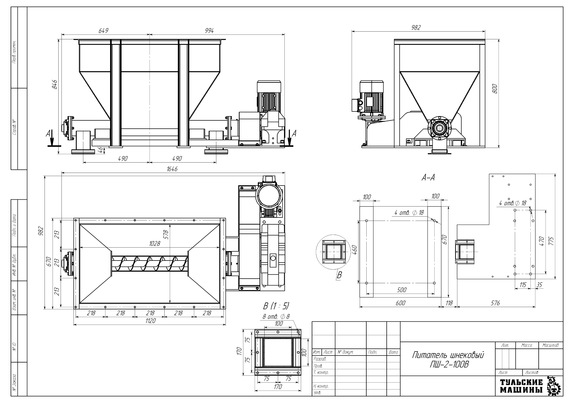 Шнековый питатель ПШ-2-100В предназначен для дозирования сыпучих материалов с влажностью до 75%. Его можно использовать как разгрузочное устройство бункерных установок, в качестве загрузочного устройства машин, требующих дозированной подачи материала, а также в комплексе с транспортными устройствами шнекового или иного типа. Шнек может быть установлен на площадках, стройках или вмонтирован в нижнюю часть бункера. Питатель может быть расположен в помещении и под навесом на открытым воздухом.