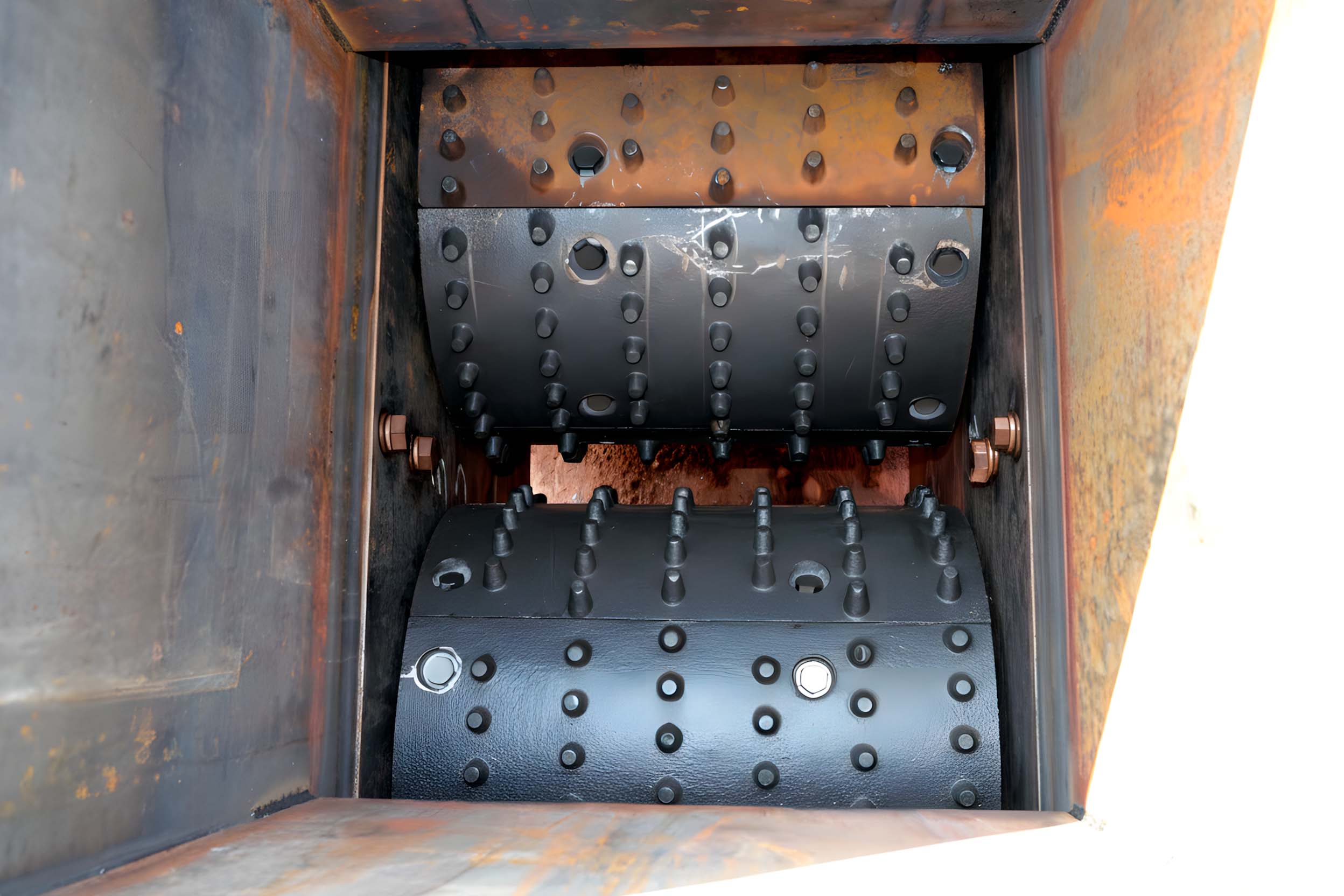 Основной рабочий орган установки — два мощных валка, вращающихся навстречу друг другу. Зубцы на валках расположены в шахматном порядке, что позволяет достичь максимального охвата материала.