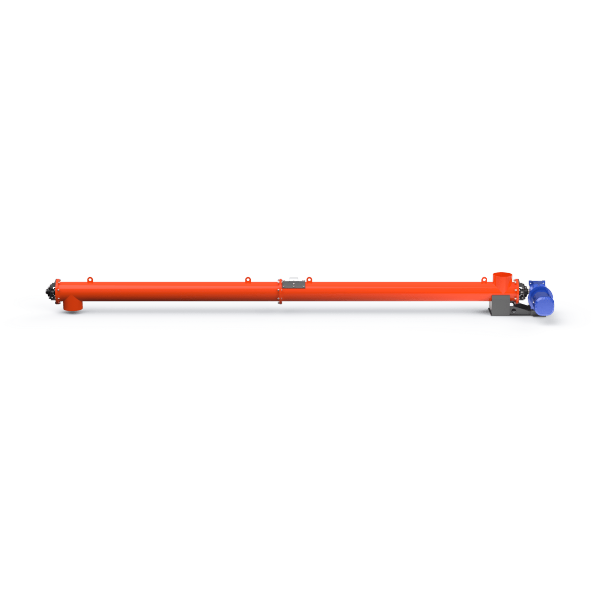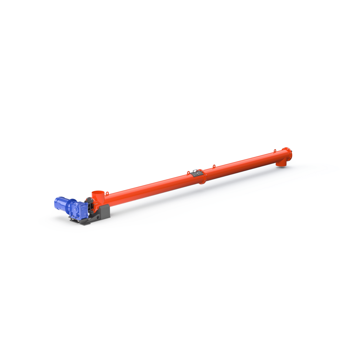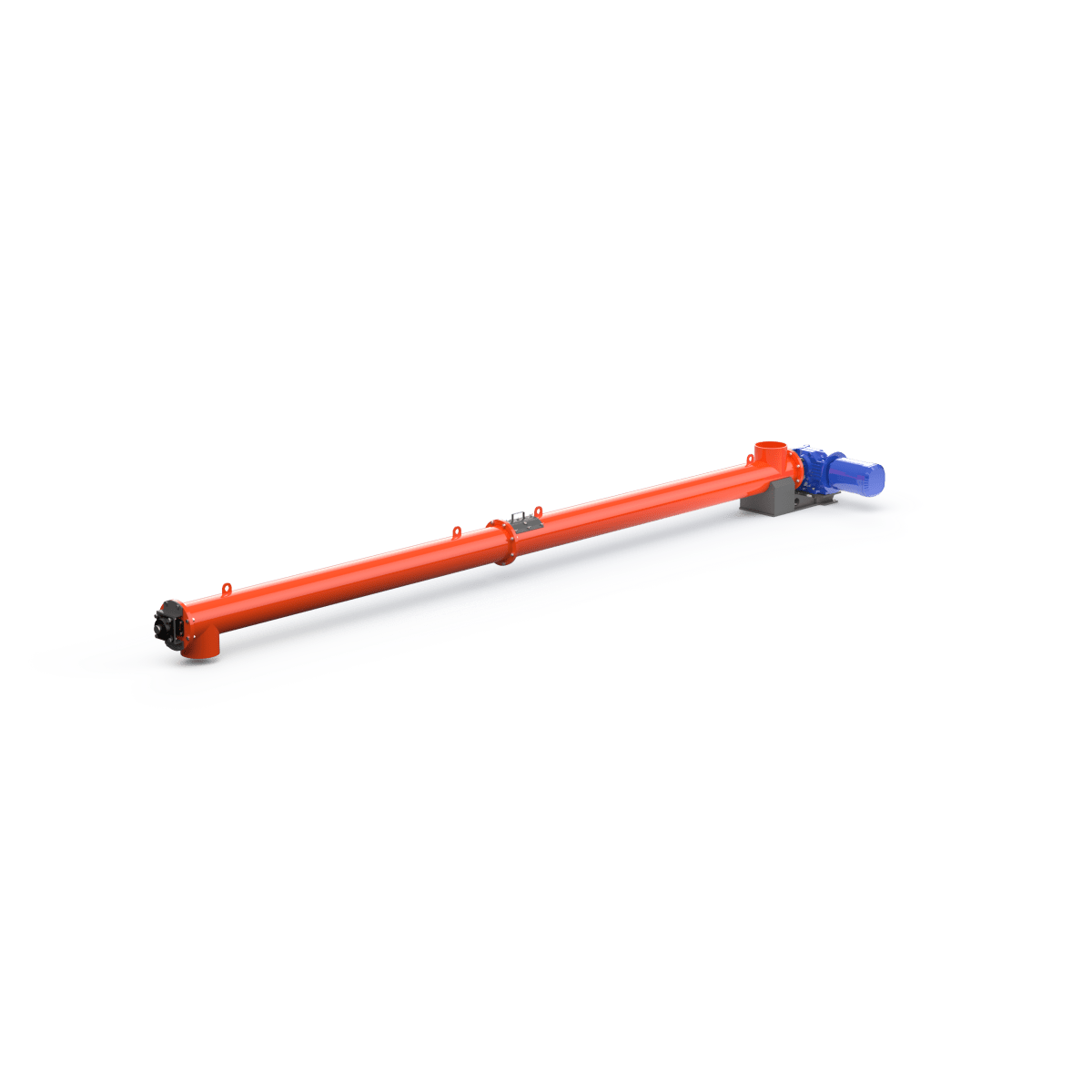 Корпус шнека выполнен из углеродистой стали с порошковой окраской внешней стороны. Горловины шнеков могут быть как жёстко приварены к основному корпусу, так и могут быть выполнены с возможностью регулировки угла наклона. Для упрощения монтажа конструкции на корпусе предусмотрены строповочные проушины. Привод шнека соединён с подающим винтом, но возможна установка предохранительной муфты или ремённой передачи. Для шнеков большой длины для поддержки подающего винта устанавливаются промежуточные опоры . Смазка промежуточных опор не требует их демонтажа и осуществляется шприцеванием. Уплотнительные элементы, расположенные на торцевых сторонах корпуса шнека, имеют возможность ручной регулировки. Ресурс концевых подшипников позволяет шнекам работать на протяжении длительного периода времени без ремонта и замены. Наиболее часто используются шнеки диаметром 193, 219, 273 и 323 мм. Для работы с мелкодисперсными продуктами рекомендуется использовать шнековые конвейеры во взрывобезопасном исполнении.